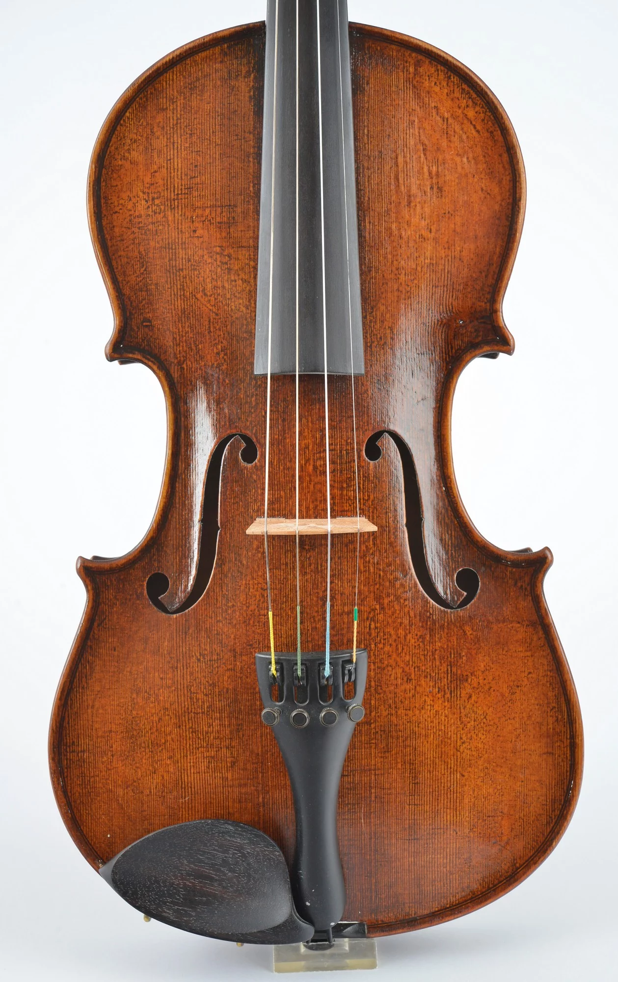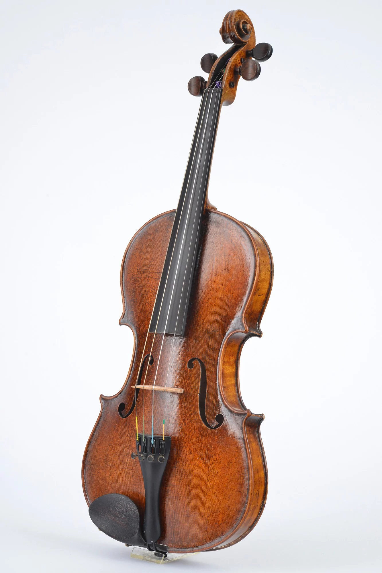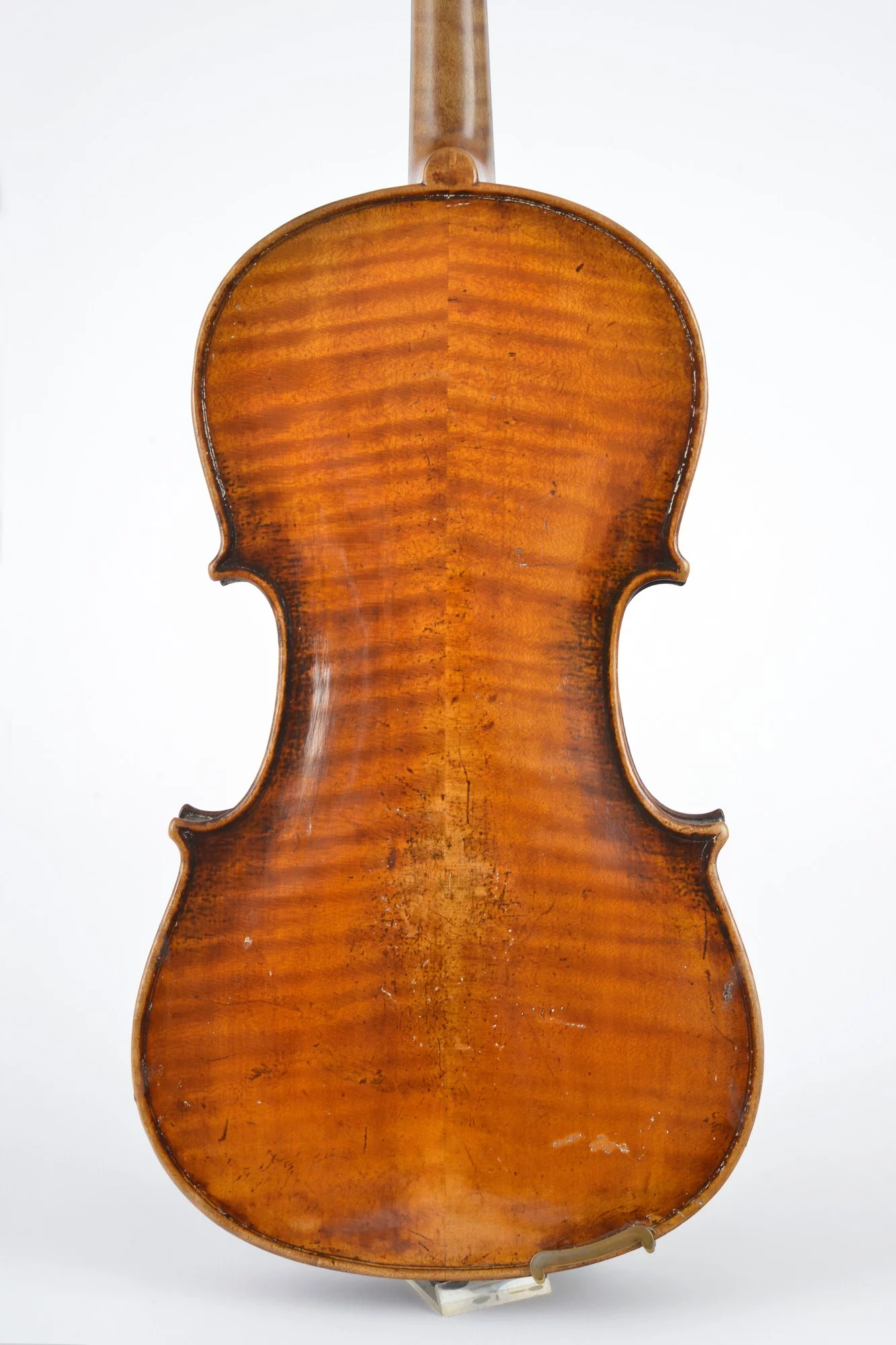 Flamed two-piece back, nicely carved scroll. Elaborately restored by master luthier Michael Schulz in 2000. Well balanced sound and perfect playability.