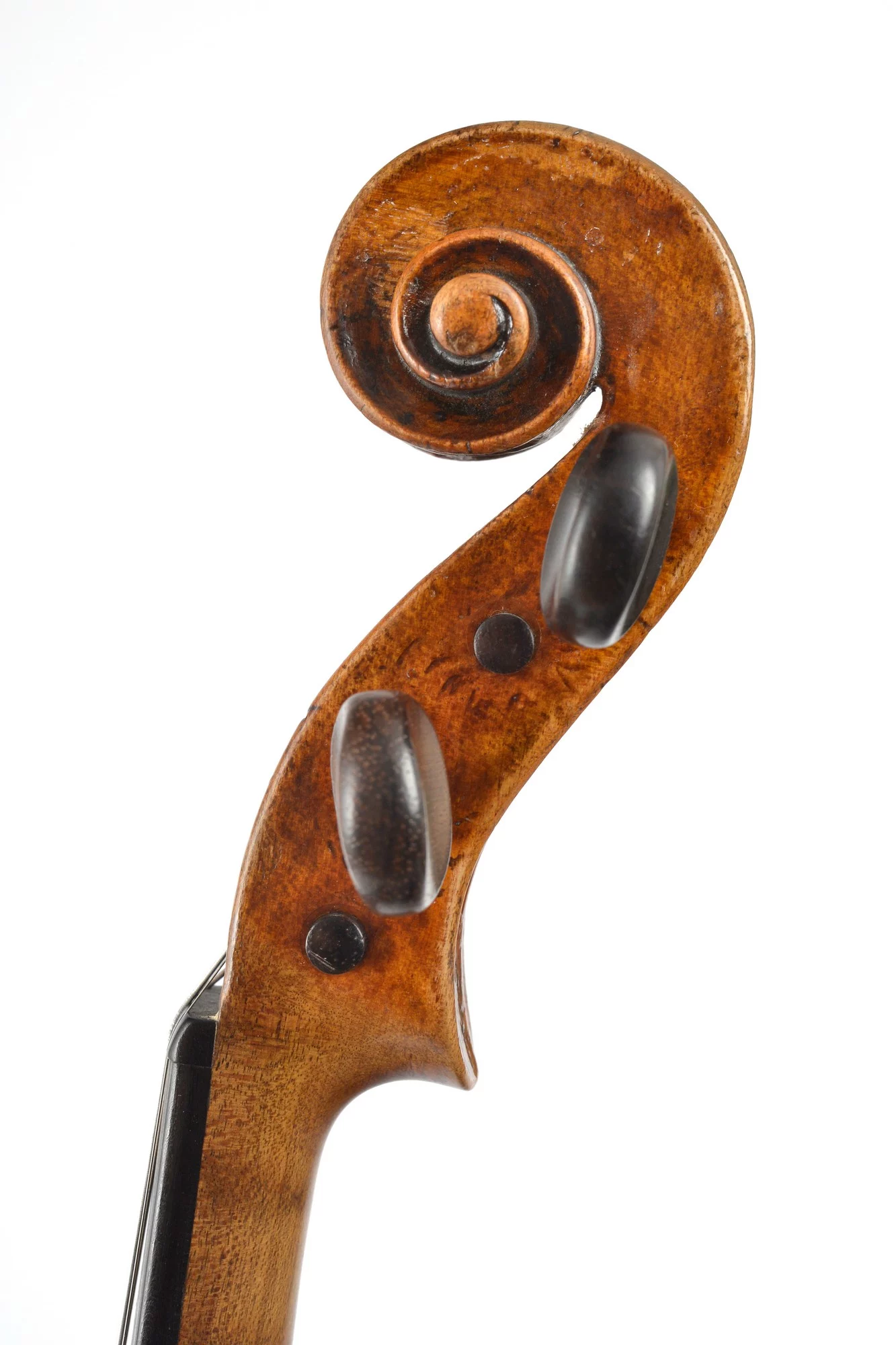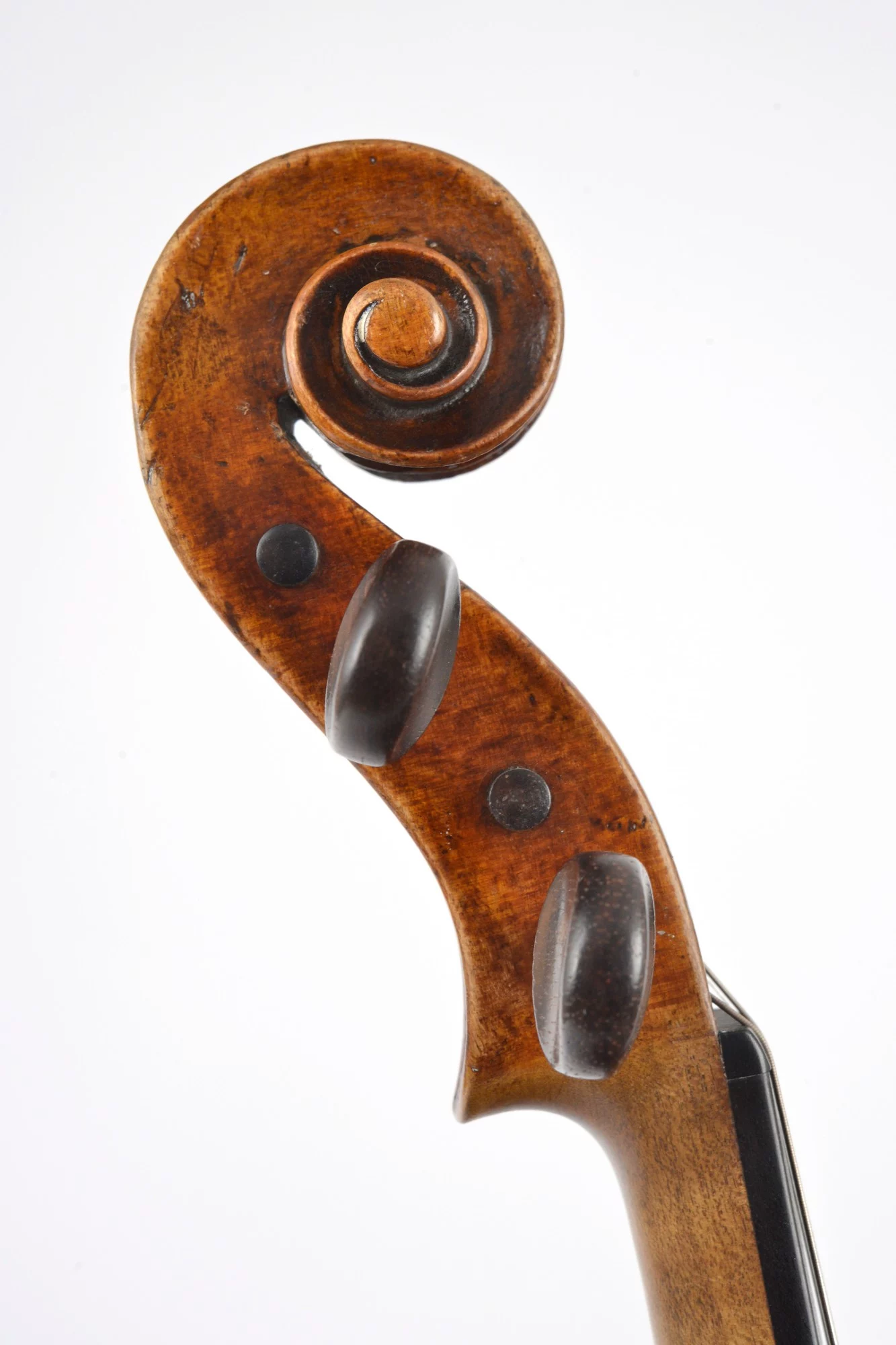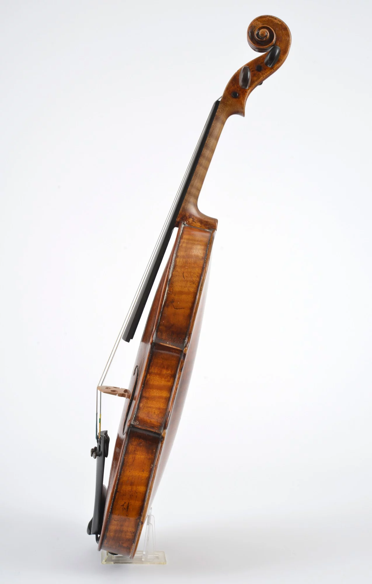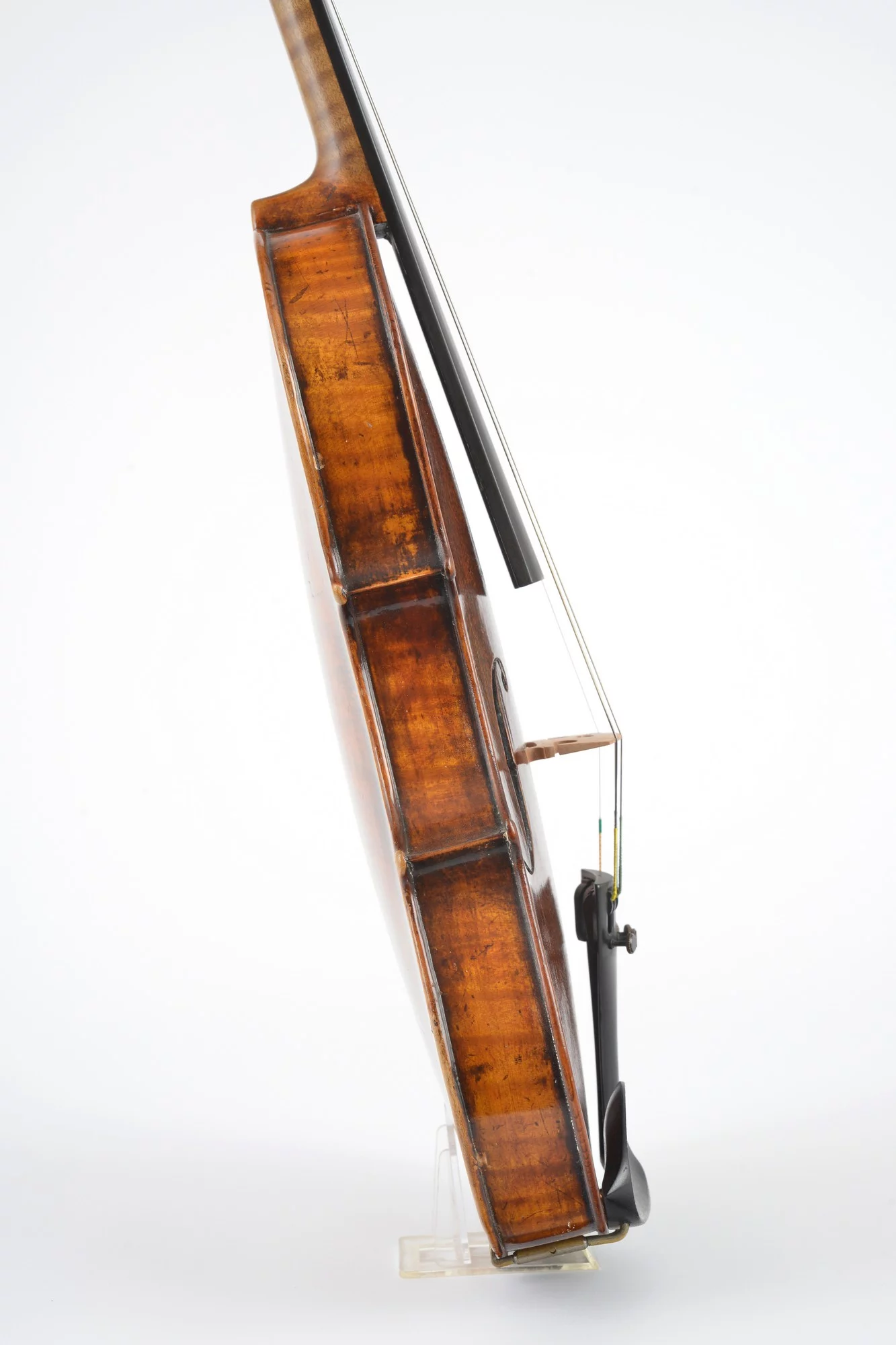Flamed two-piece back, nicely carved scroll. Elaborately restored by master luthier Michael Schulz in 2000. Well balanced sound and perfect playability.