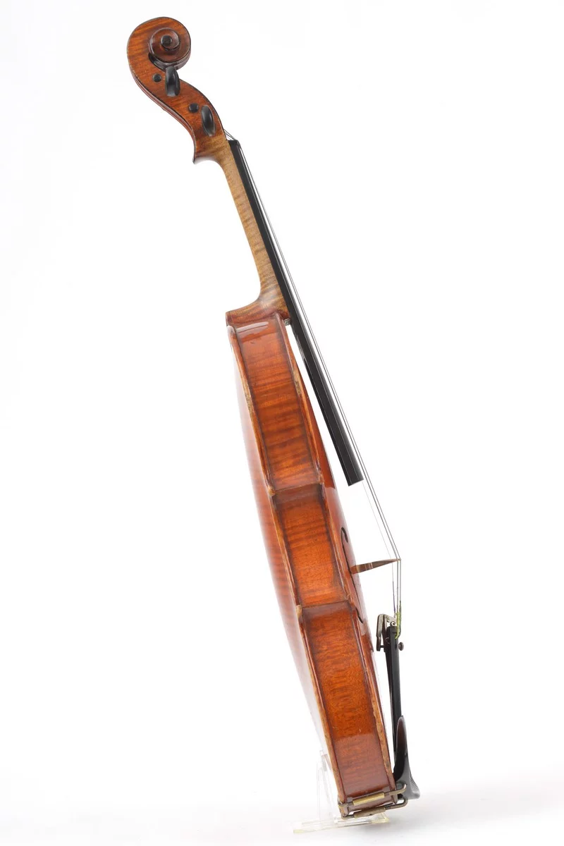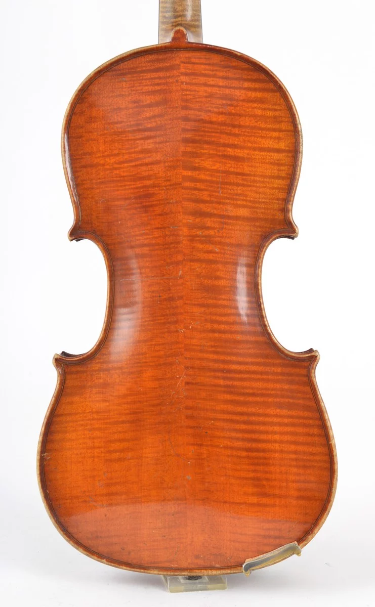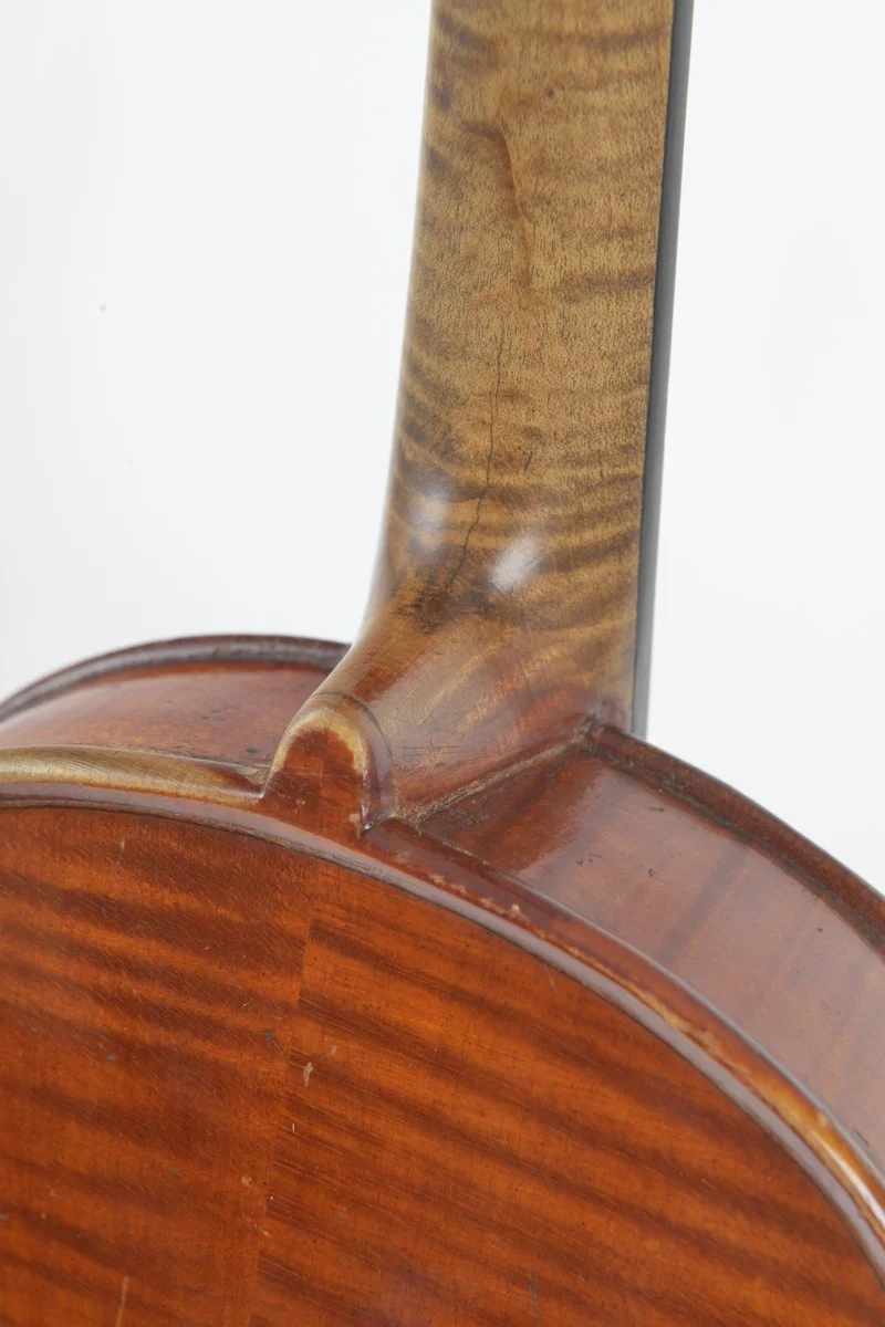 No label or stamp. 2-piece back made from flamed maple. Peghead with ebonized edges.
