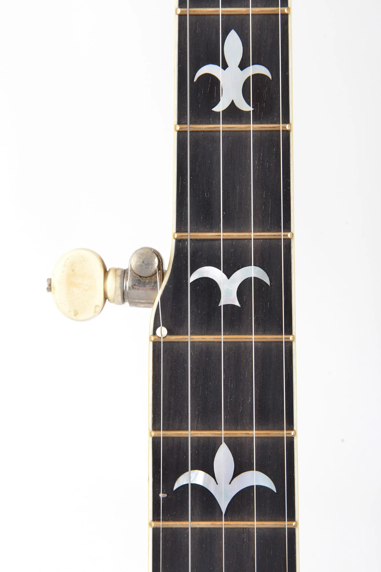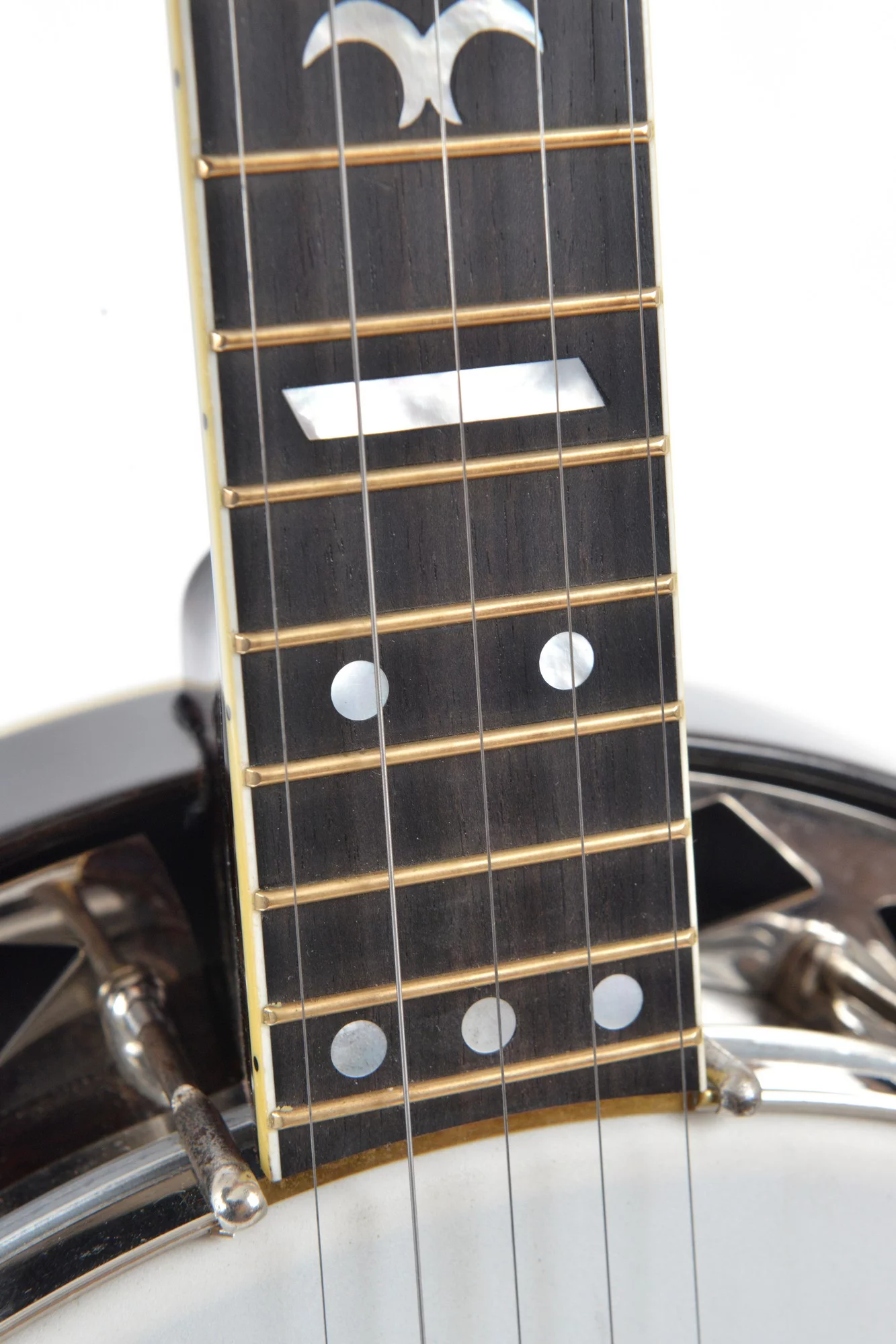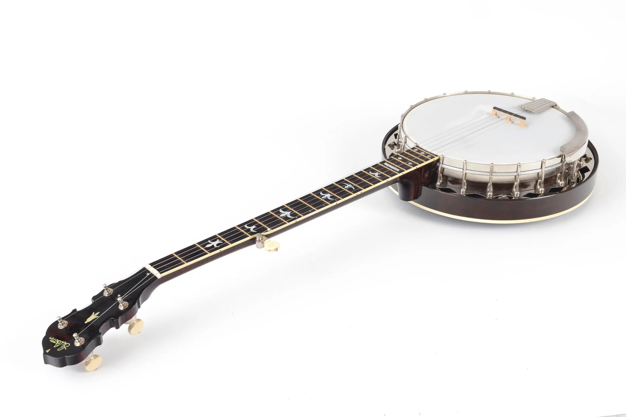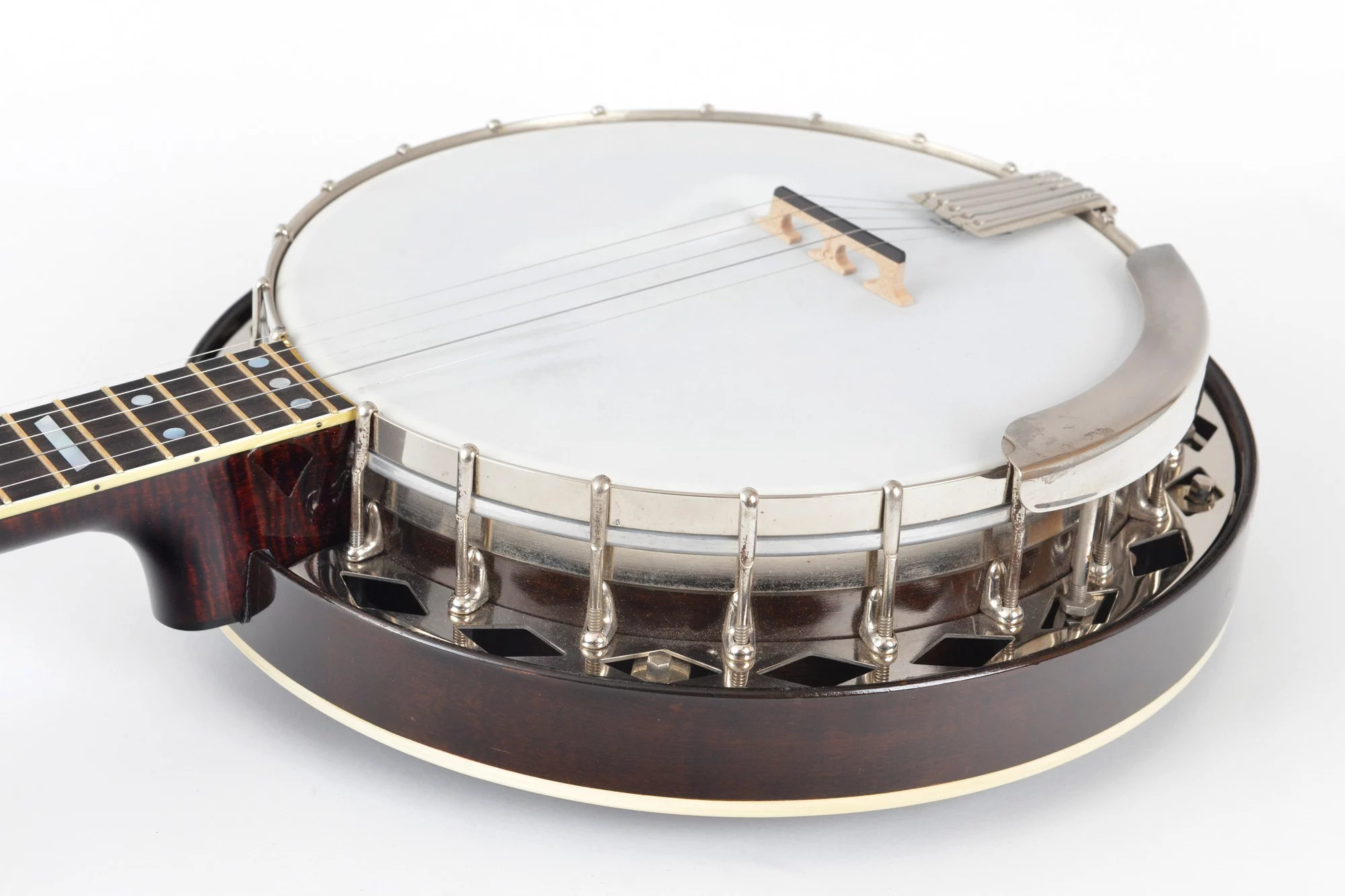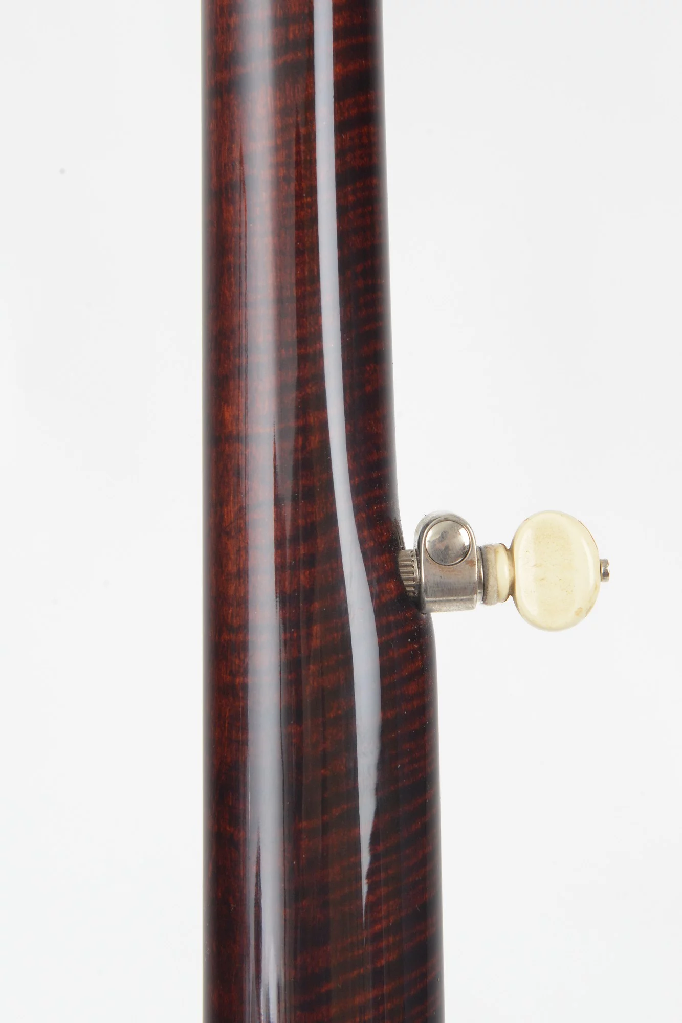 The pot has been converted for a 20-hole Jerry Sloan flathead tonering. The conversion neck is made of maple and an ebony fingerboard with RB-1 inlays.