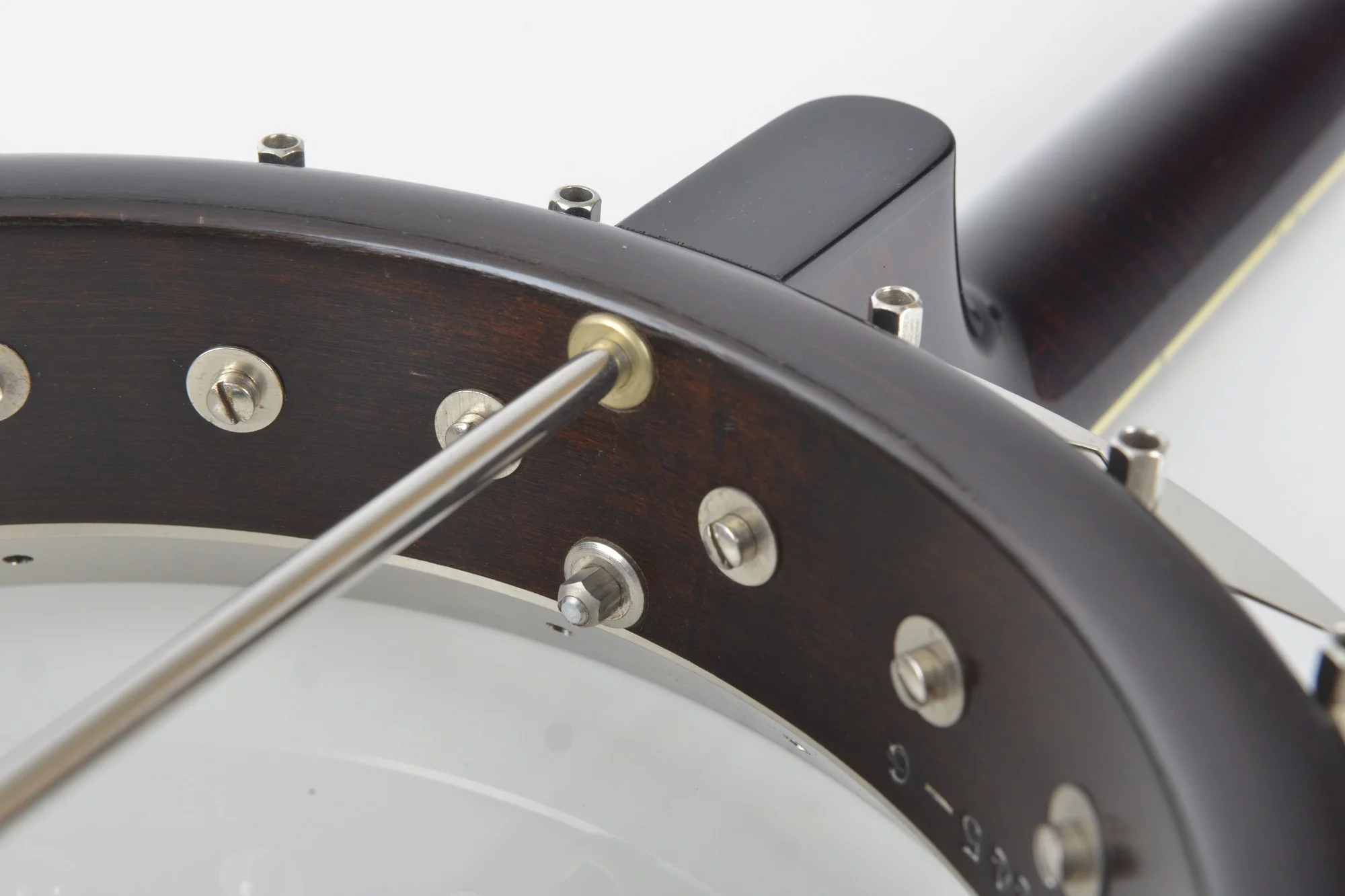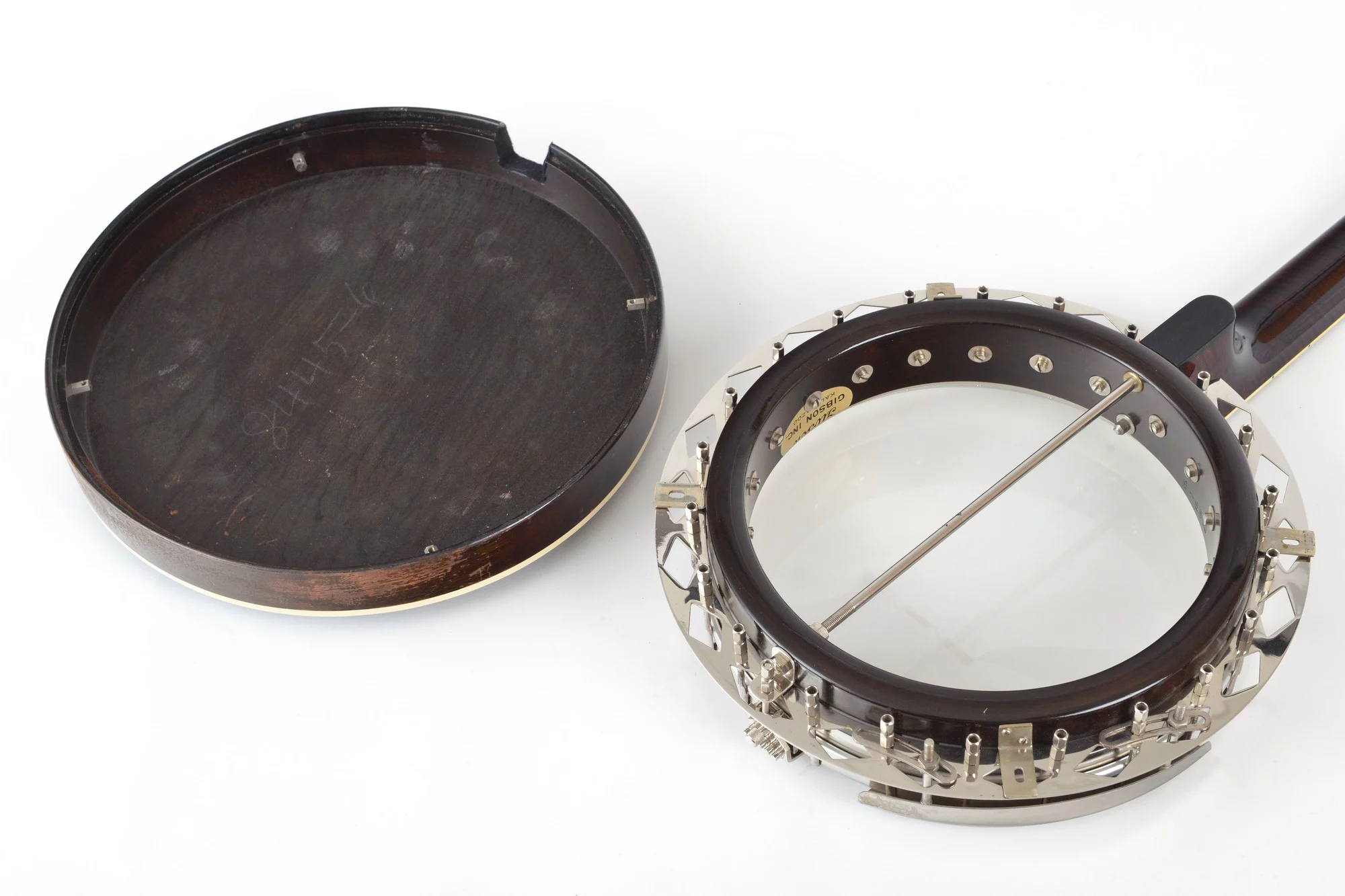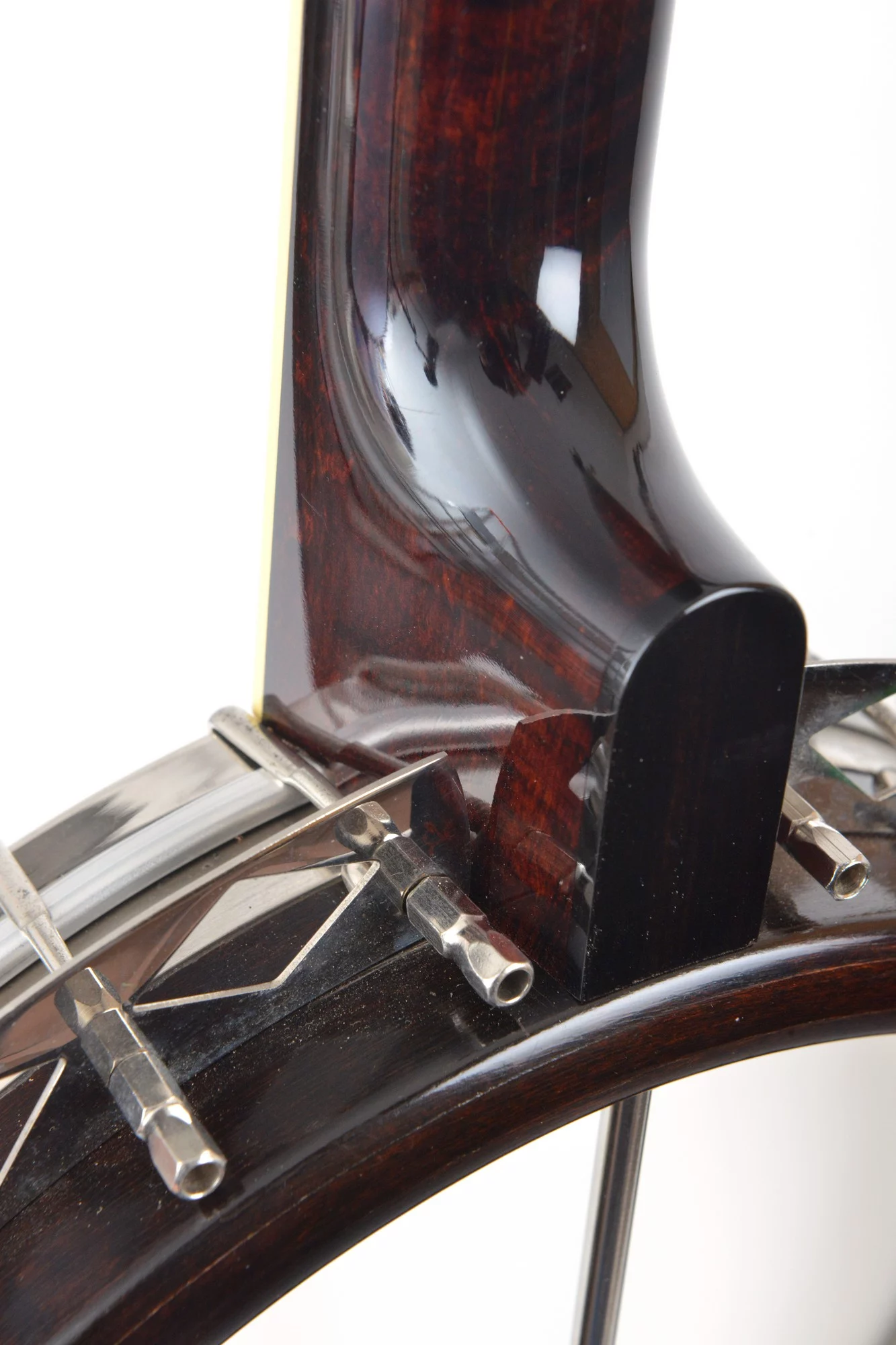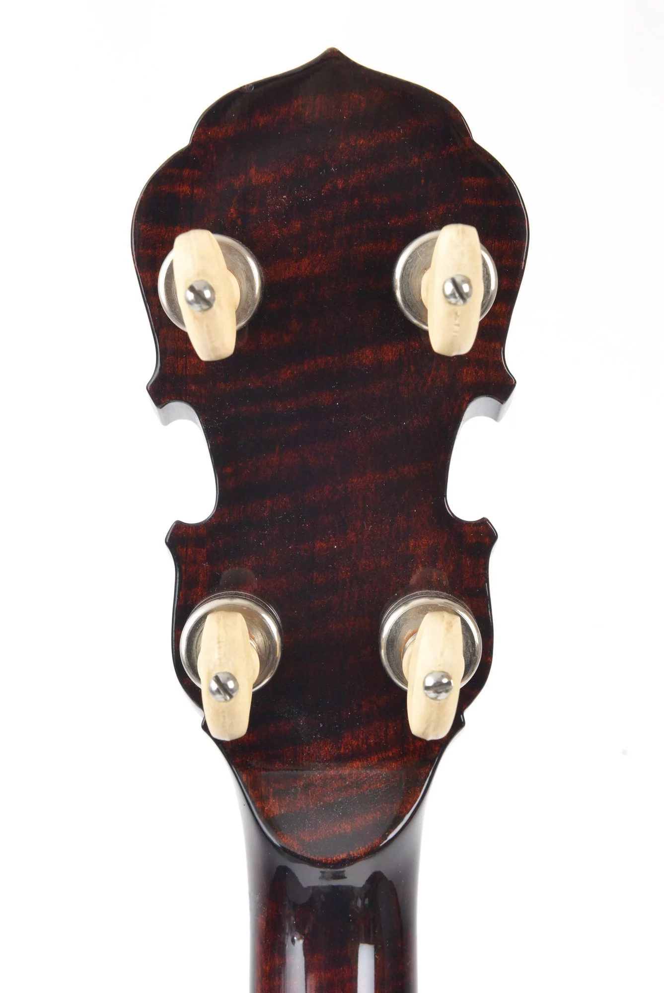The pot has been converted for a 20-hole Jerry Sloan flathead tonering. The conversion neck is made of maple and an ebony fingerboard with RB-1 inlays.