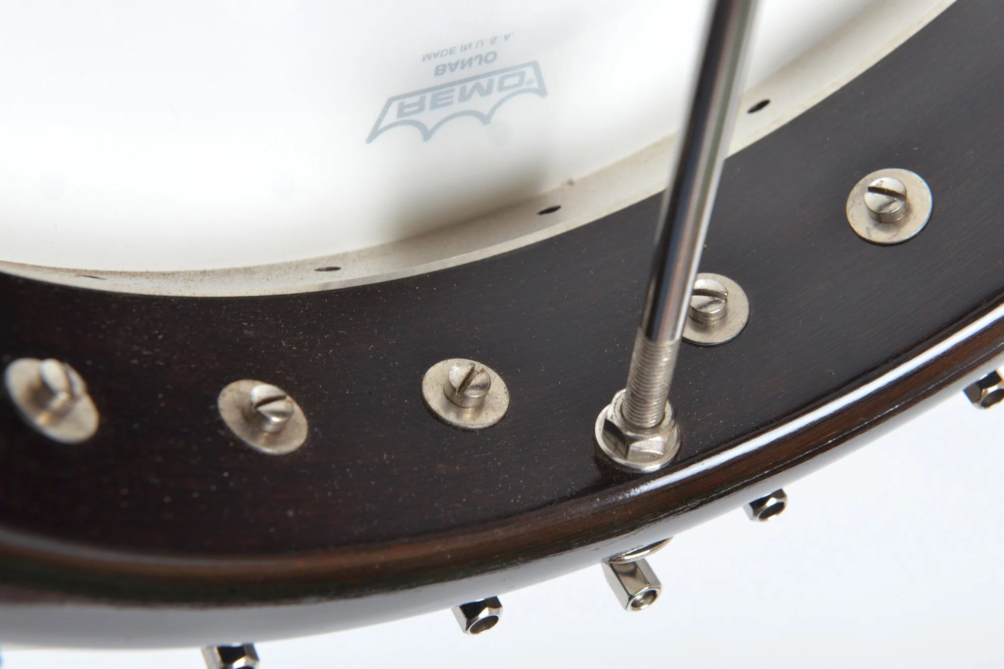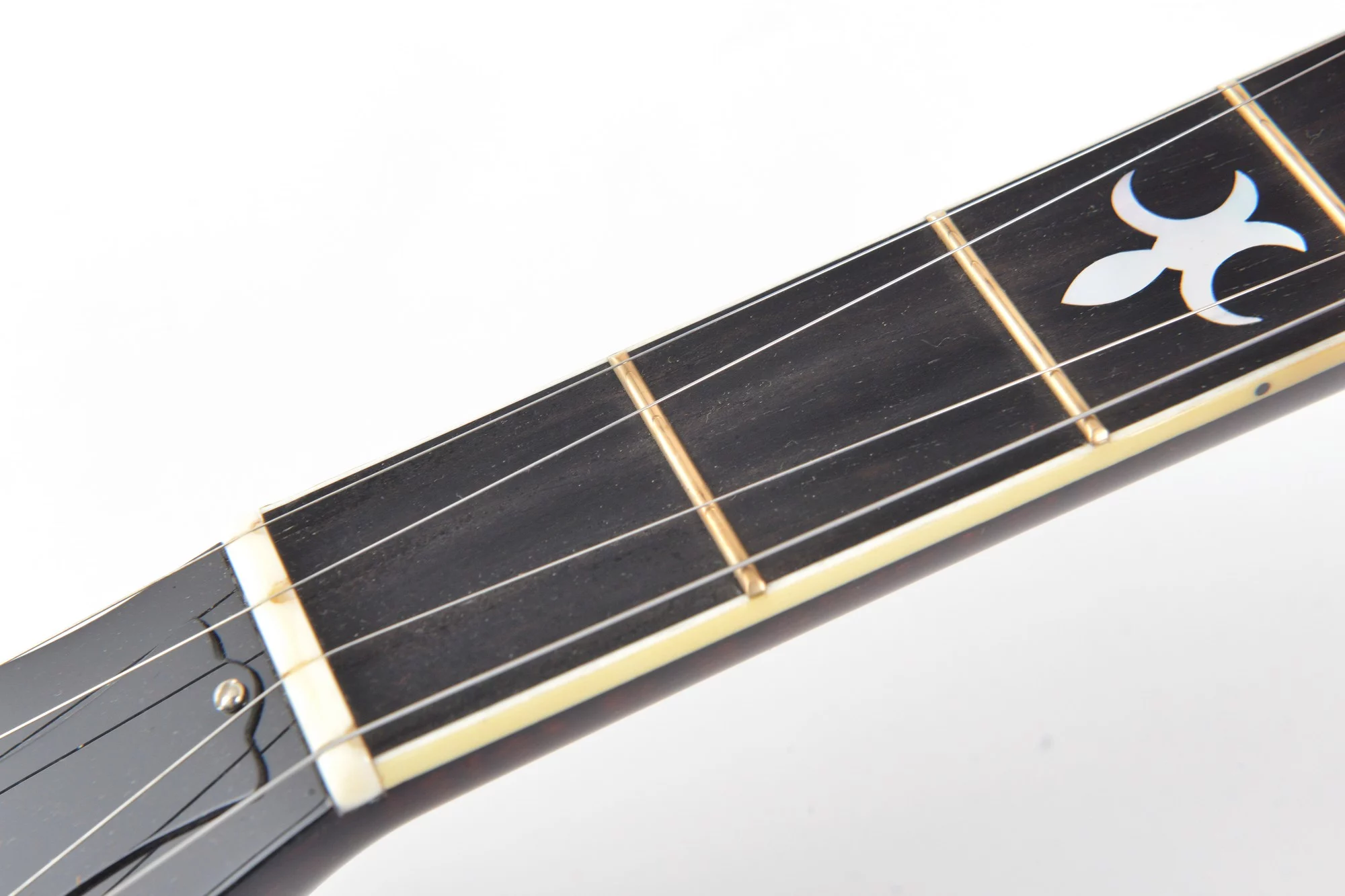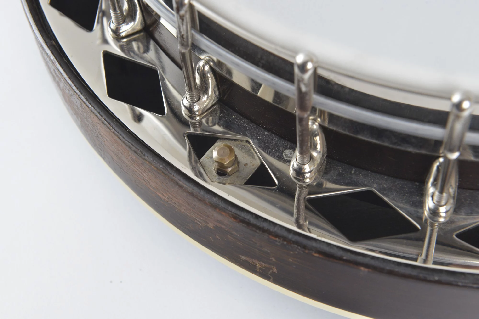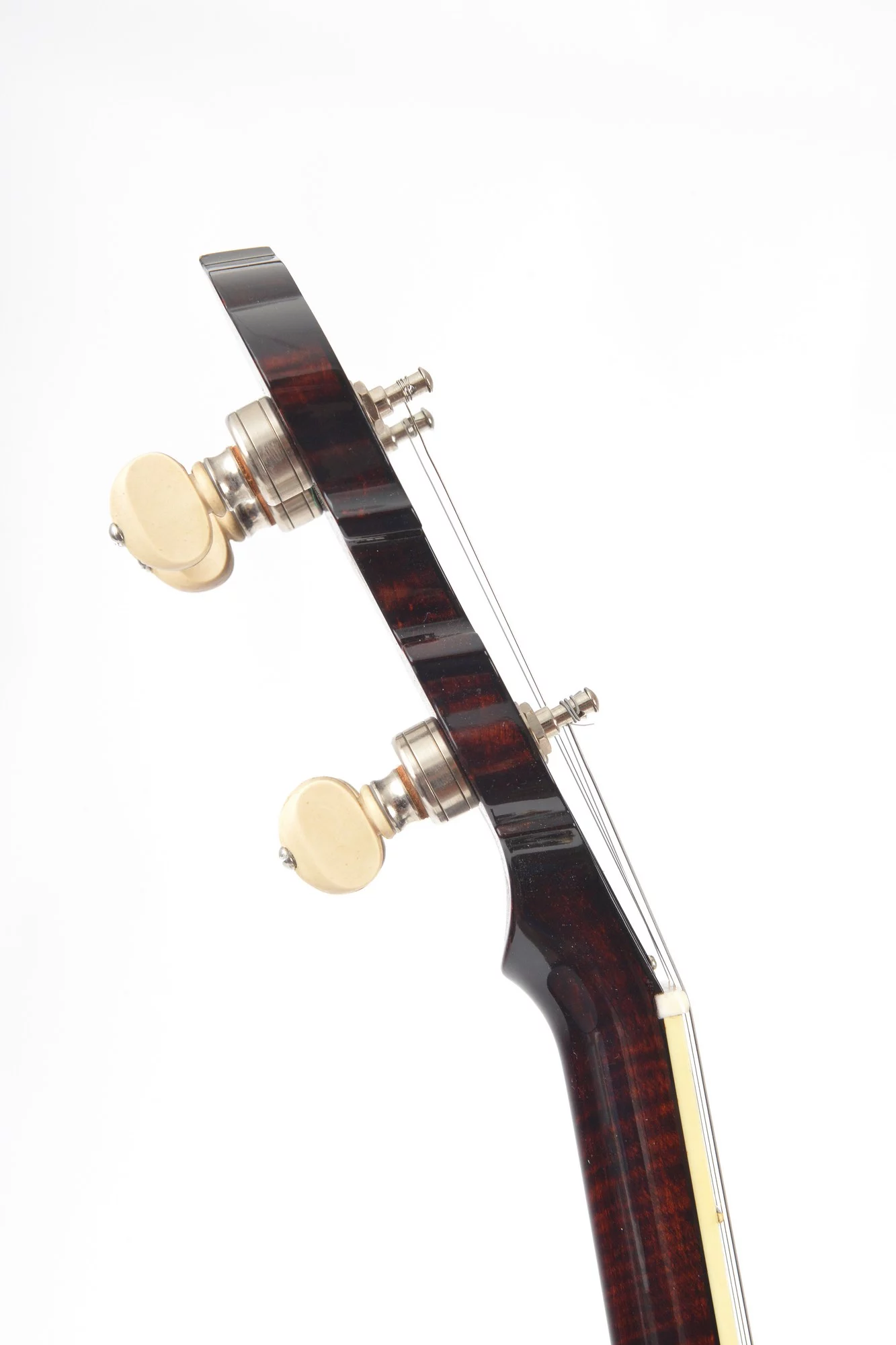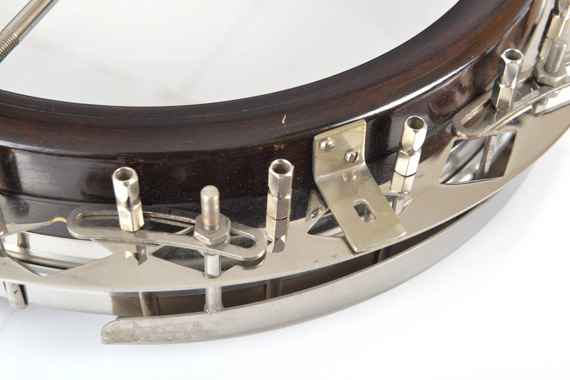 The pot has been converted for a 20-hole Jerry Sloan flathead tonering. The conversion neck is made of maple and an ebony fingerboard with RB-1 inlays.