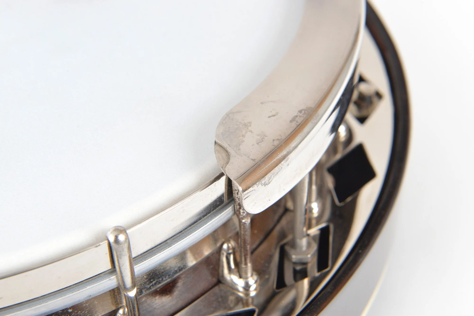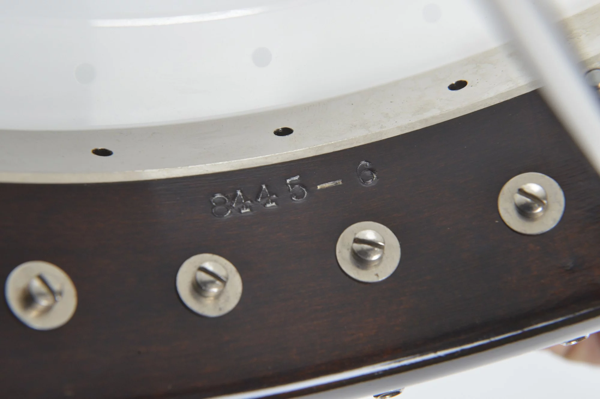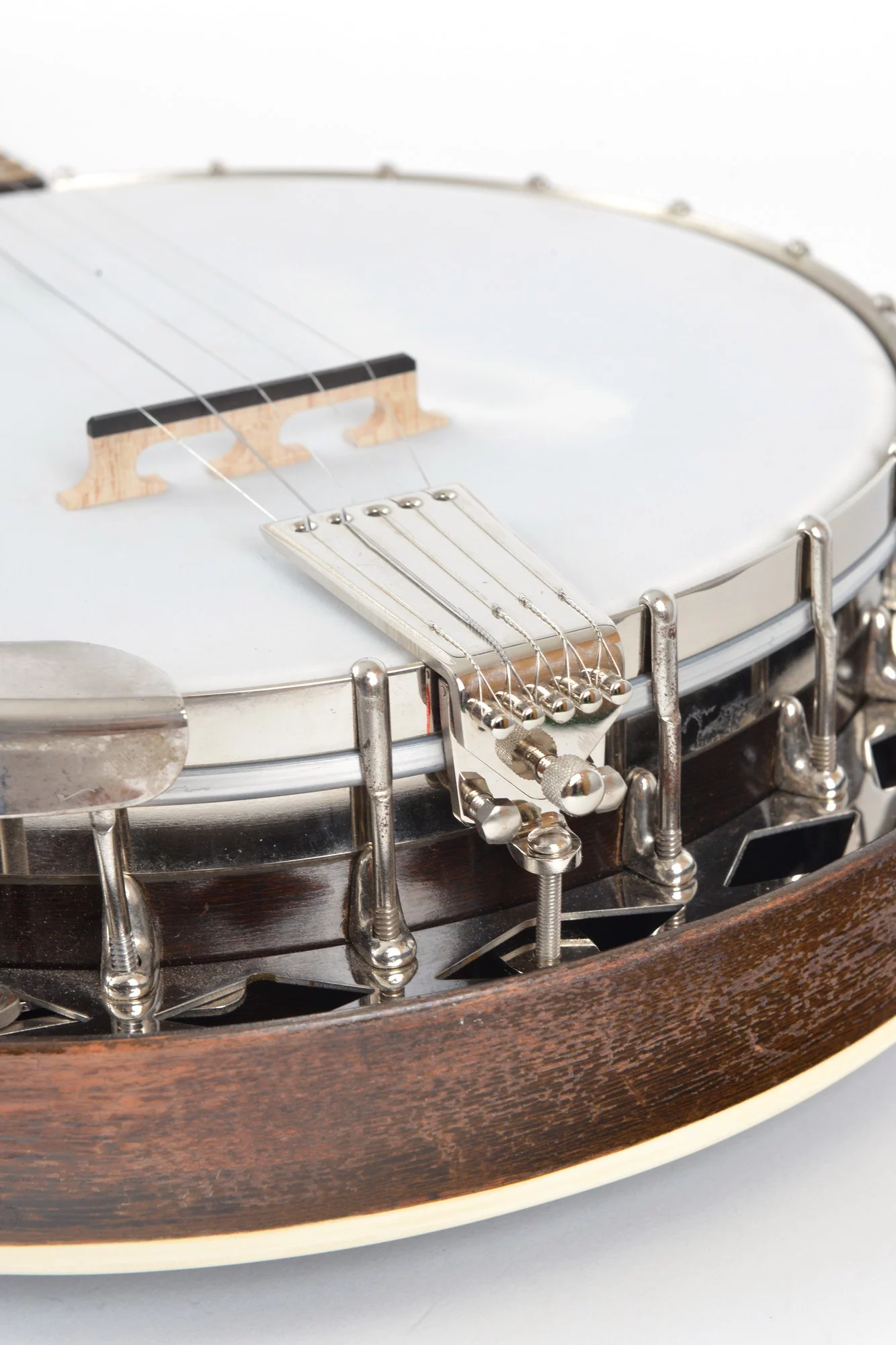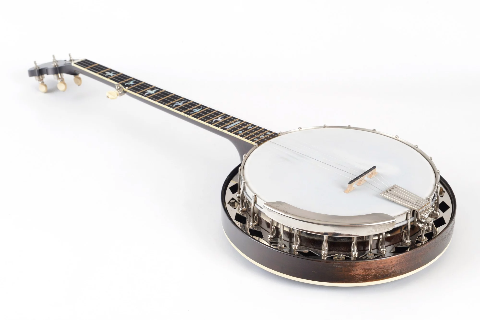 The pot has been converted for a 20-hole Jerry Sloan flathead tonering. The conversion neck is made of maple and an ebony fingerboard with RB-1 inlays.