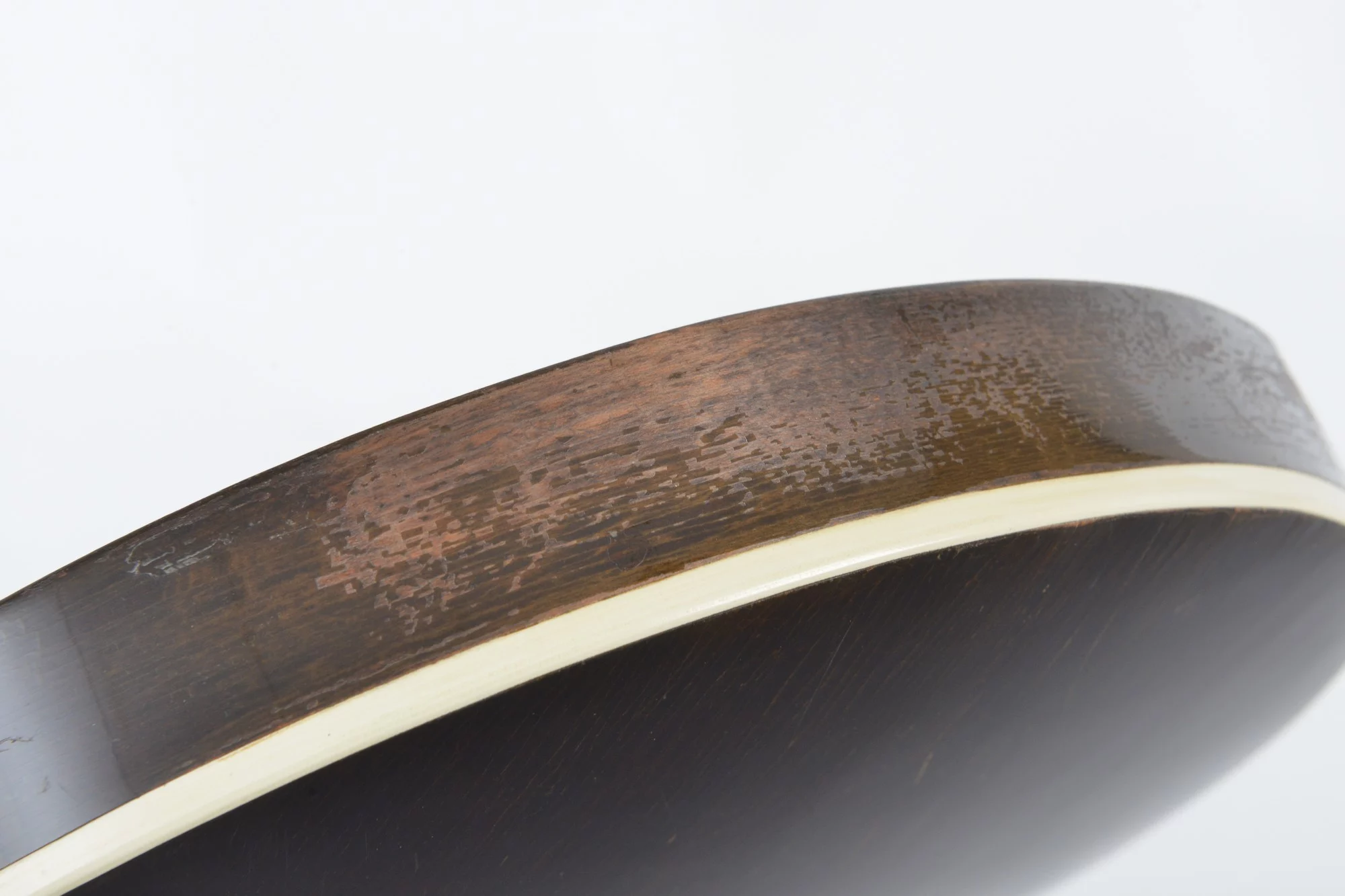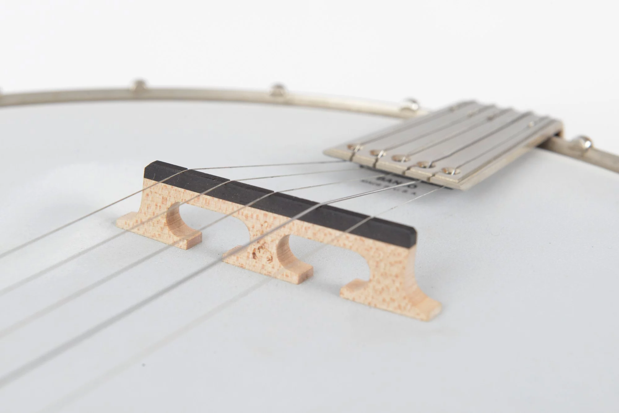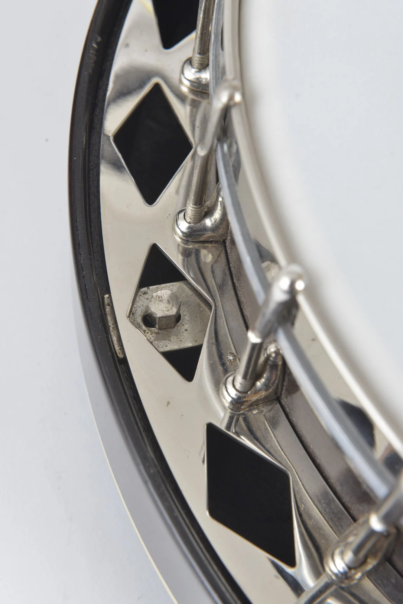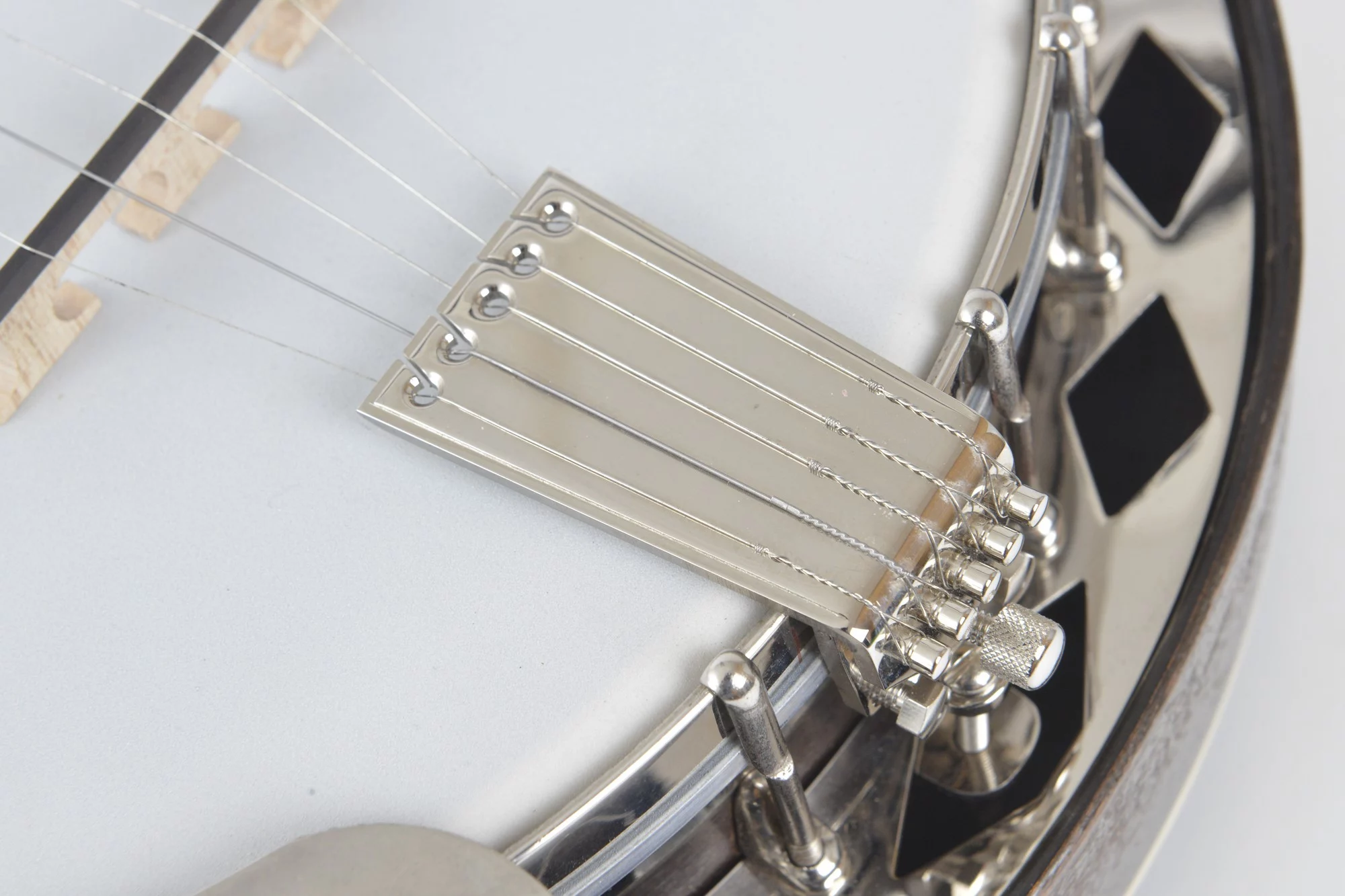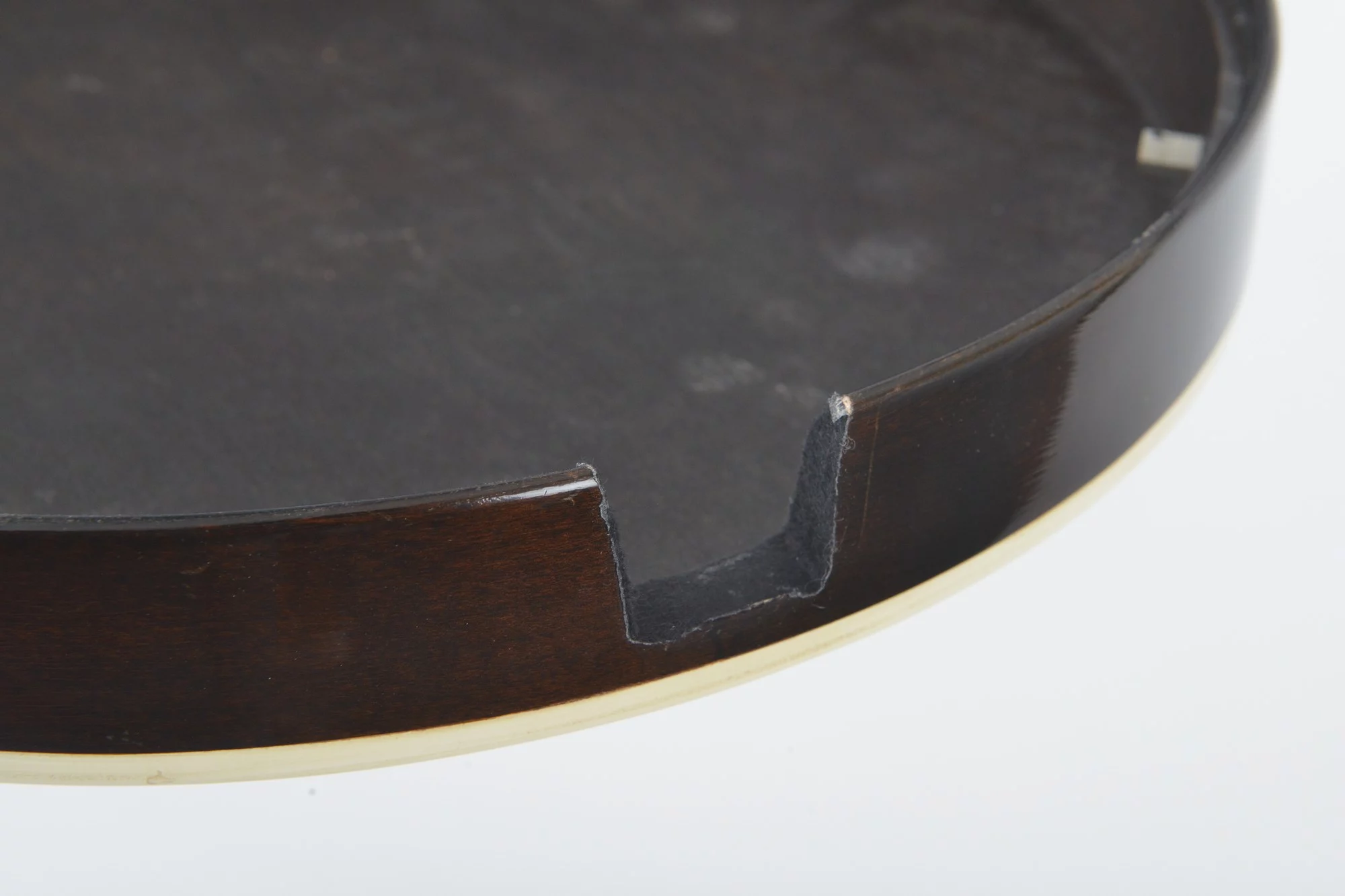 The pot has been converted for a 20-hole Jerry Sloan flathead tonering. The conversion neck is made of maple and an ebony fingerboard with RB-1 inlays.