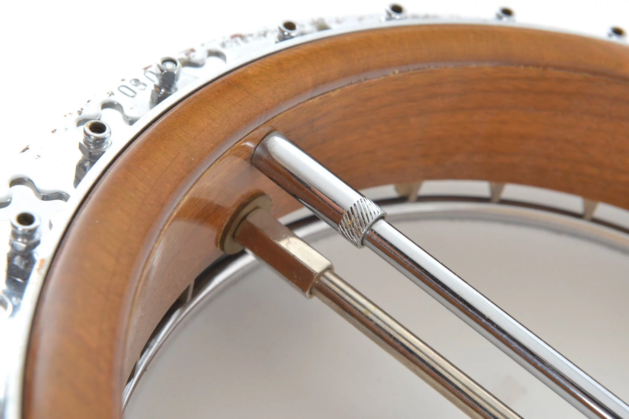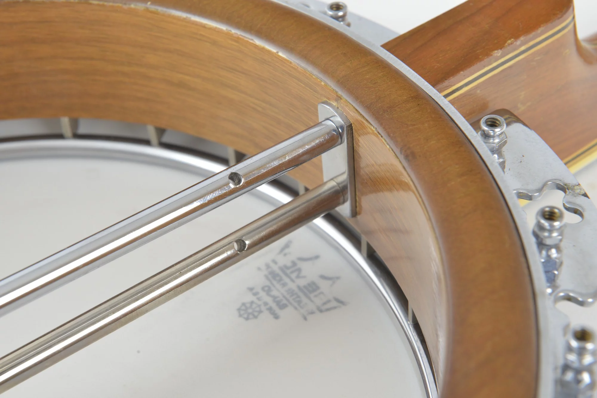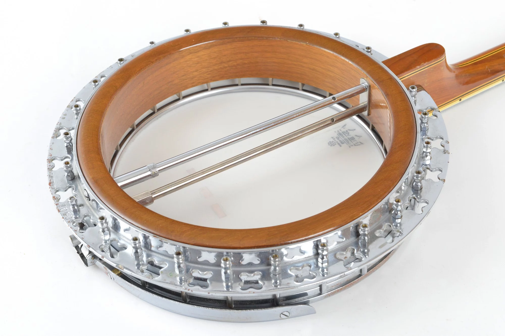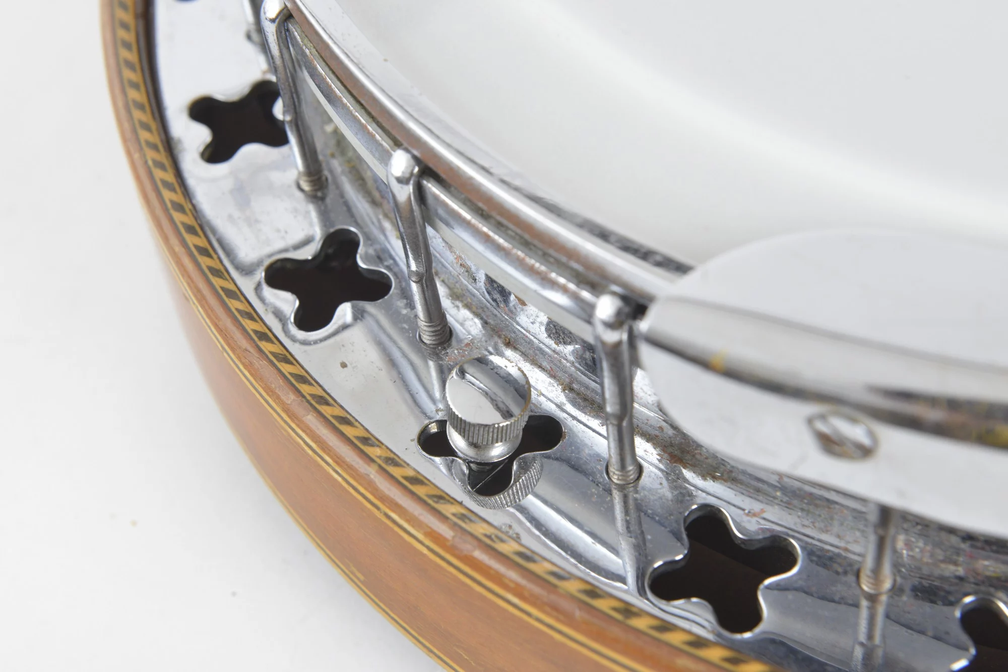 Serial 7080 stamped on the flange. Several signs of use and age on the surface (esp. on the resonator). Nice string action. Clear and crisp sound. Comes with a heavily used case.
