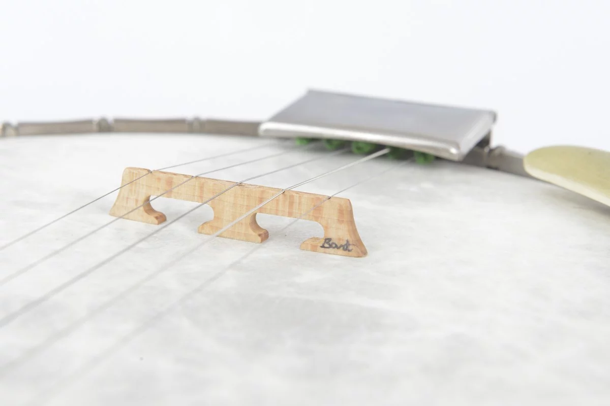 New added Remo Fiberskyn 11″ head and Bart Veerman maple bridge. Setup with medium gauge strings.