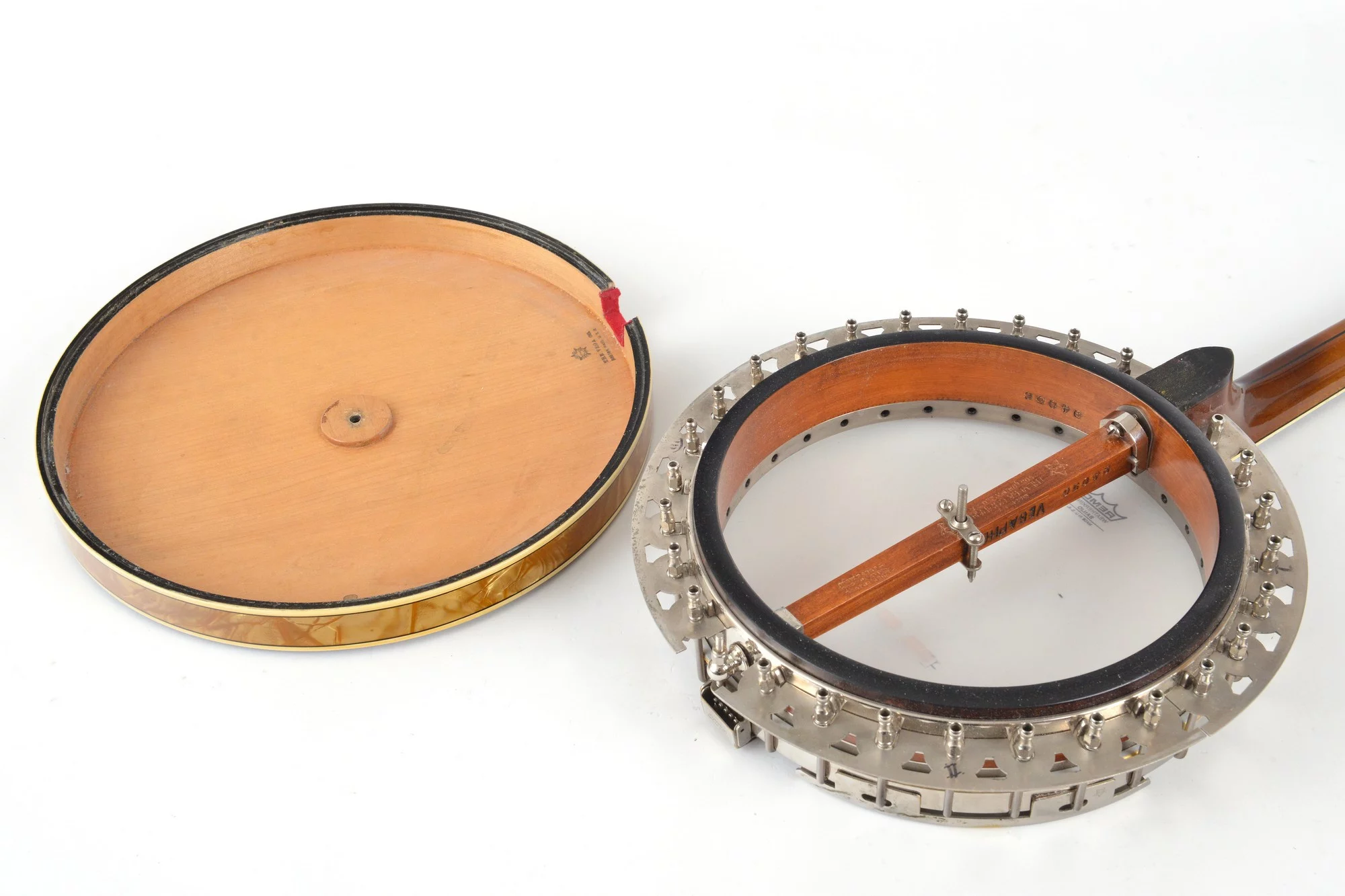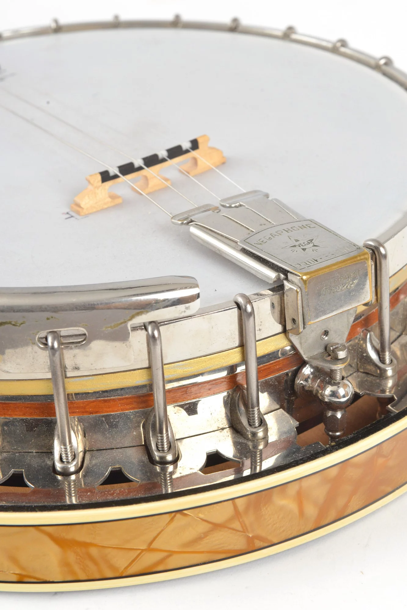 Resonator with celluloid sides, 4-piece flange, tubaphone tonering and orig. Vegaphone tailpiece.