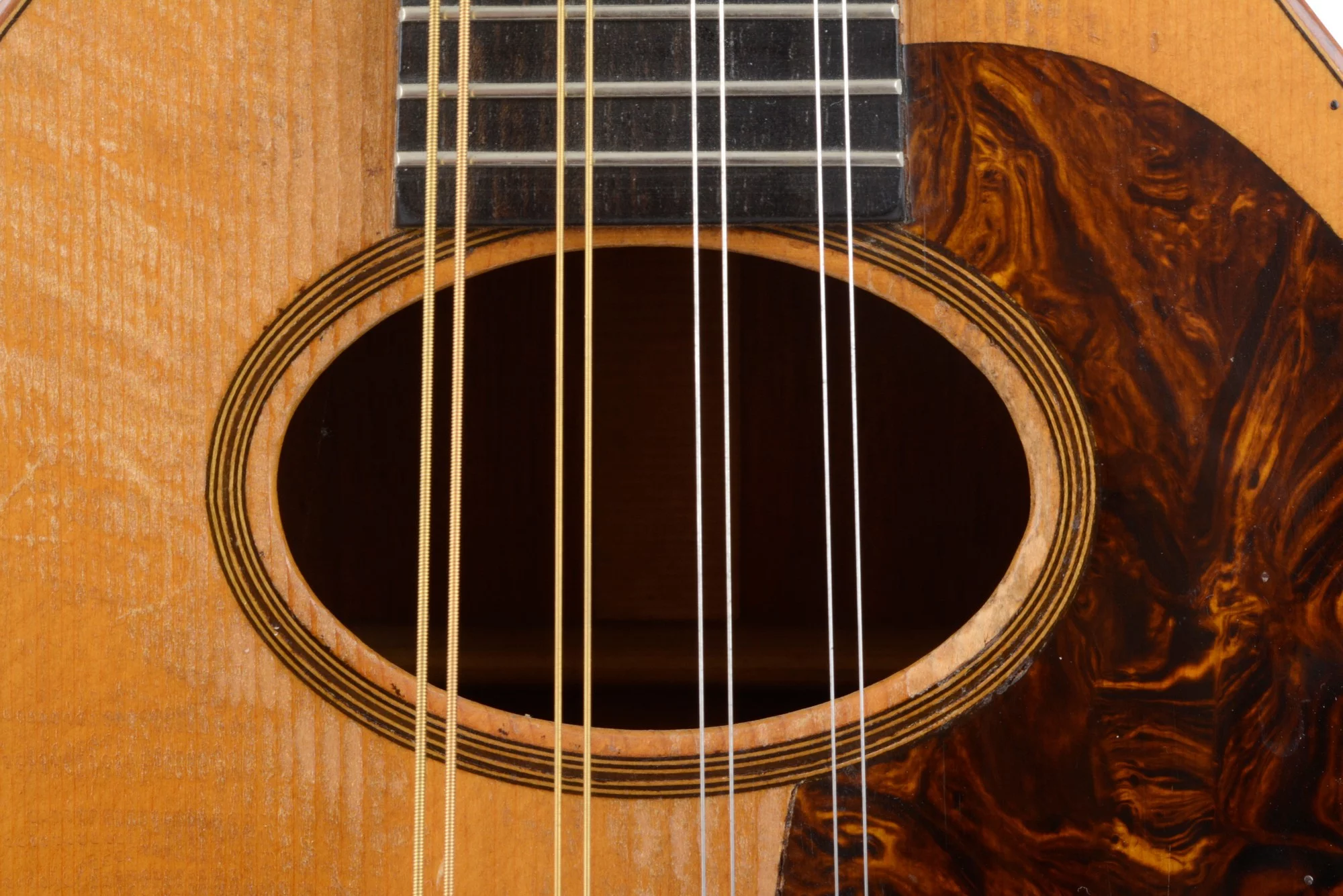 An incredible player for folk music, irish or oldtime! Lightweight and handy C.F. Martin mandolin with serial 14834 (1930). Very comfortable playing with a straight neck and string action of 2mm at the 12th fret. Rich and powerful sound.