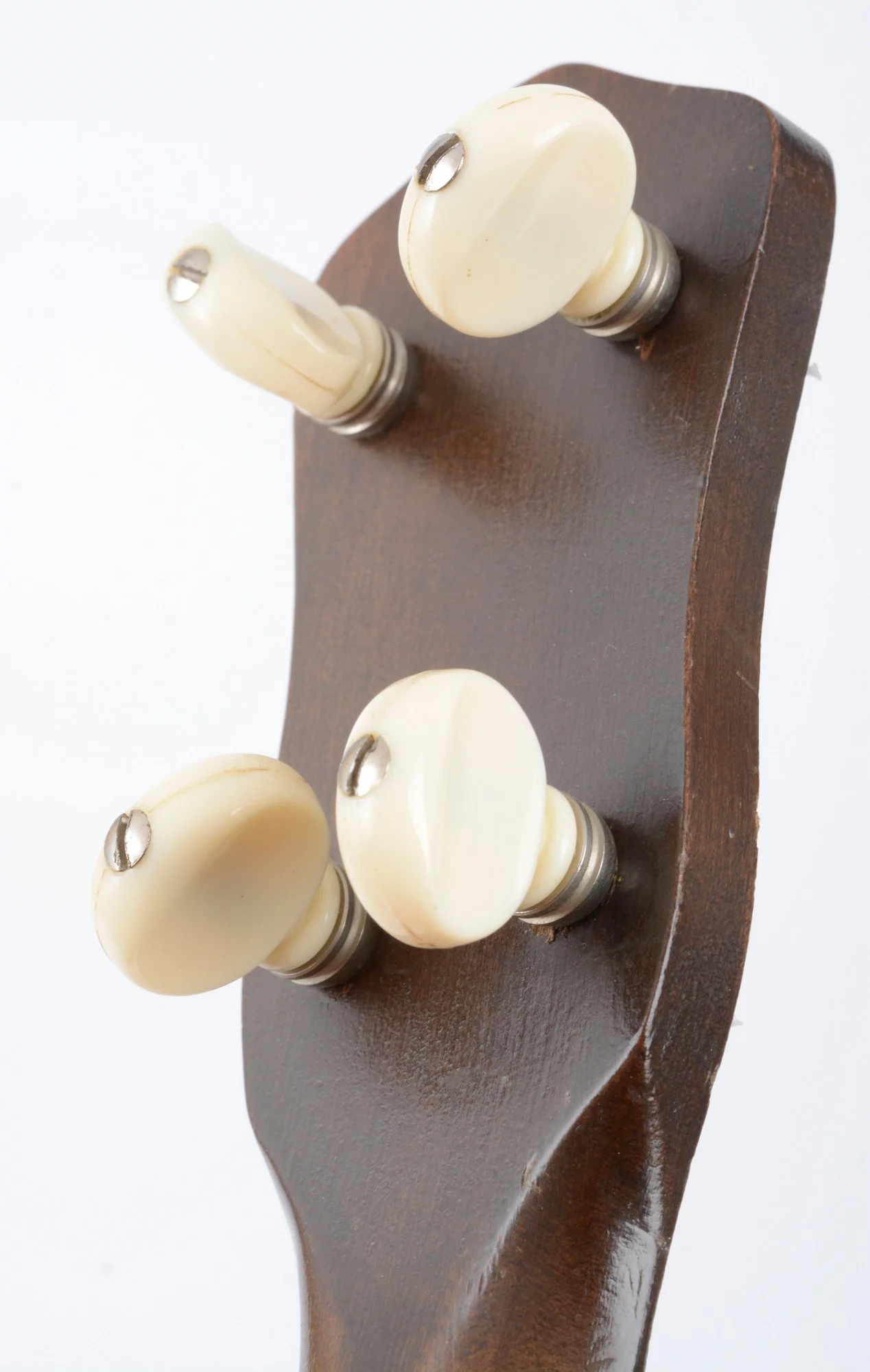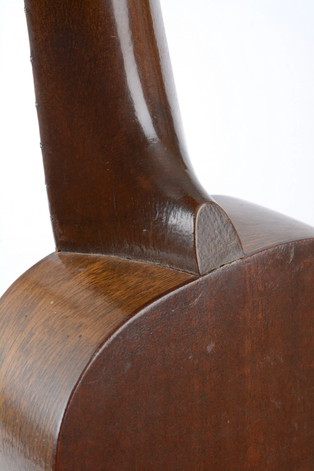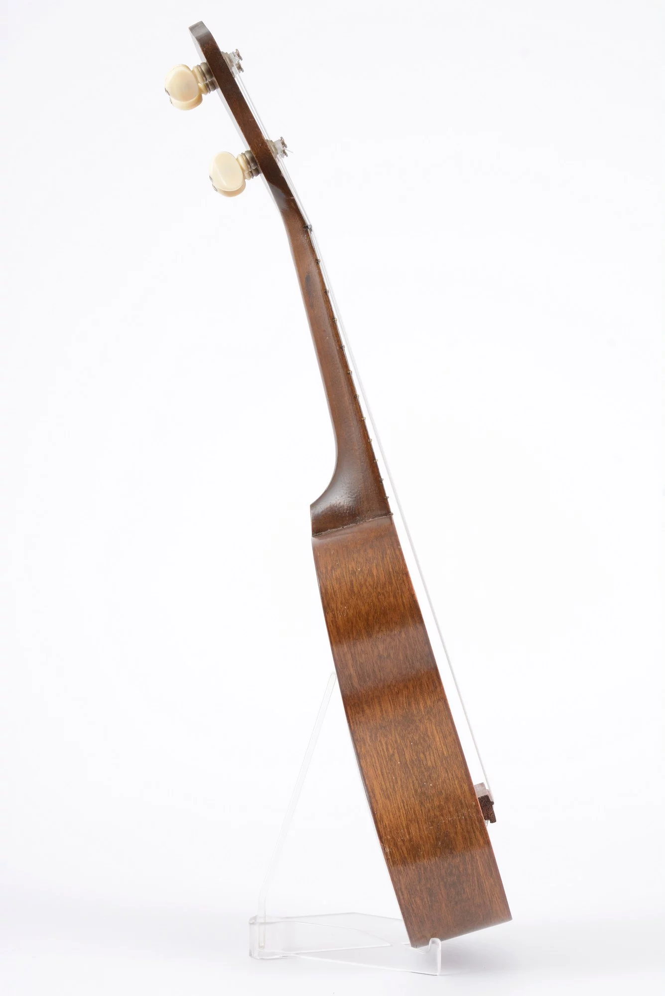 A nice and tiny sopran ukulele by B&D, New York with that perfect sweet uke sound. Refirbished by luthier Karsten Schnoor in Hamburg, Germany. Non-original friction pegs. Label inside. Straight neck and good frets.