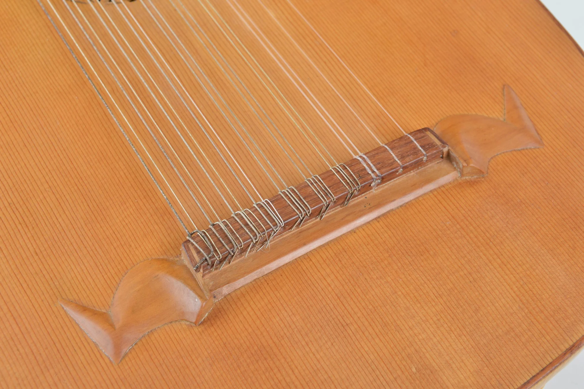 Labeled inside, 8-plank body. One tuning peg has been replaced. Beautiful carvings on the peghead and rosette.