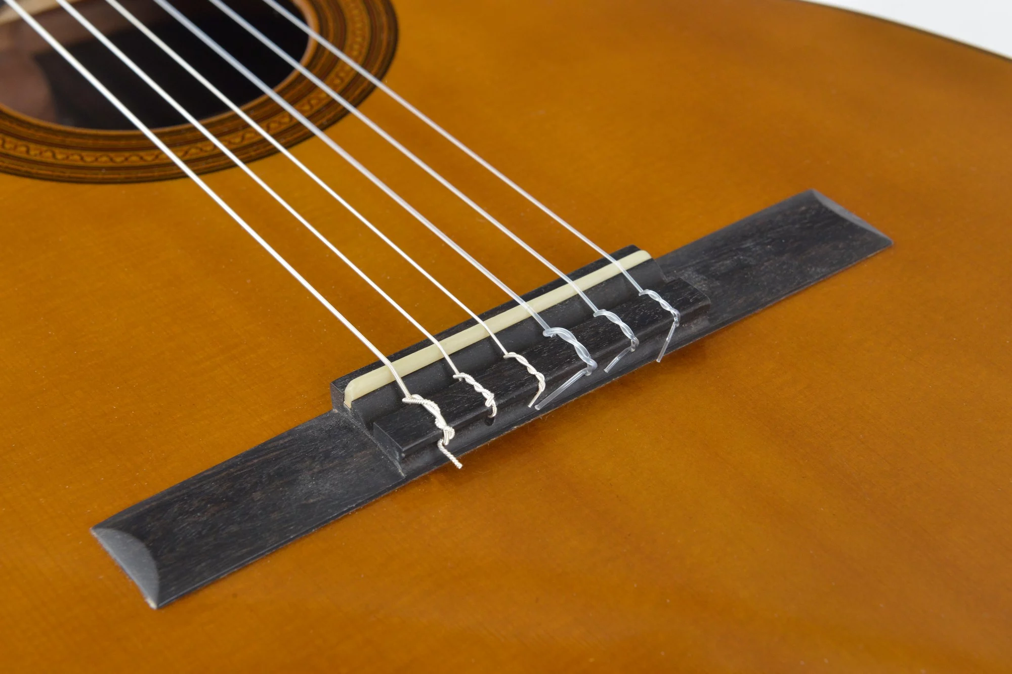 Die Gitarre ist sehr gut erhalten, es gibt nur minimale Kratzer im Lack, an der Kopfplatte oben ist einen etwas größerer Lackkratzer, der sicherlich polierbar ist. Am Korpus auf der Decke ist ebenfalls eine minimale Bestossung.