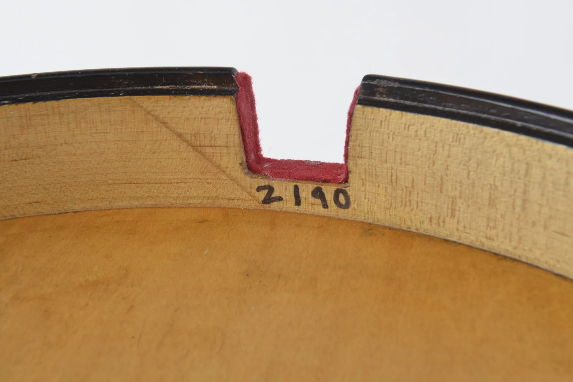 The serial 2190 is painted inside the resonator. Peghead with KS initials, heel cap with CL initials.