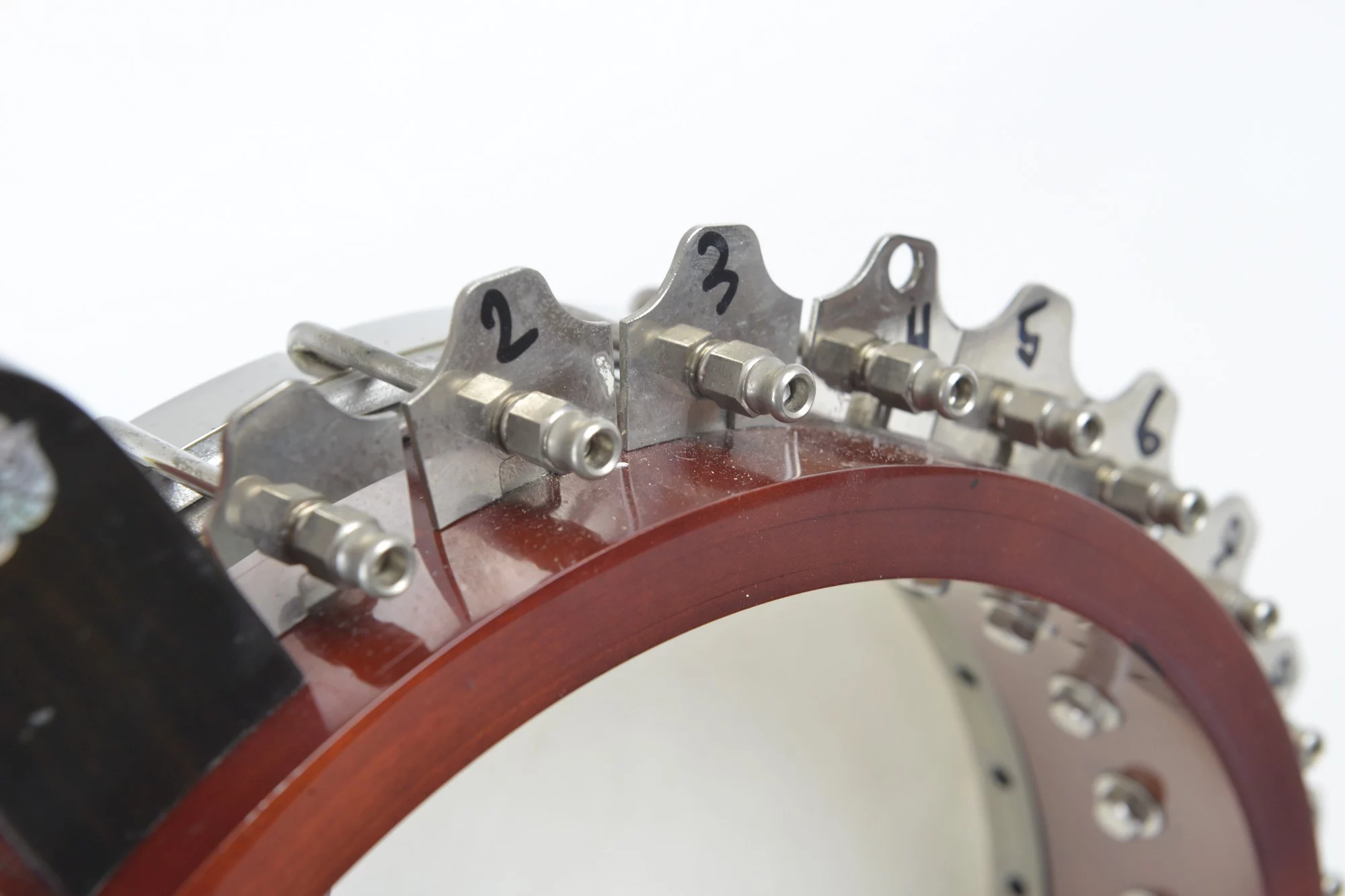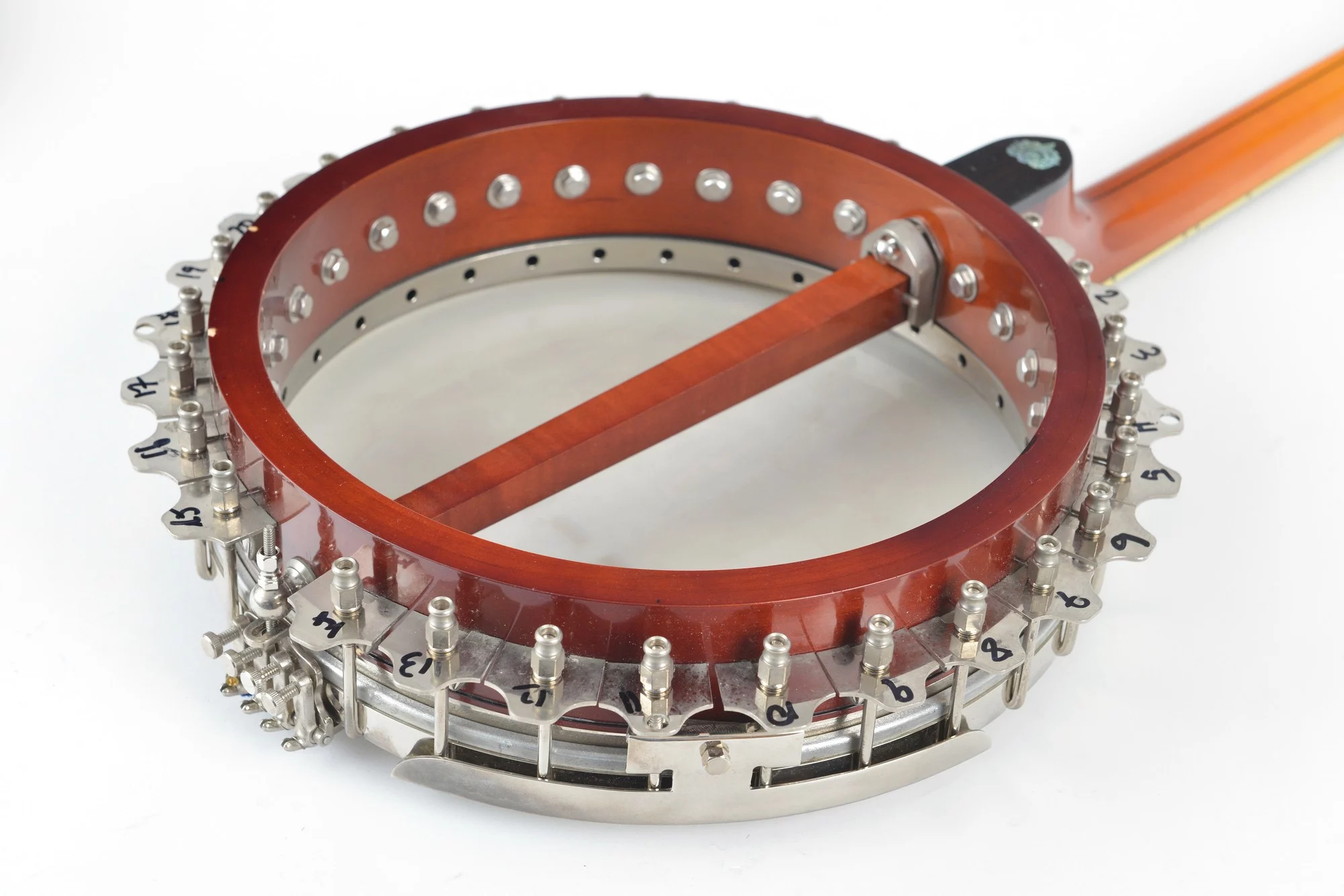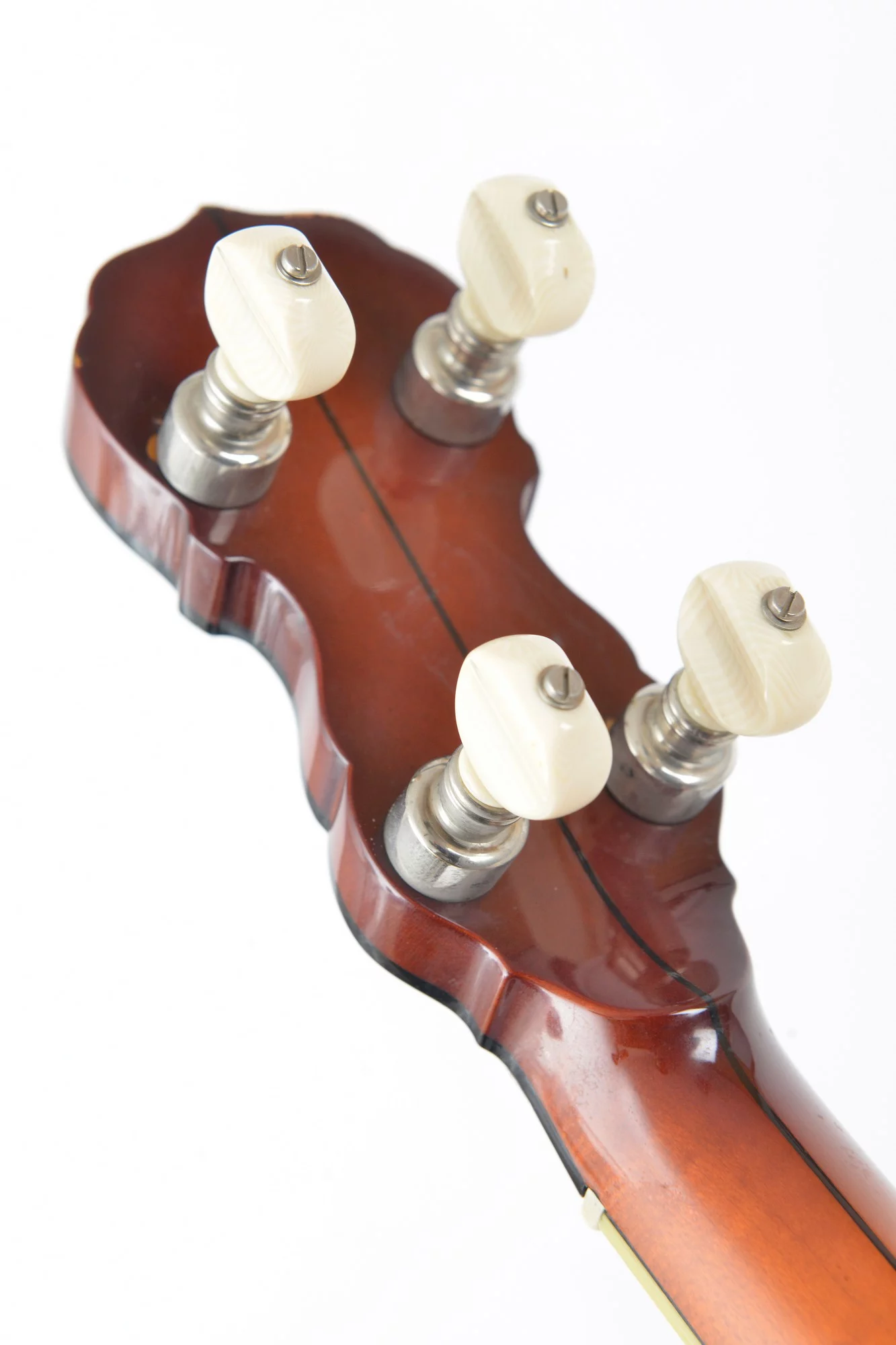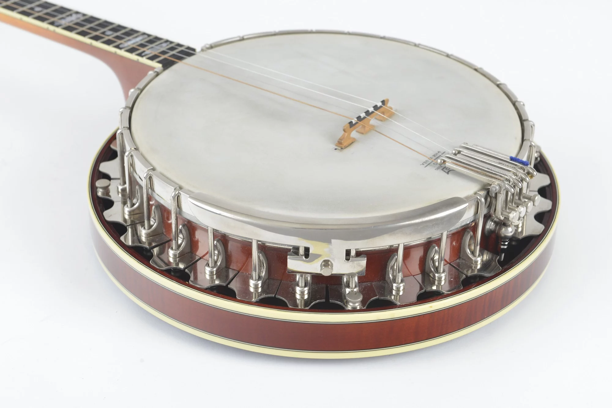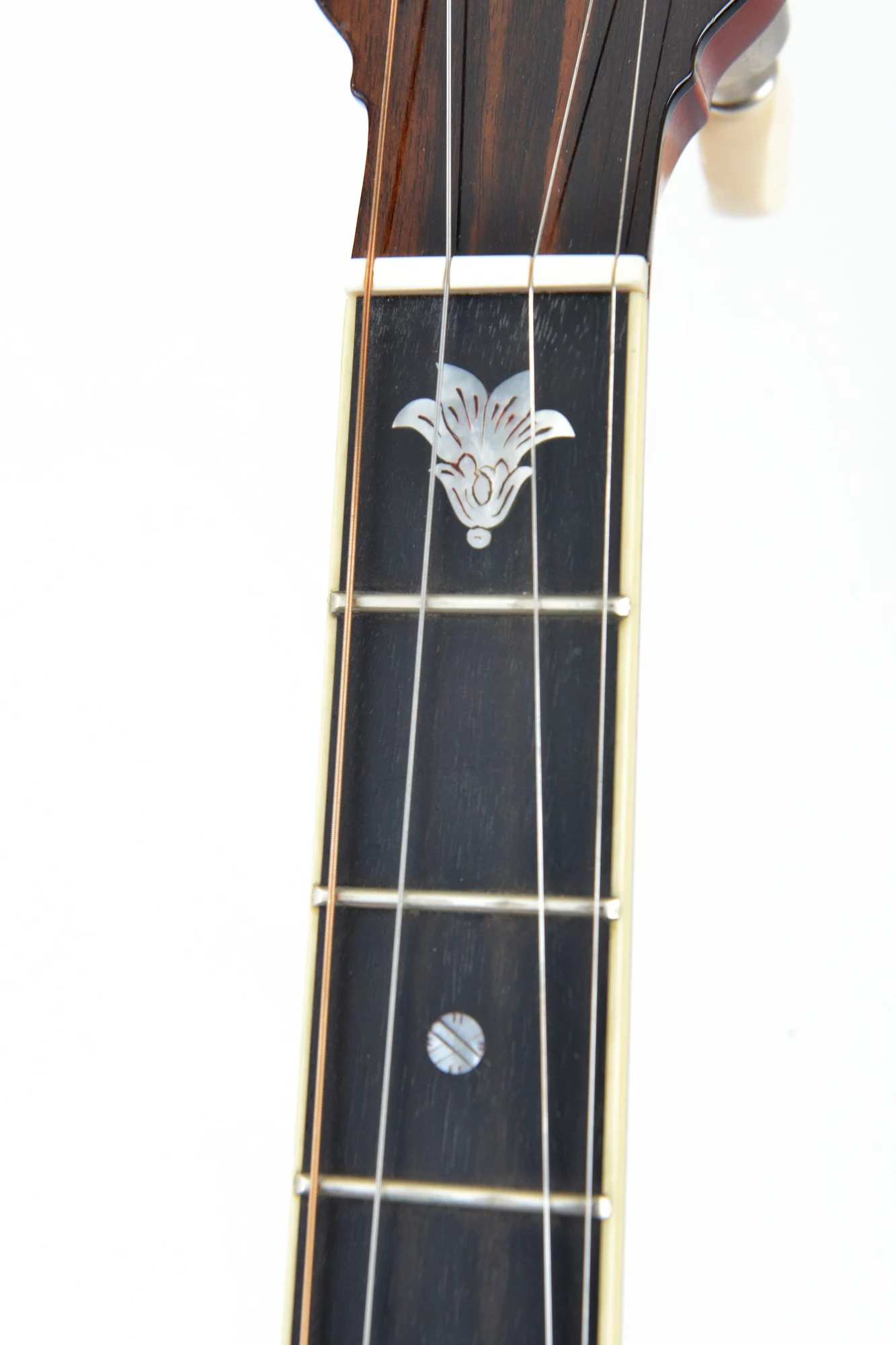 Tubaphone tonering, multi-piece flange, Oettinger tailpiece, heavy and massive resonator and nice inlays at the ebony fretboard and peghead.