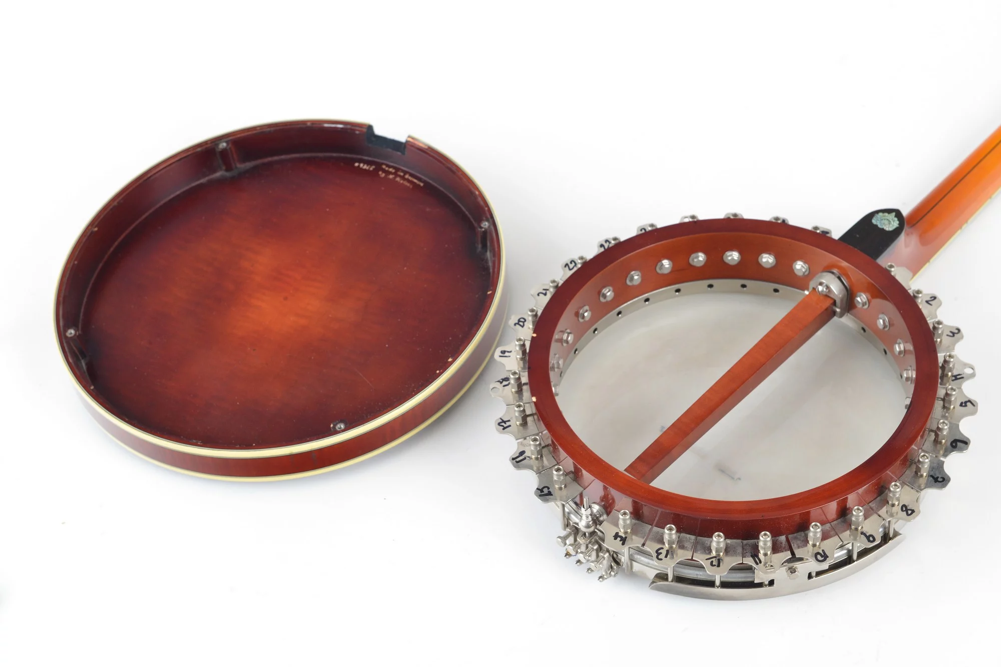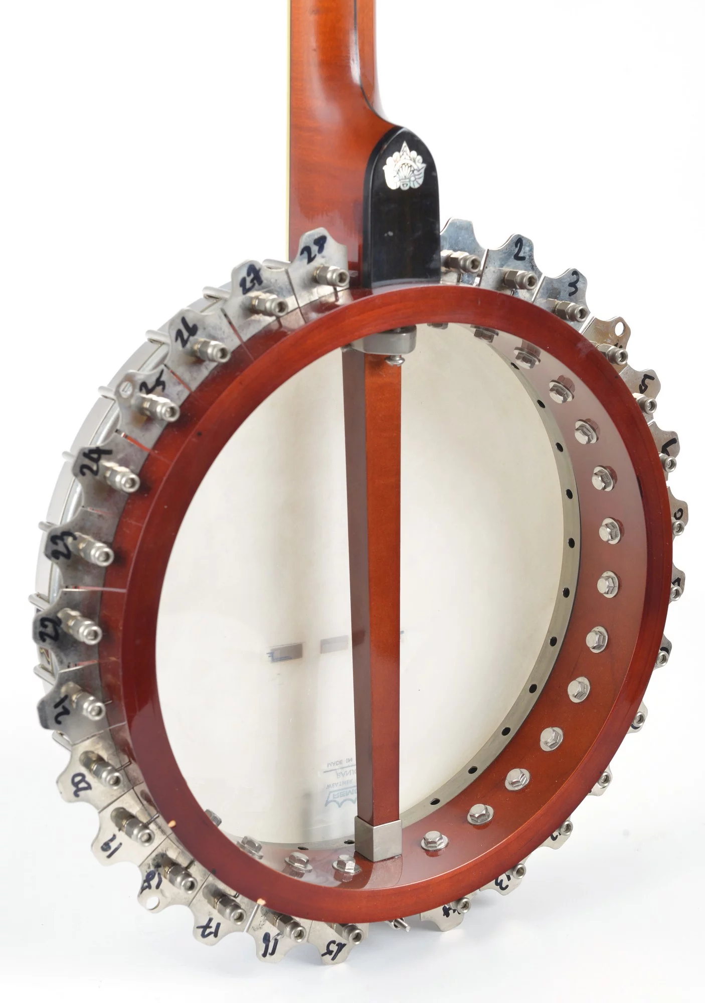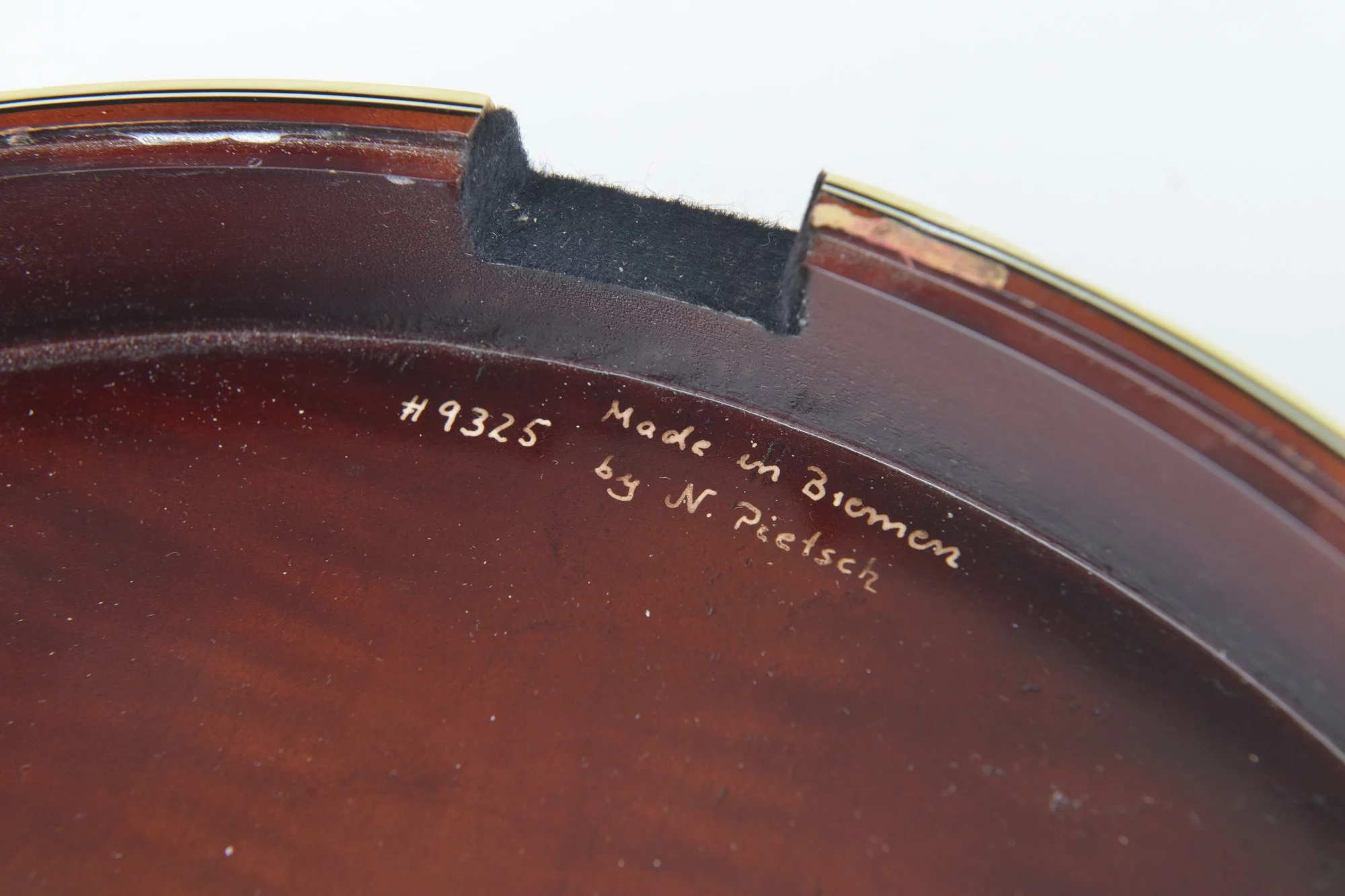 Vega style tenor banjo made by Norbert Pietsch, Germany, in 1995. The serial #9325 is painted on the resonator. Confirmed by Norbert Pietsch.