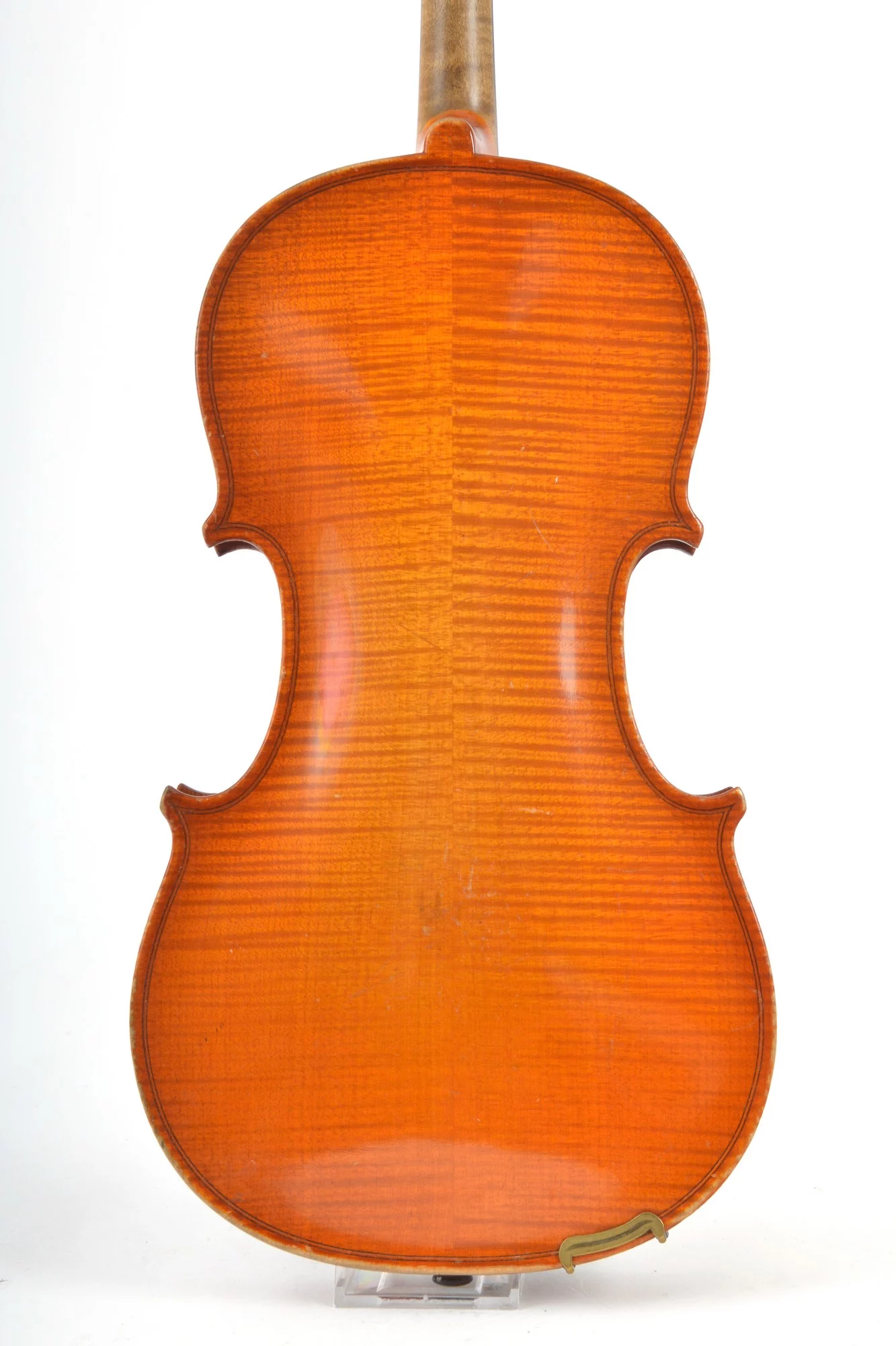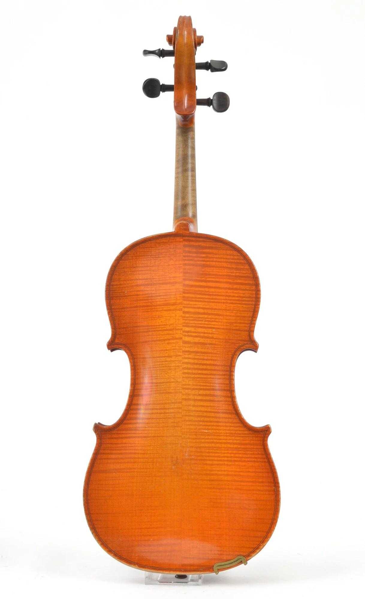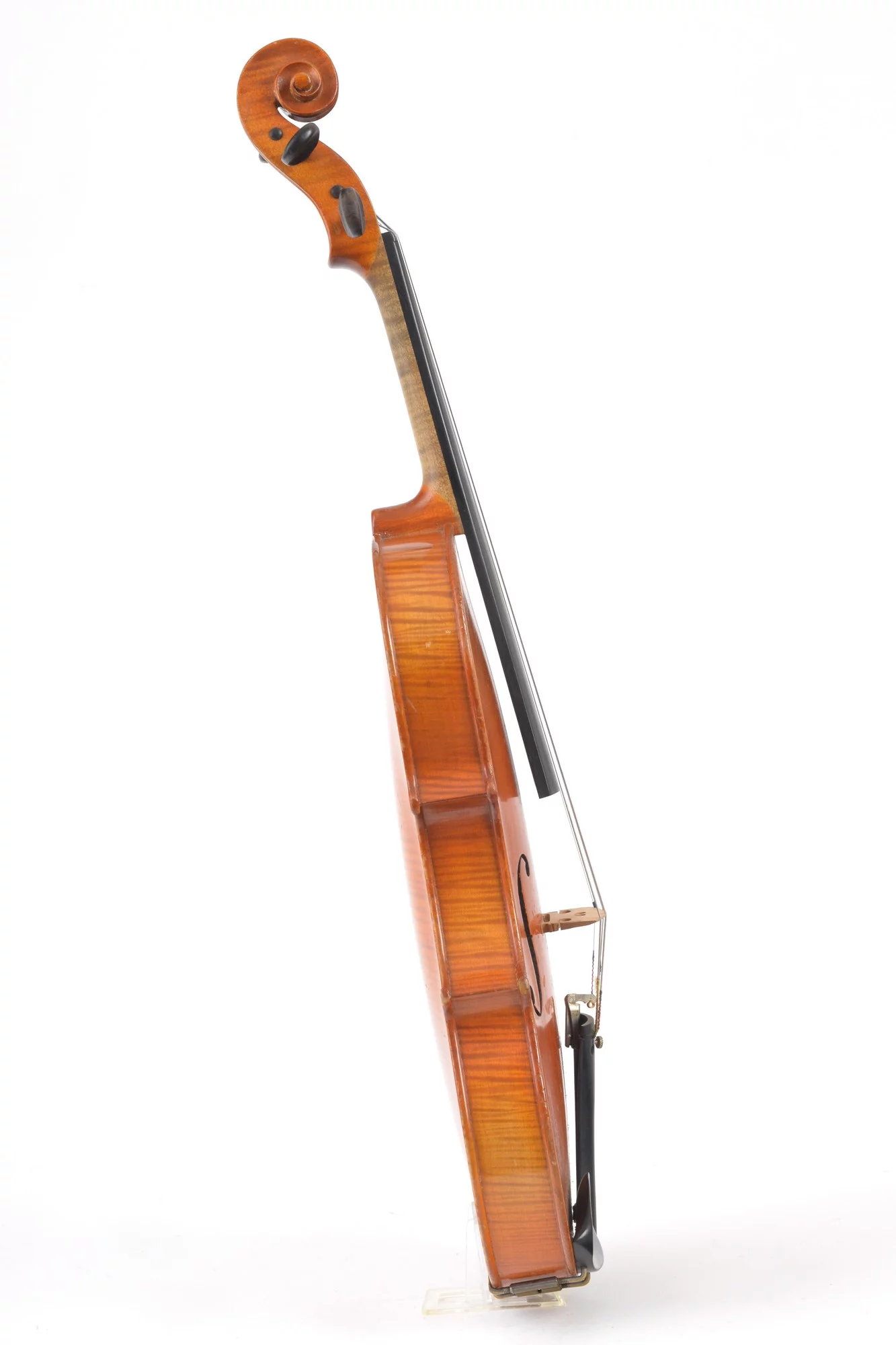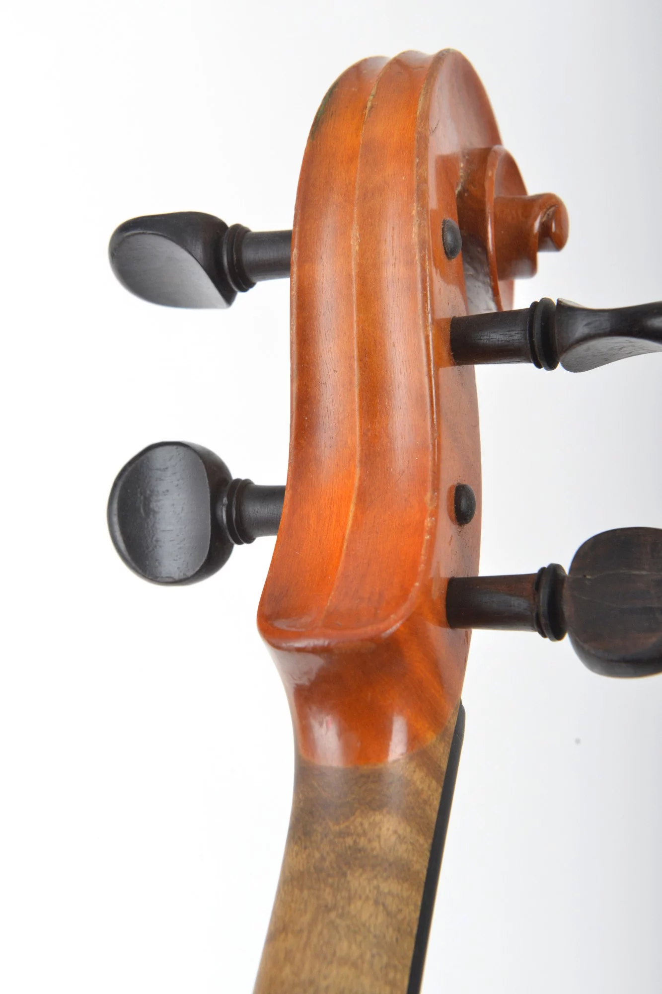 Unlabeled students´ instrument, probably from the Vogtland area, Germany. Well-built with and nicely flamed 2-piece back and sides. Playable condition including modern case.