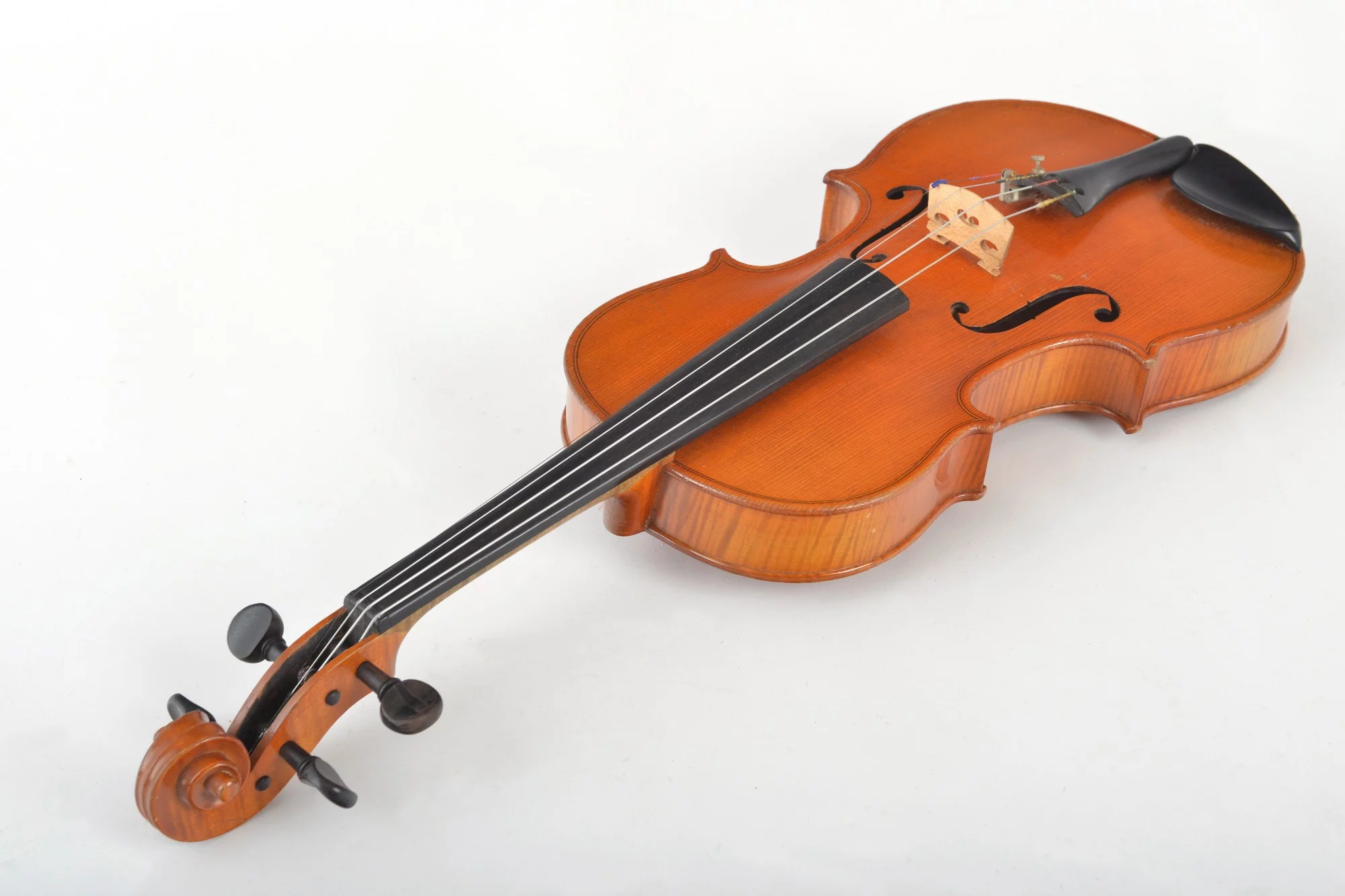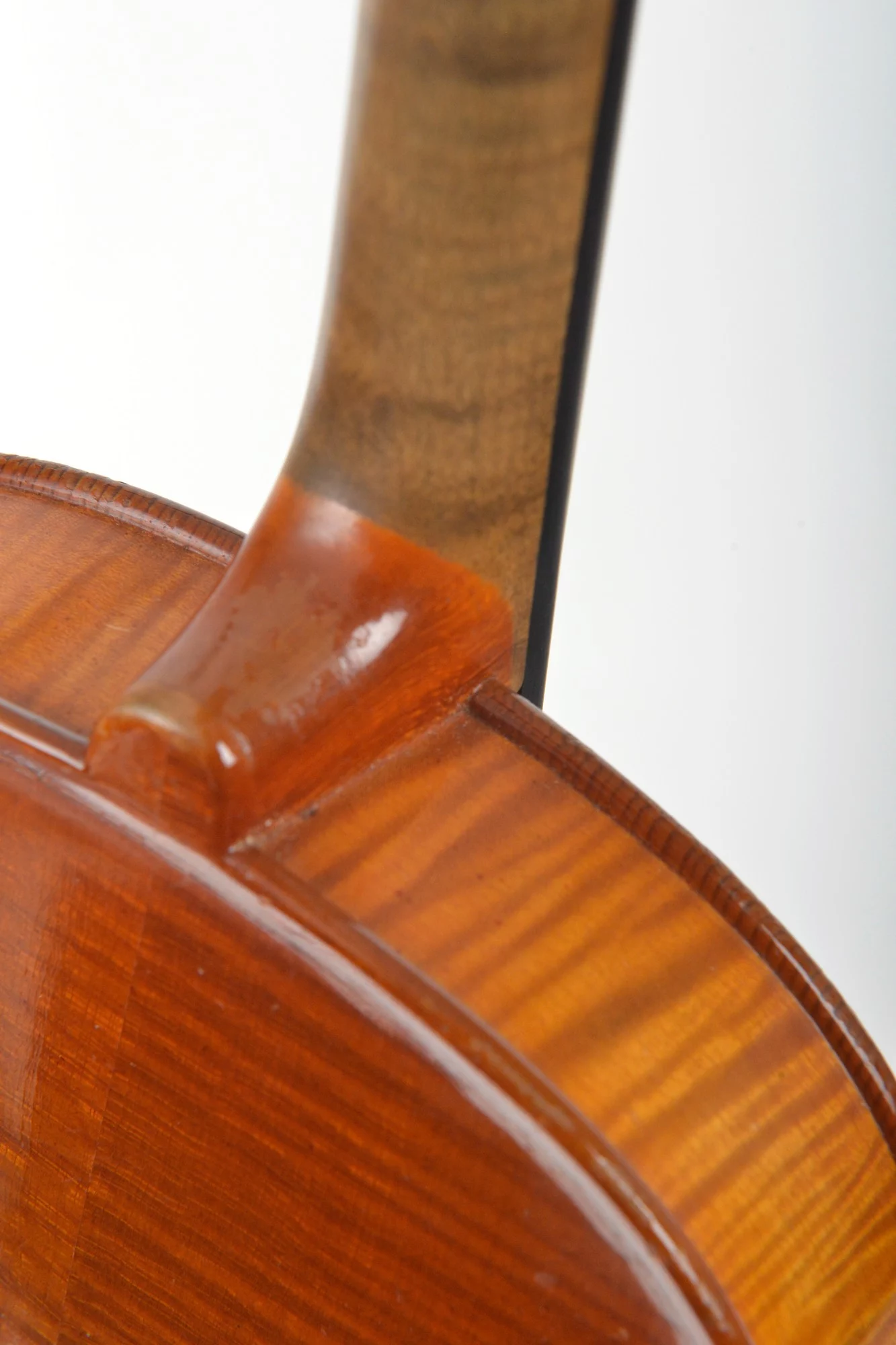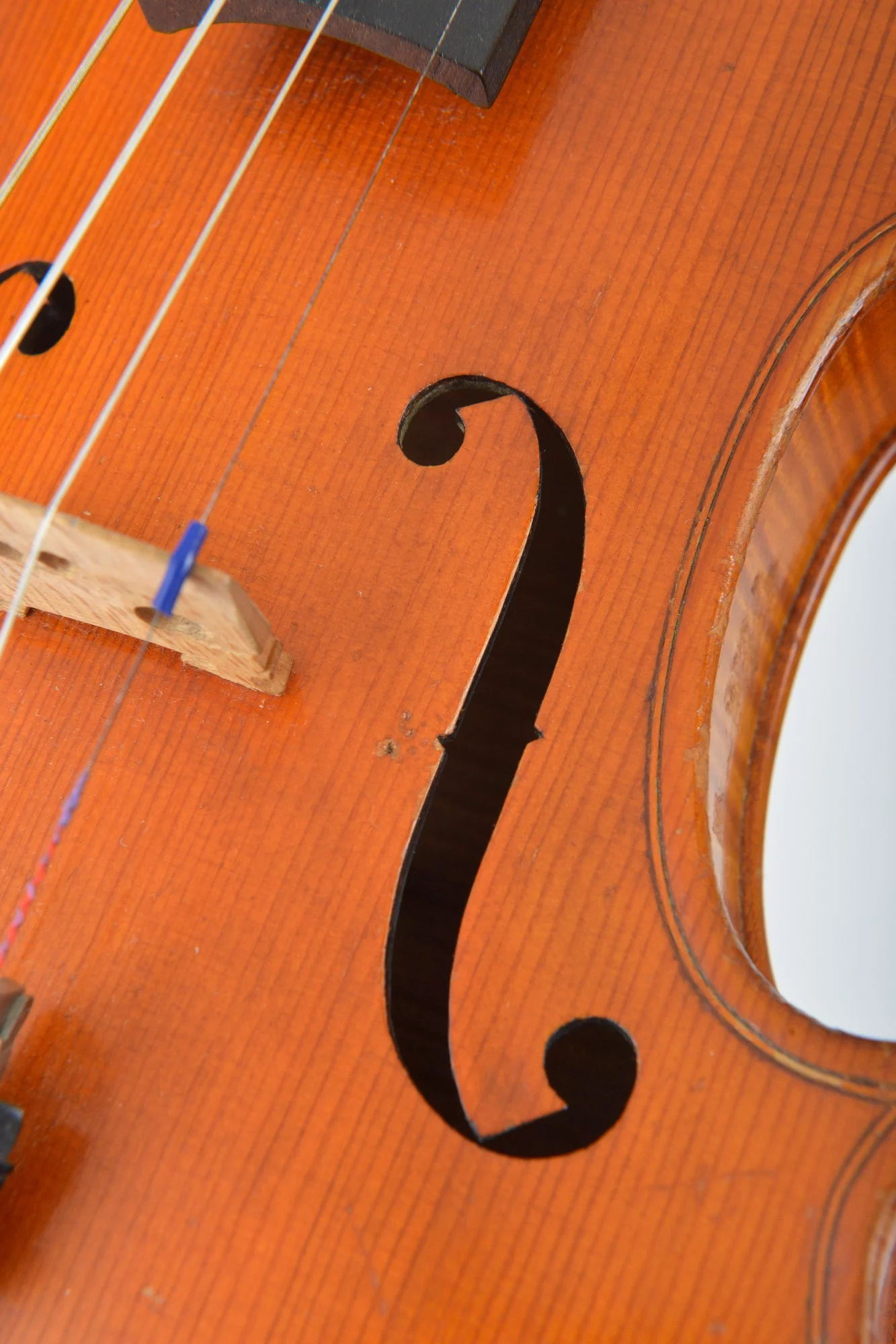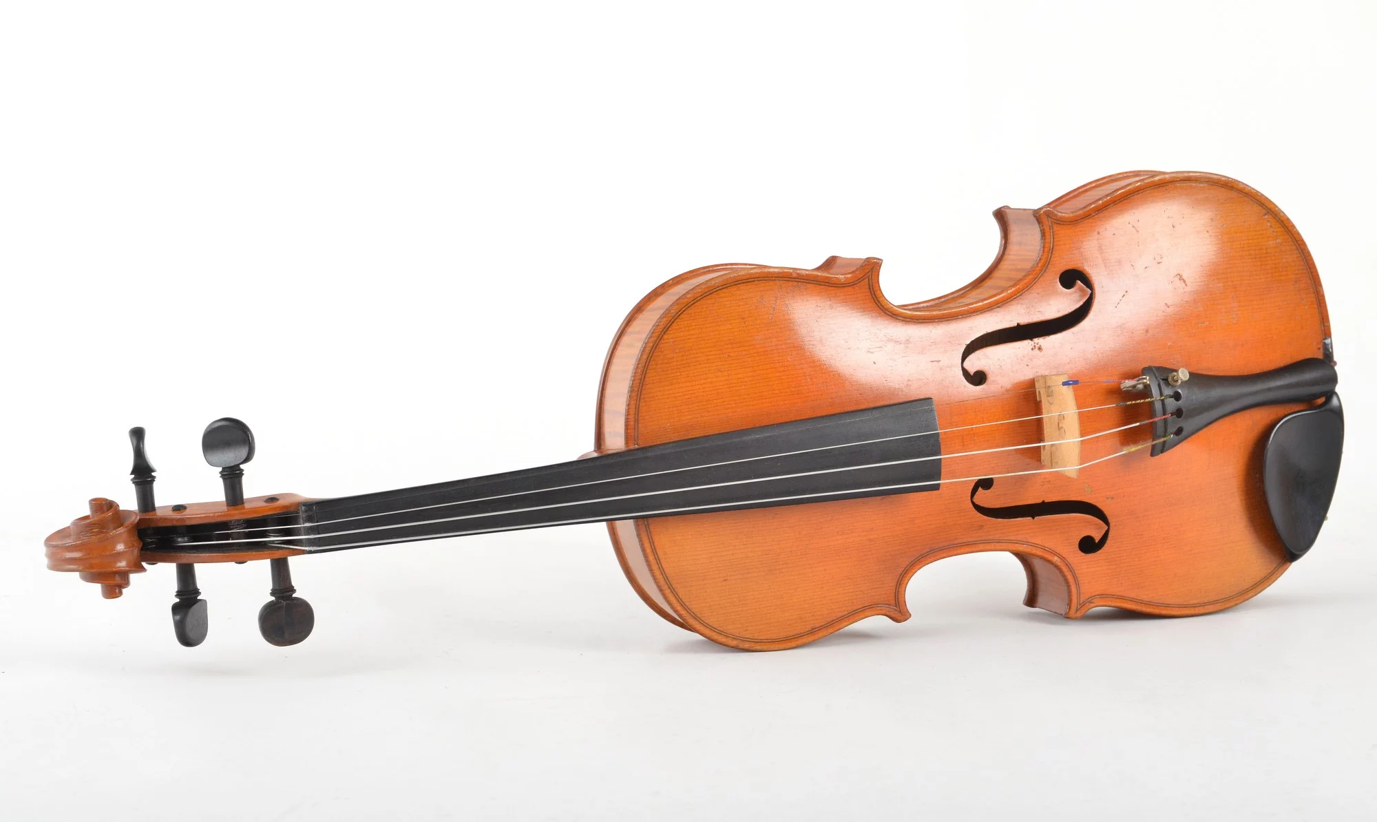 Unlabeled students´ instrument, probably from the Vogtland area, Germany. Well-built with and nicely flamed 2-piece back and sides. Playable condition including modern case.