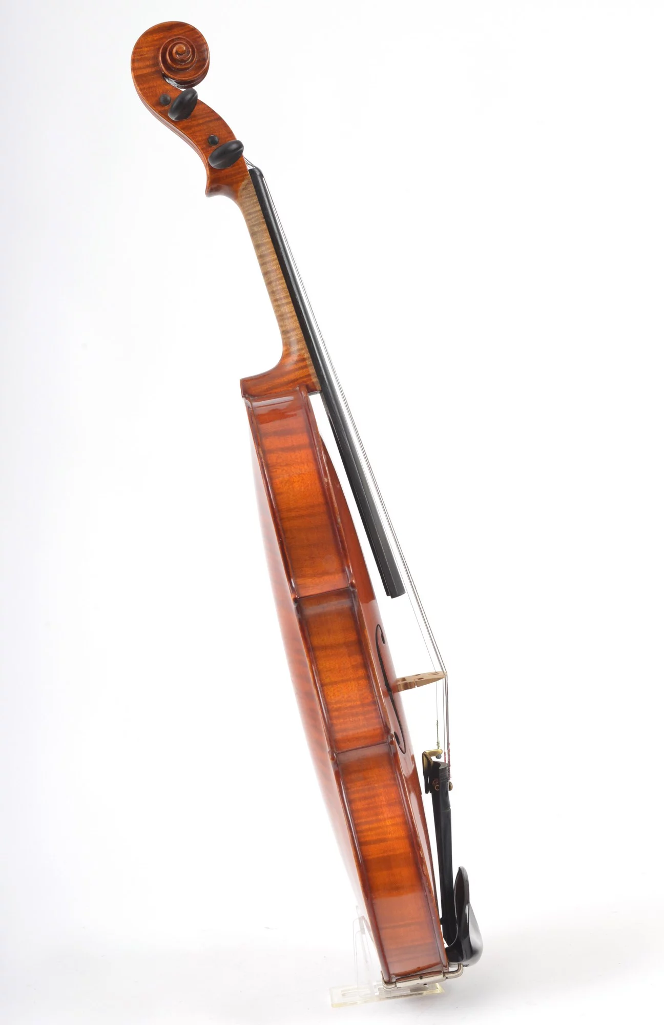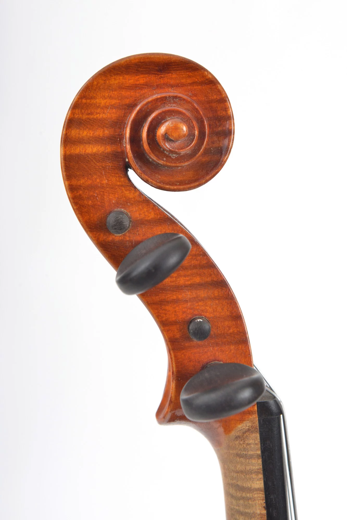 German students´ instrument built in the style of Maggini. 2-piece back, Cremonese scroll, doubled inlay at the edge.