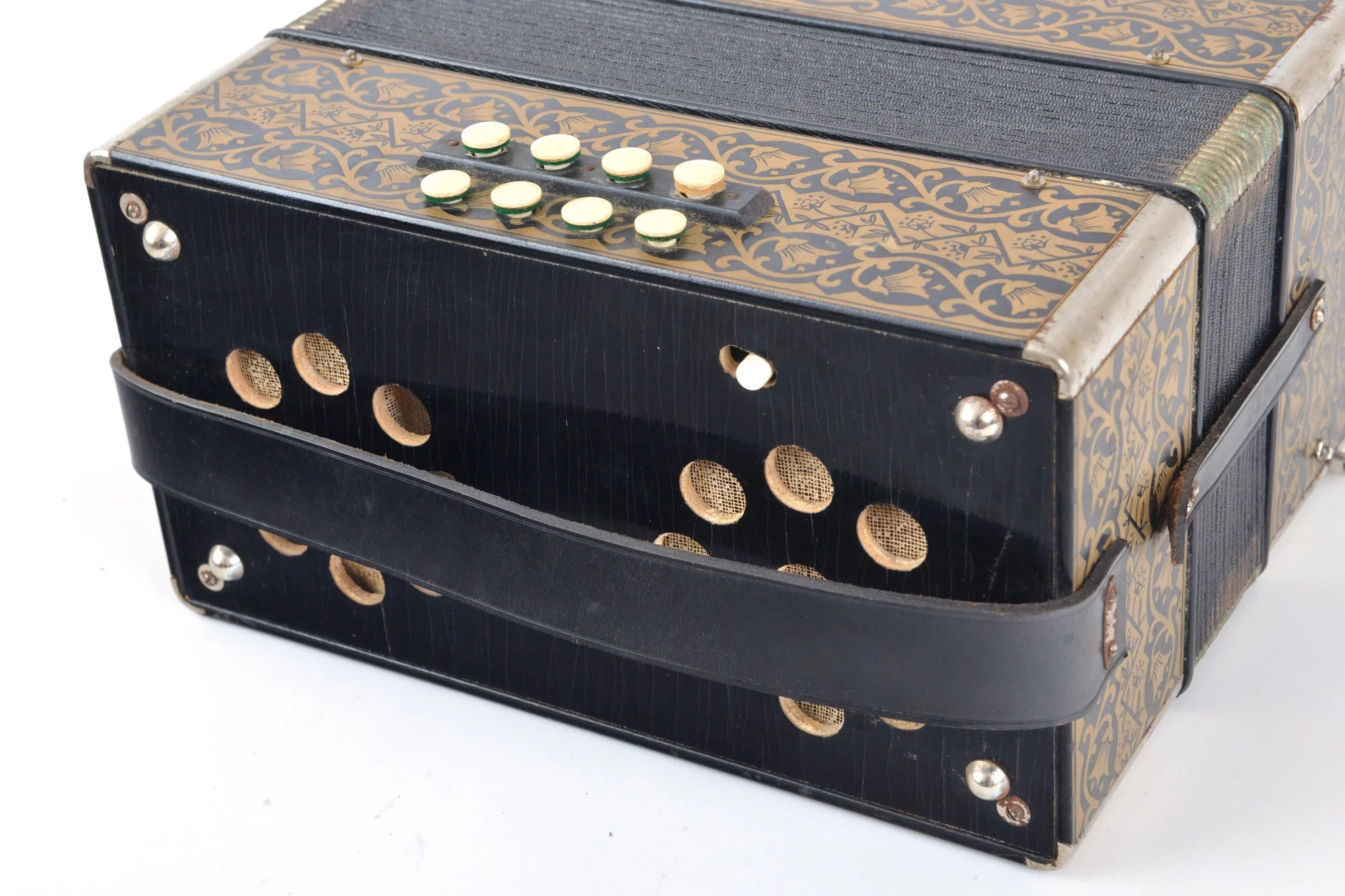 Diatonic two-row 8-bass button box in C/F.