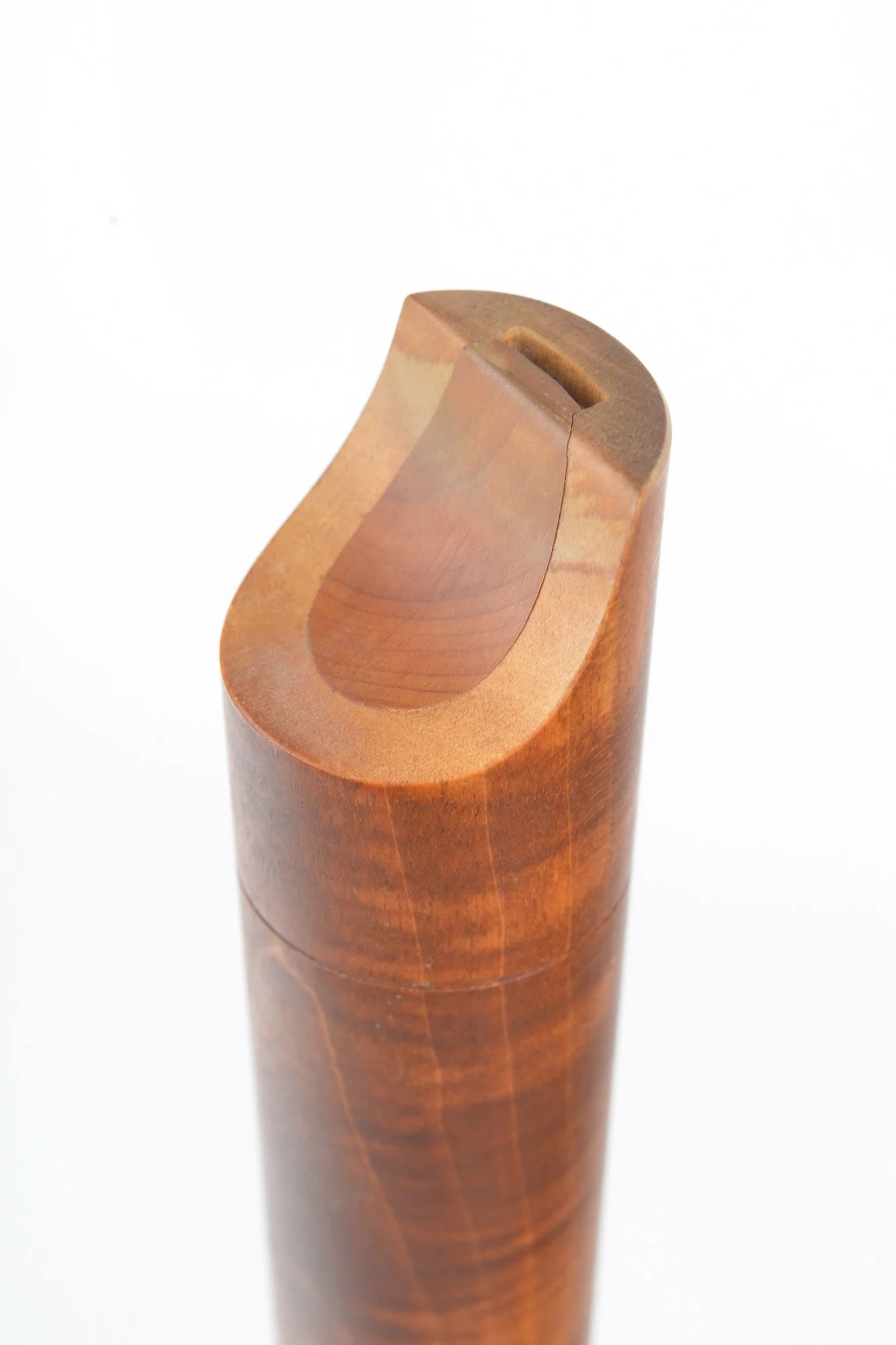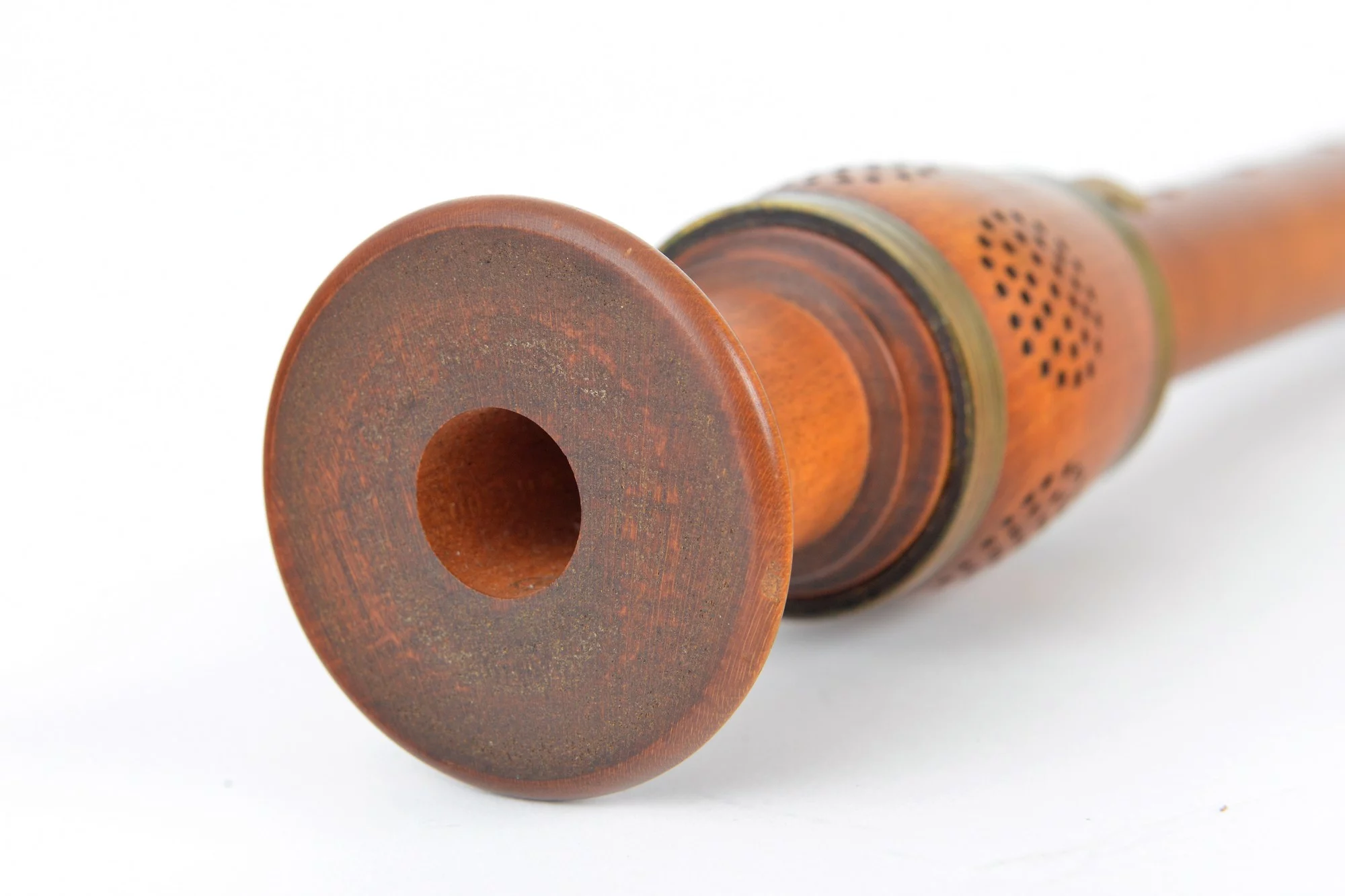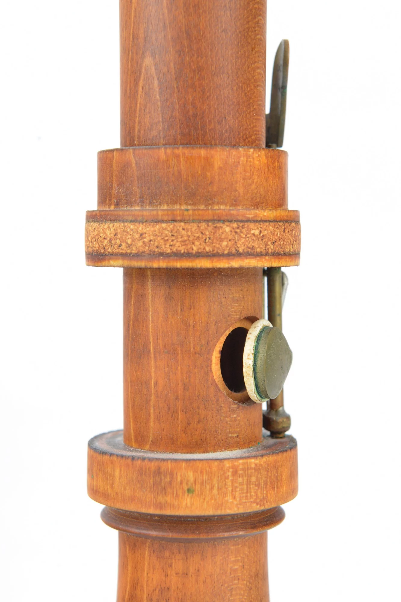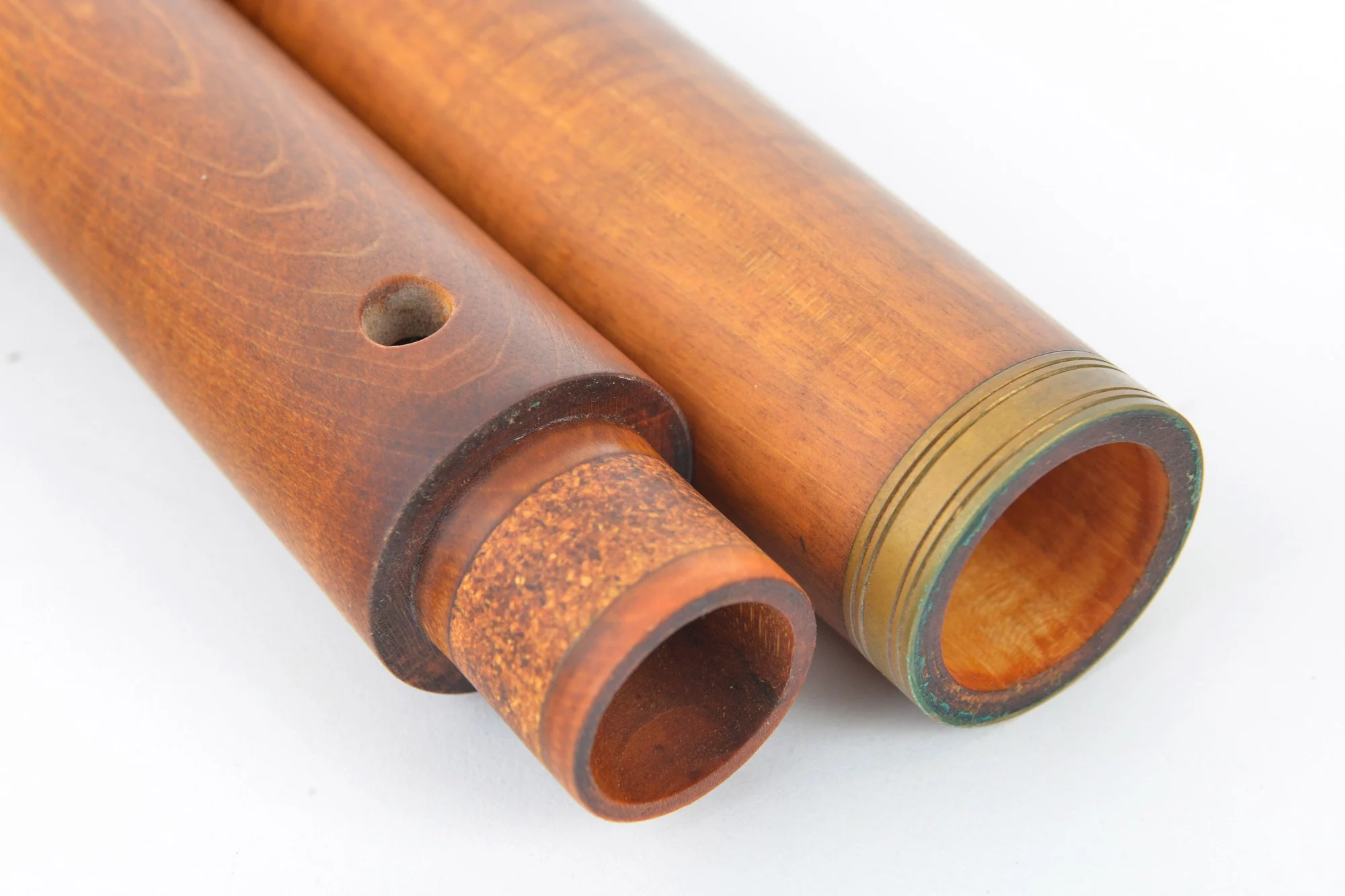Three-piece instrument made from maple and brass with dovetail key and fontanelle.