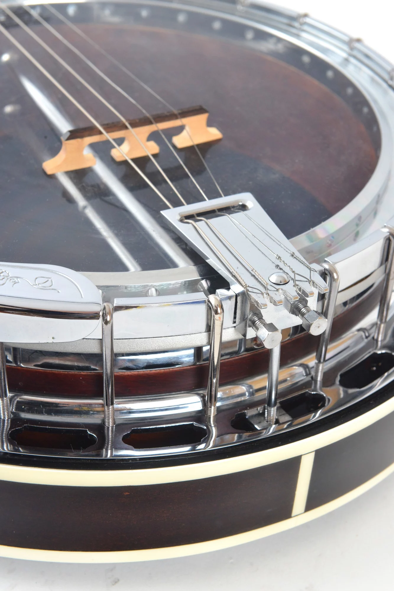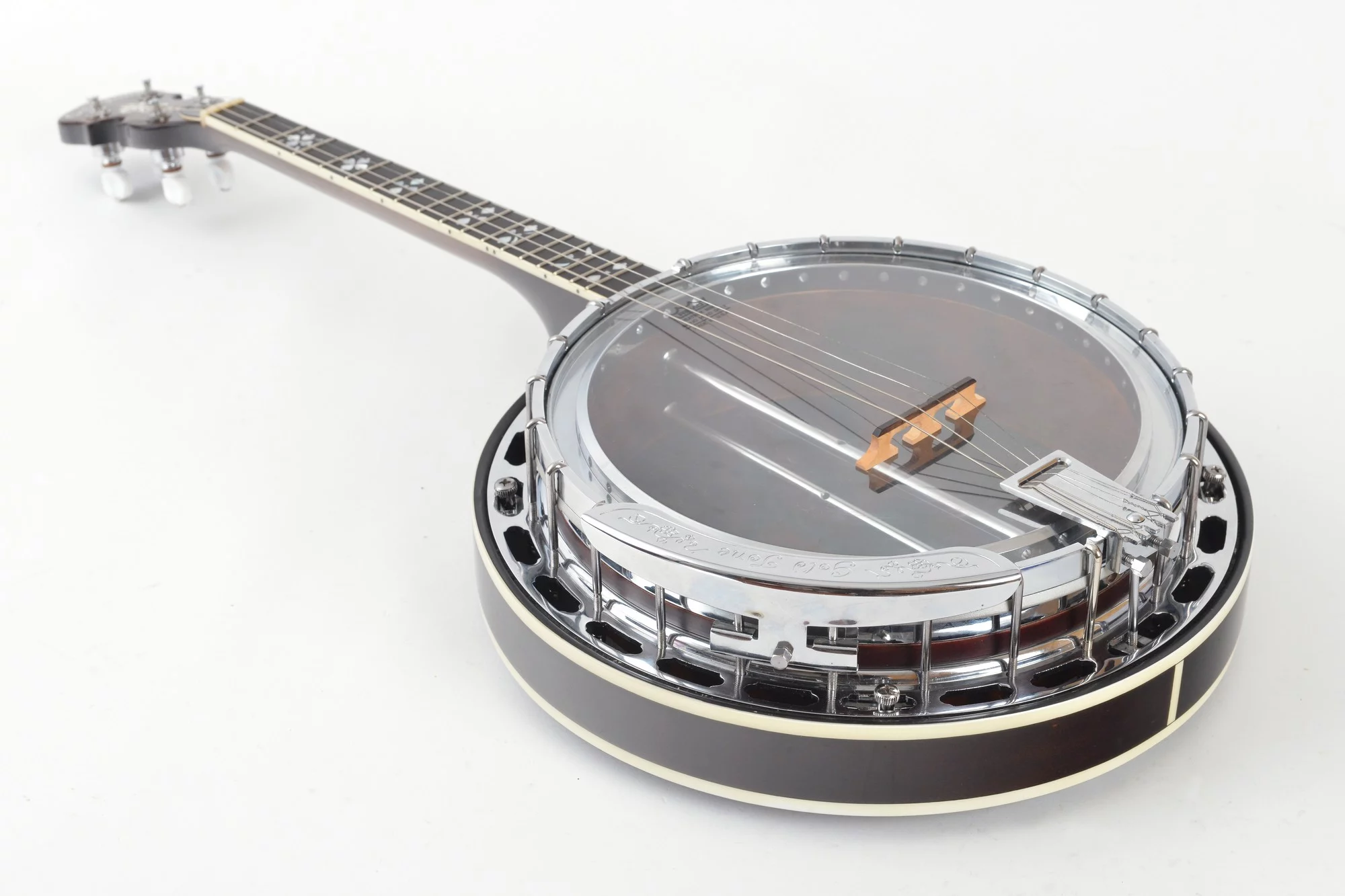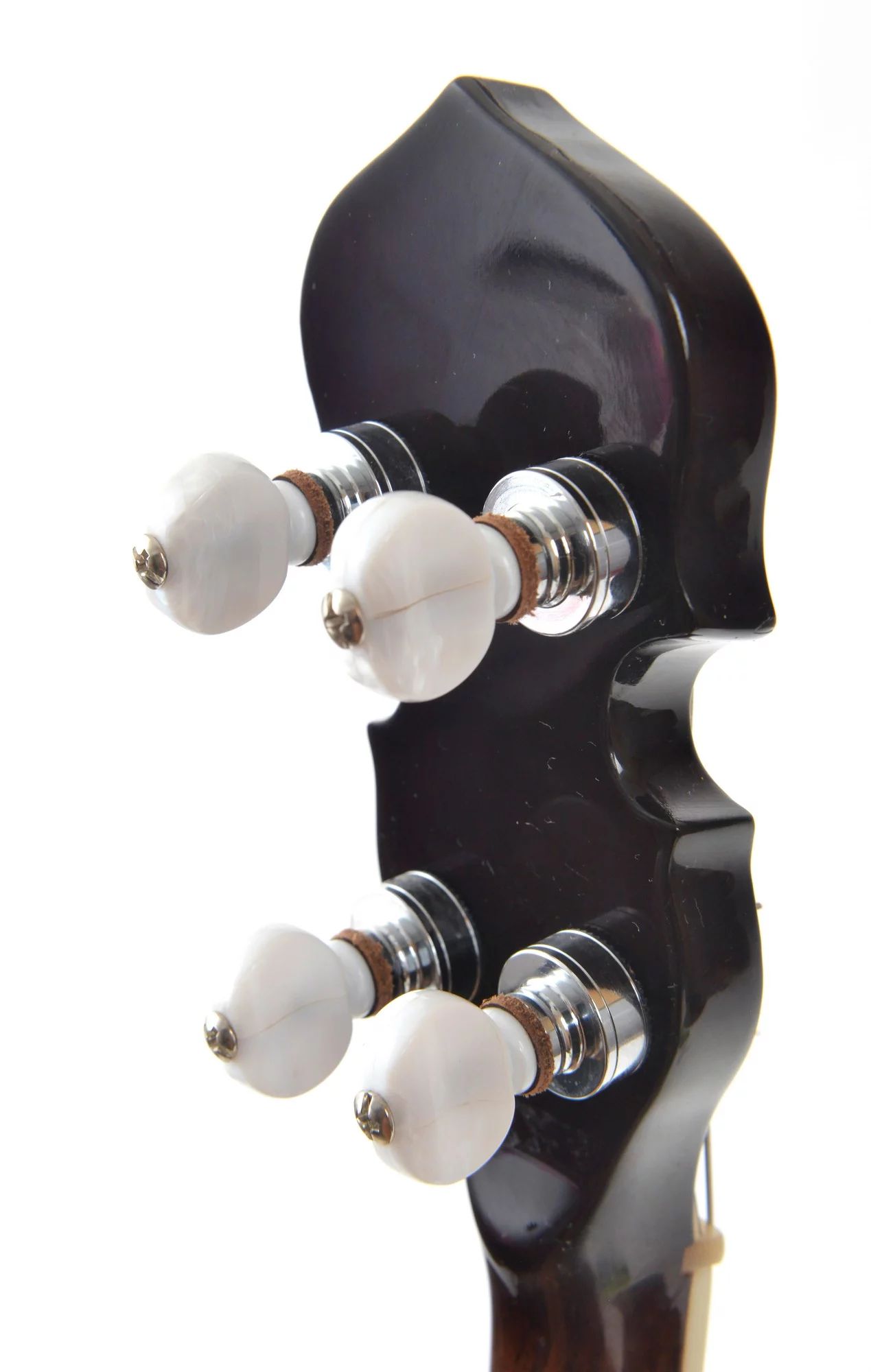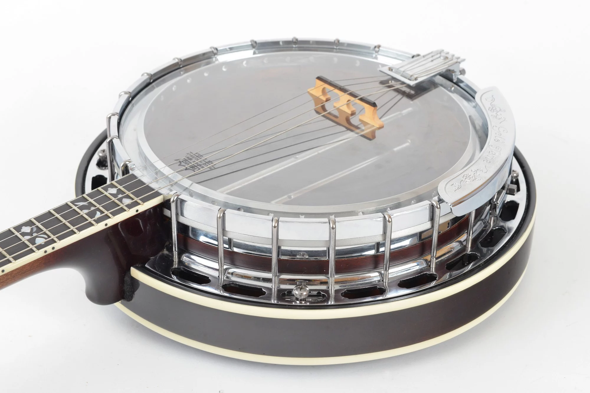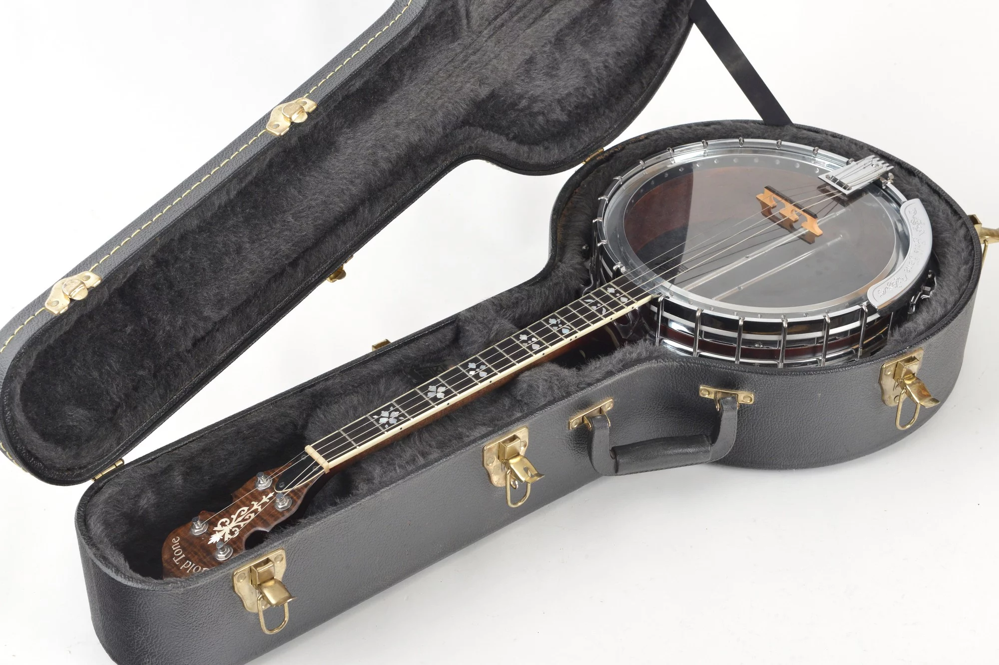 Serial 2808288. Perfect playing condition with minimal signs of use. The plastic buttons of the tuning pegs have hairline cracks, the typical problem of Goldtone tuners, but they are still working well. Including original hardcase.