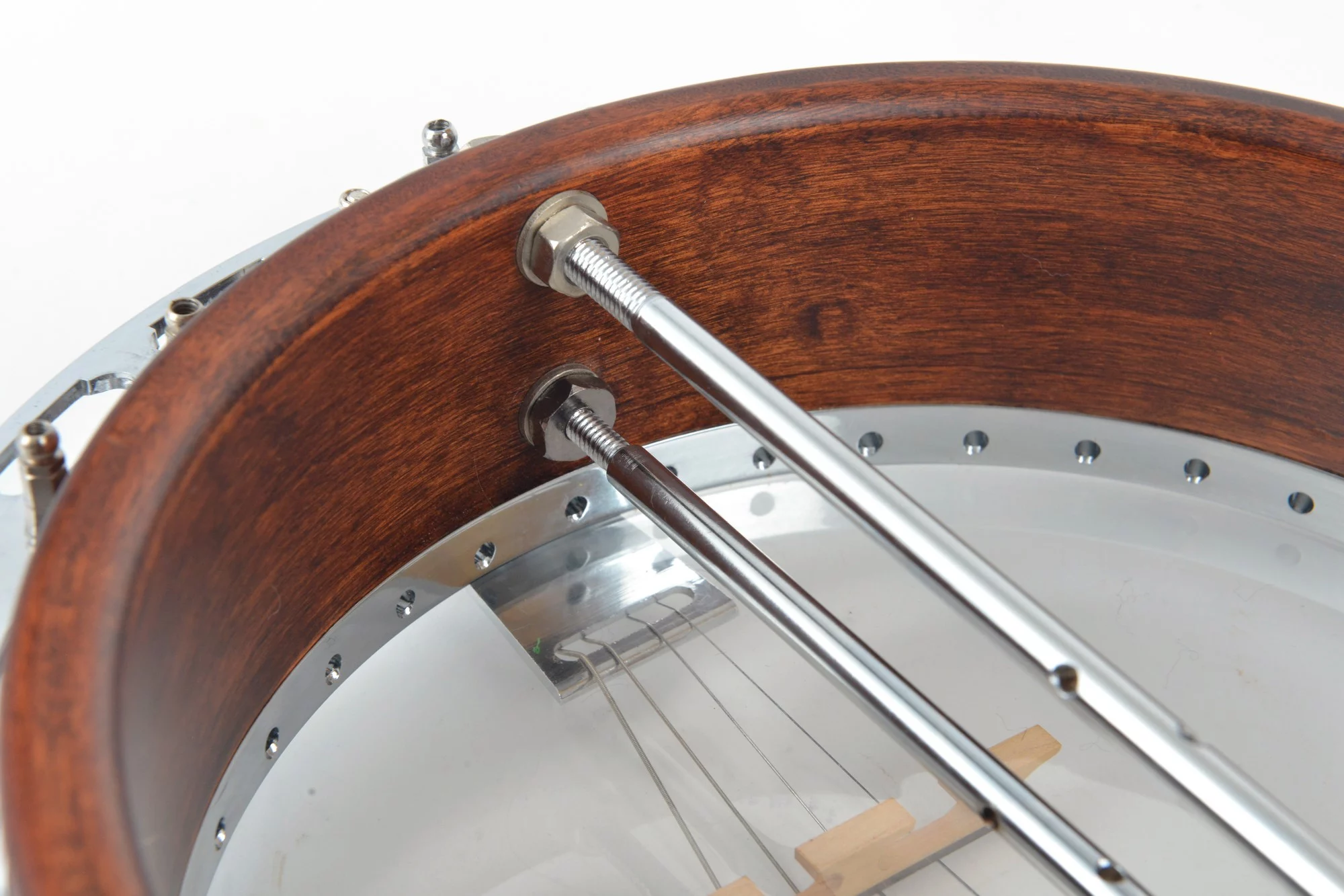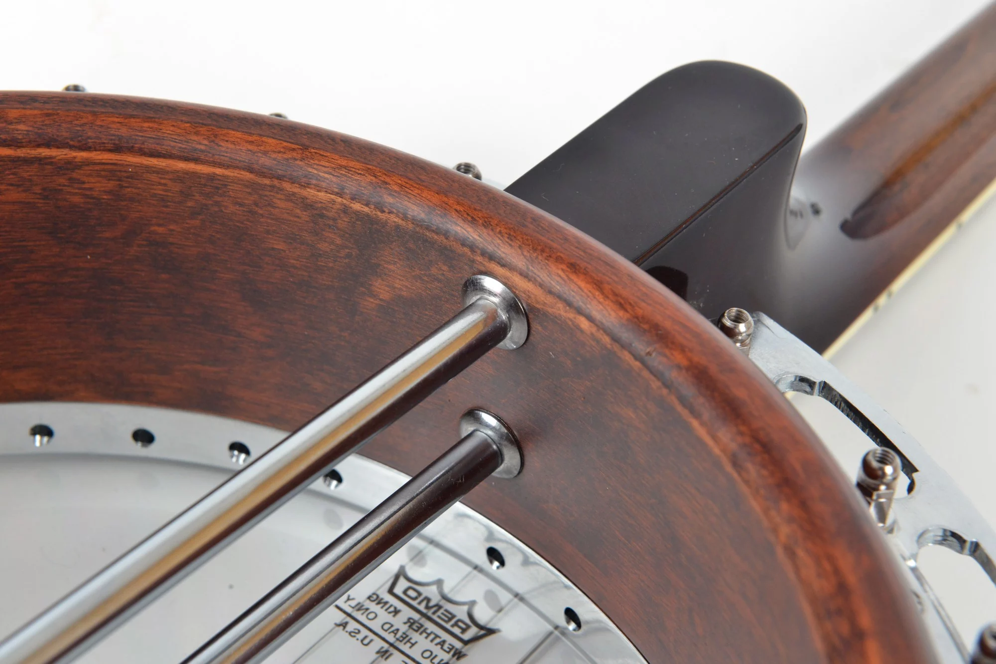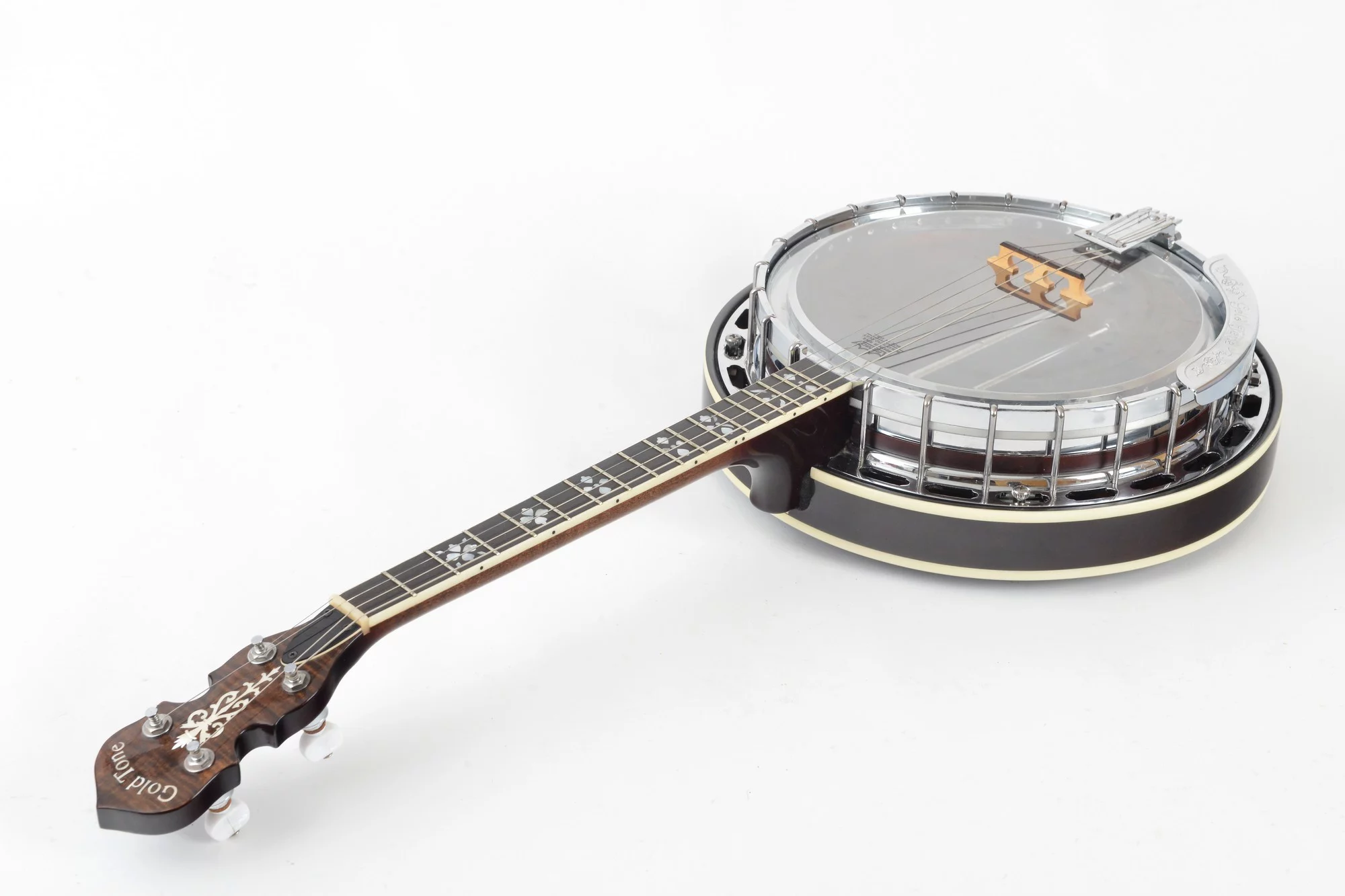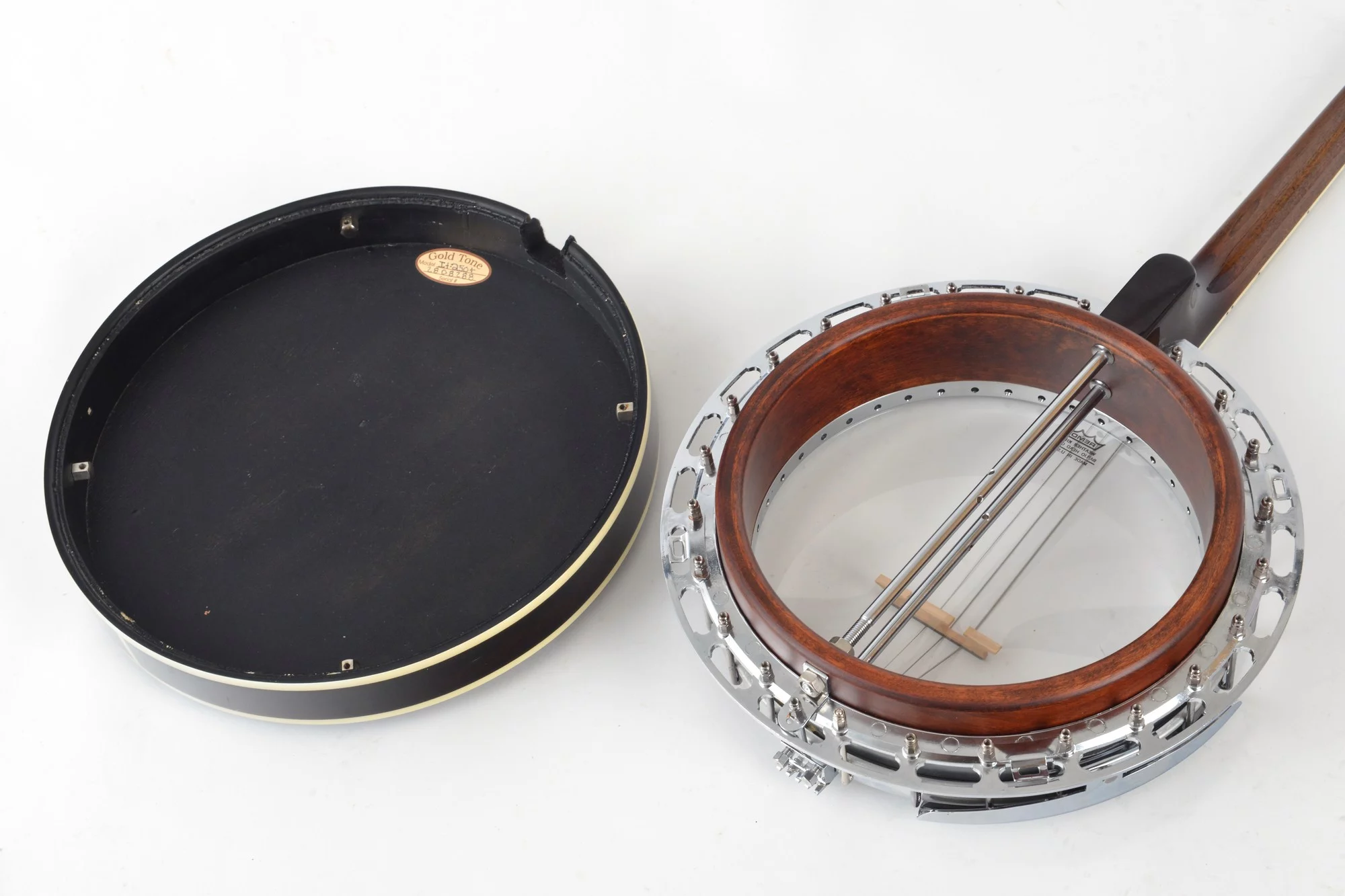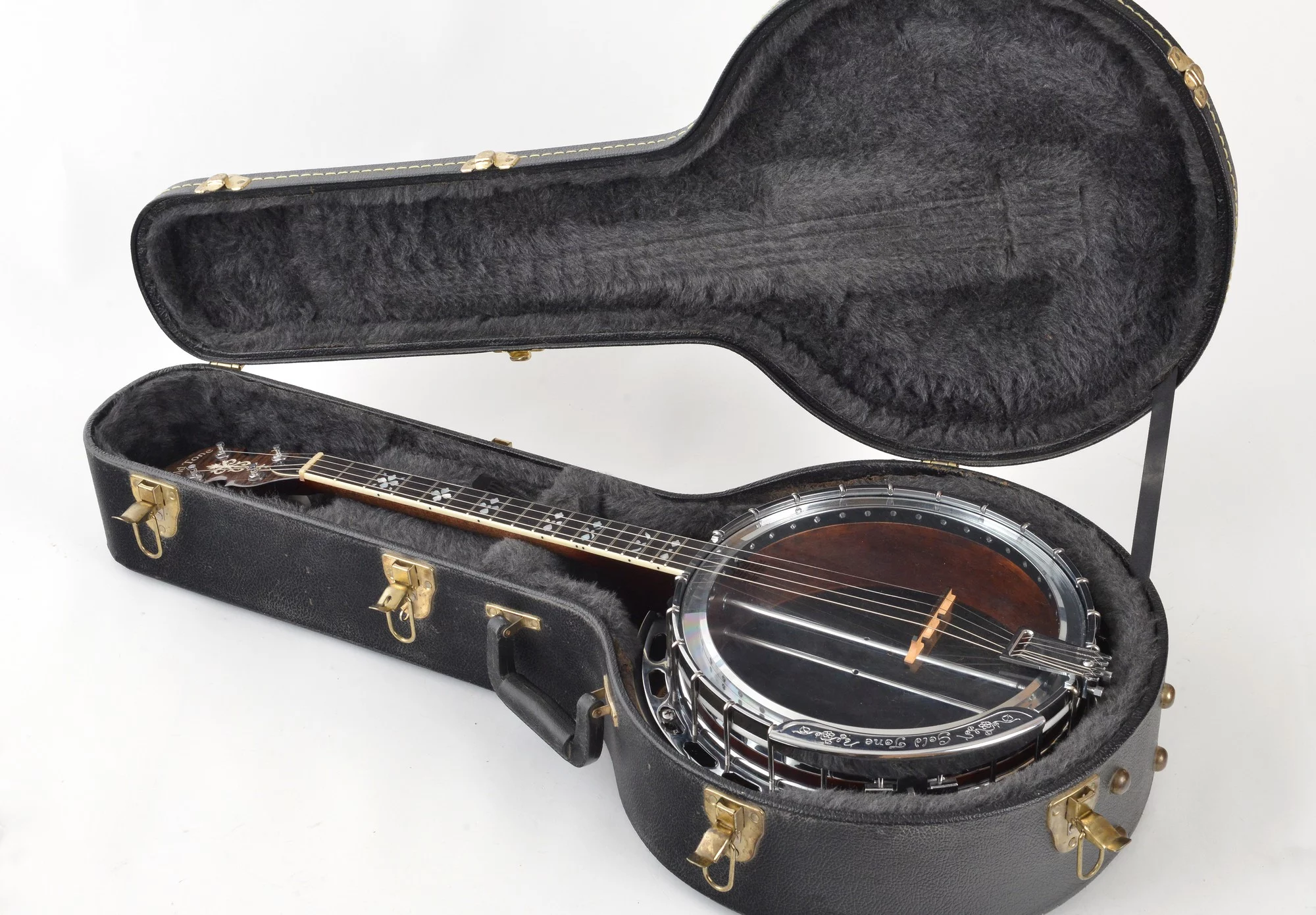 Serial 2808288. Perfect playing condition with minimal signs of use. The plastic buttons of the tuning pegs have hairline cracks, the typical problem of Goldtone tuners, but they are still working well. Including original hardcase.