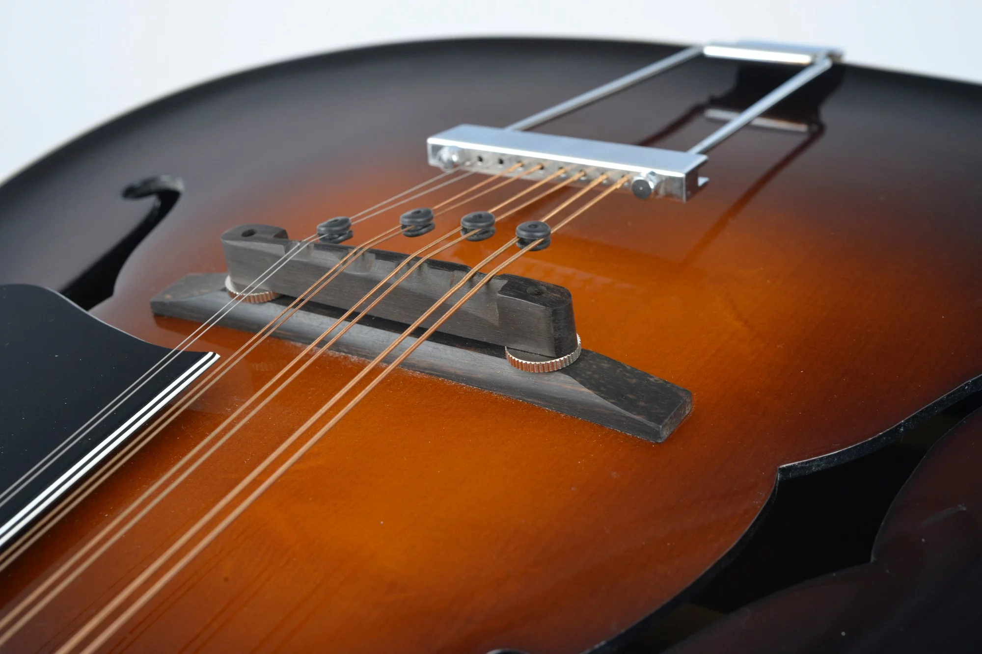 Beautiful octave mandolin in the style of an archtop jazz guitar, custom made in 2017 by Karsten Schnoor in Hamburg, Germany.