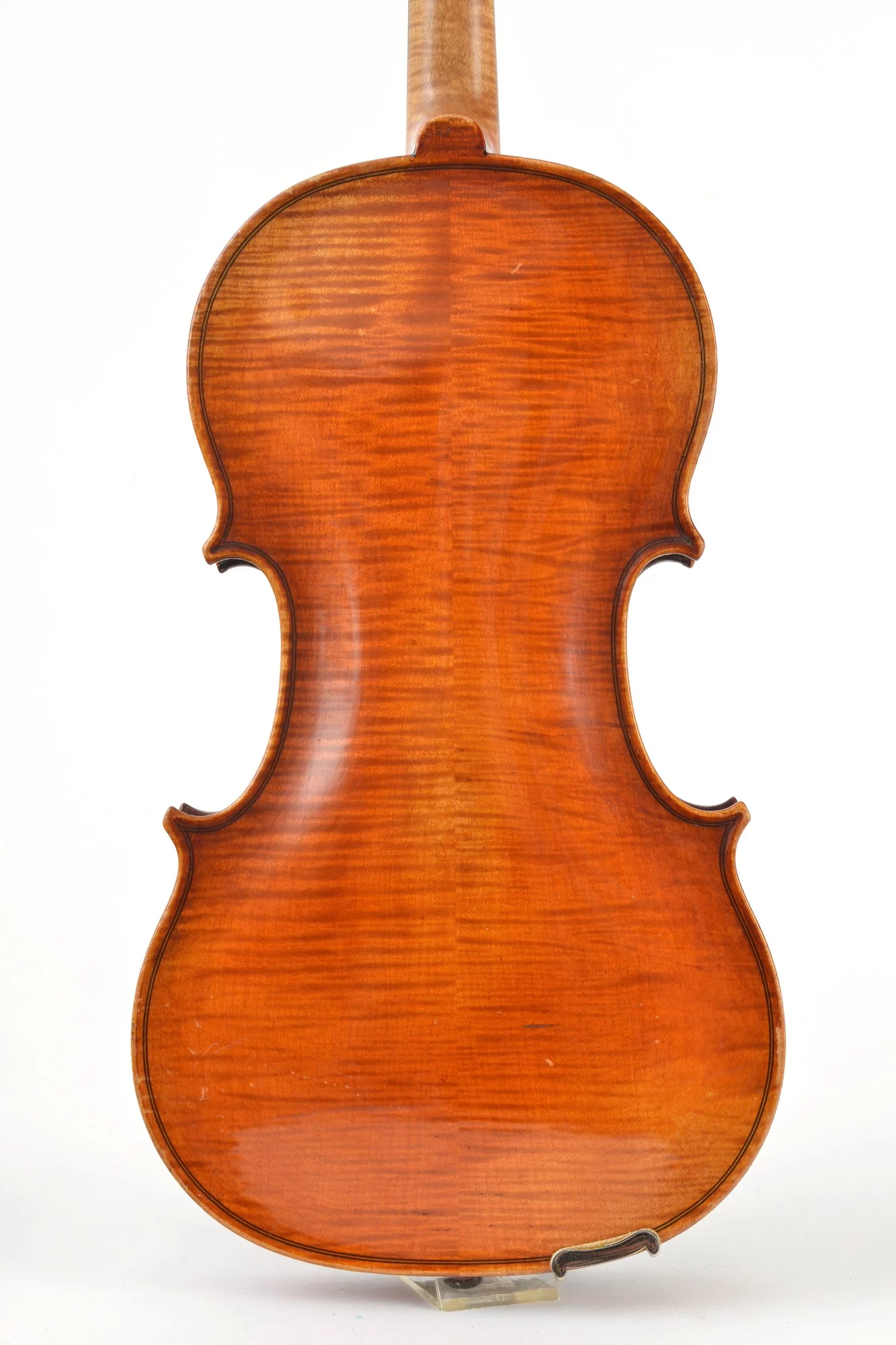 This well-built 20th century violin has a powerful, assertive sound. There is no label, it was probably made in Germany. The two-piece back is finely flamed, the sound holes elegantly cut.