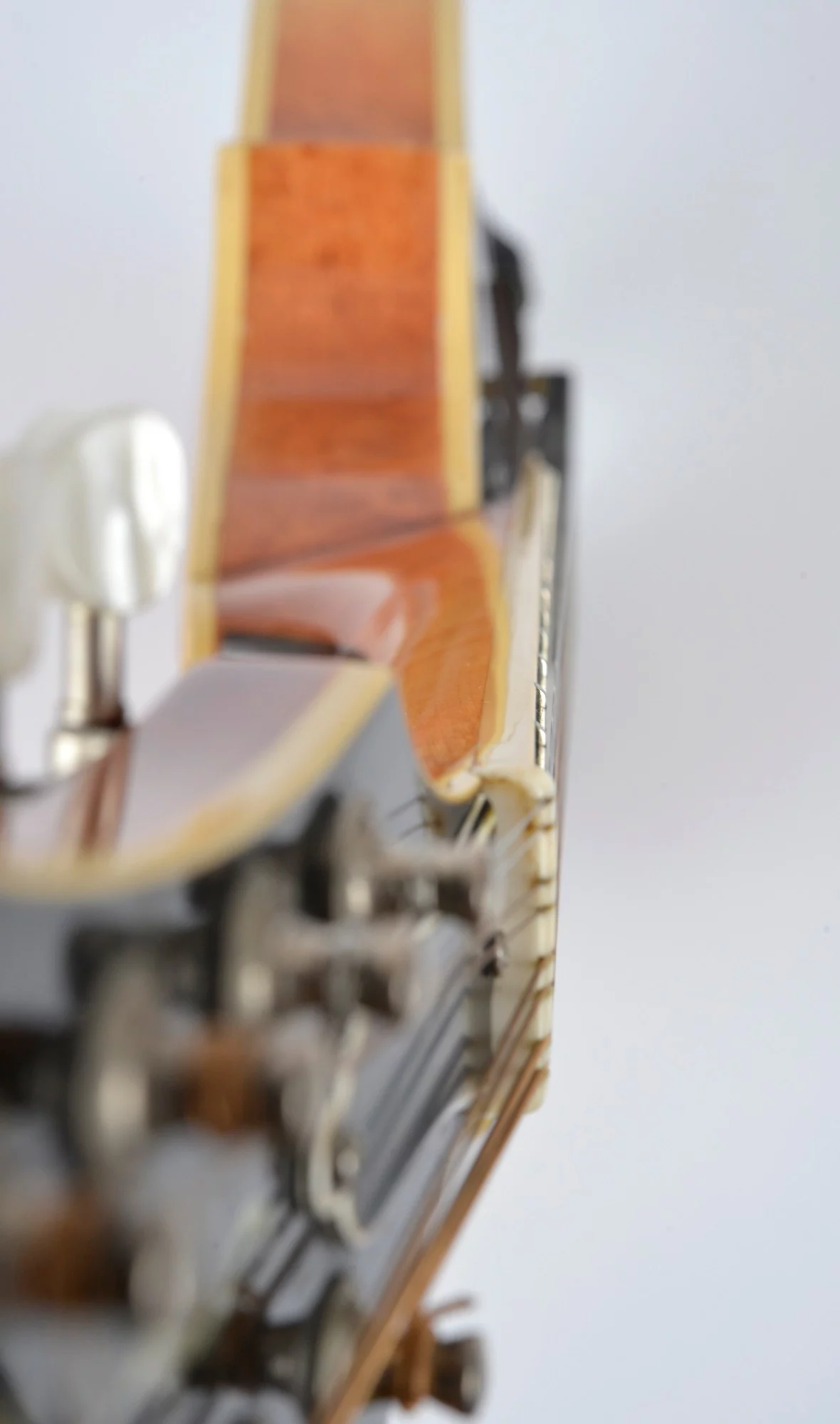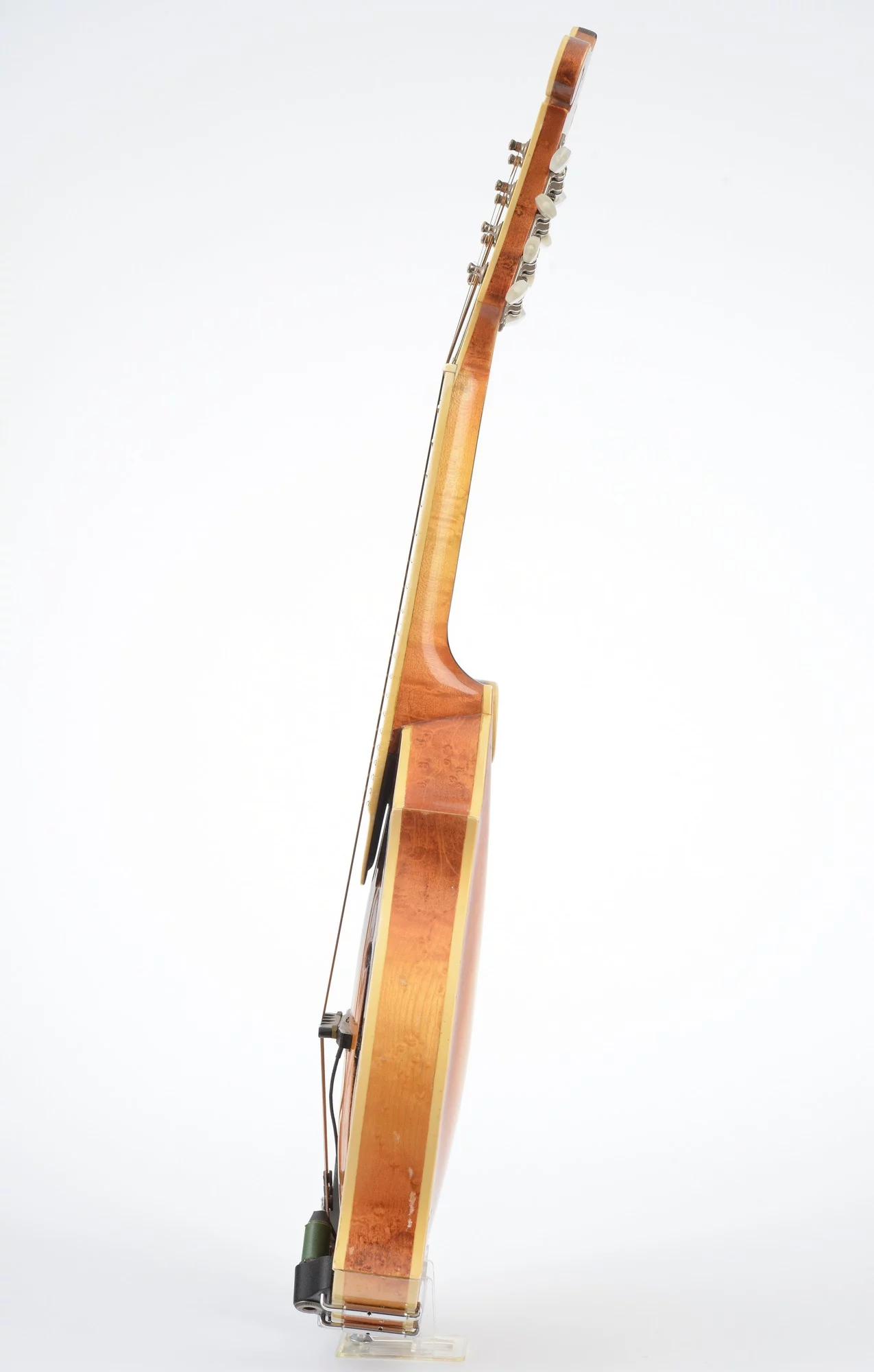 Equipped with an armrest, toneguard and The Word pickup, you can get started right away. There are some signs of use such as scratches and rubbing. The frets are good, the string action is 2-3mm at the 12th fret.