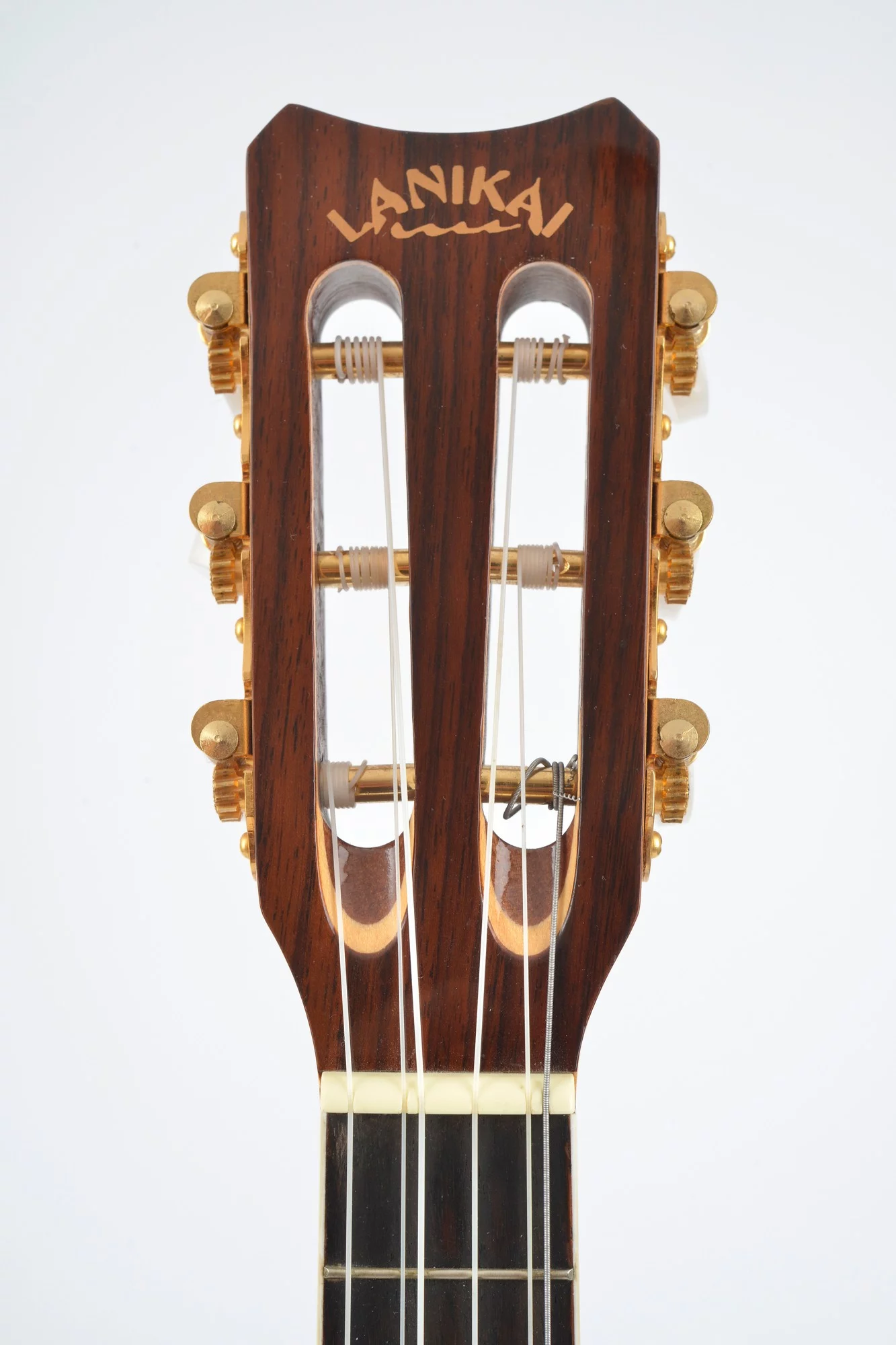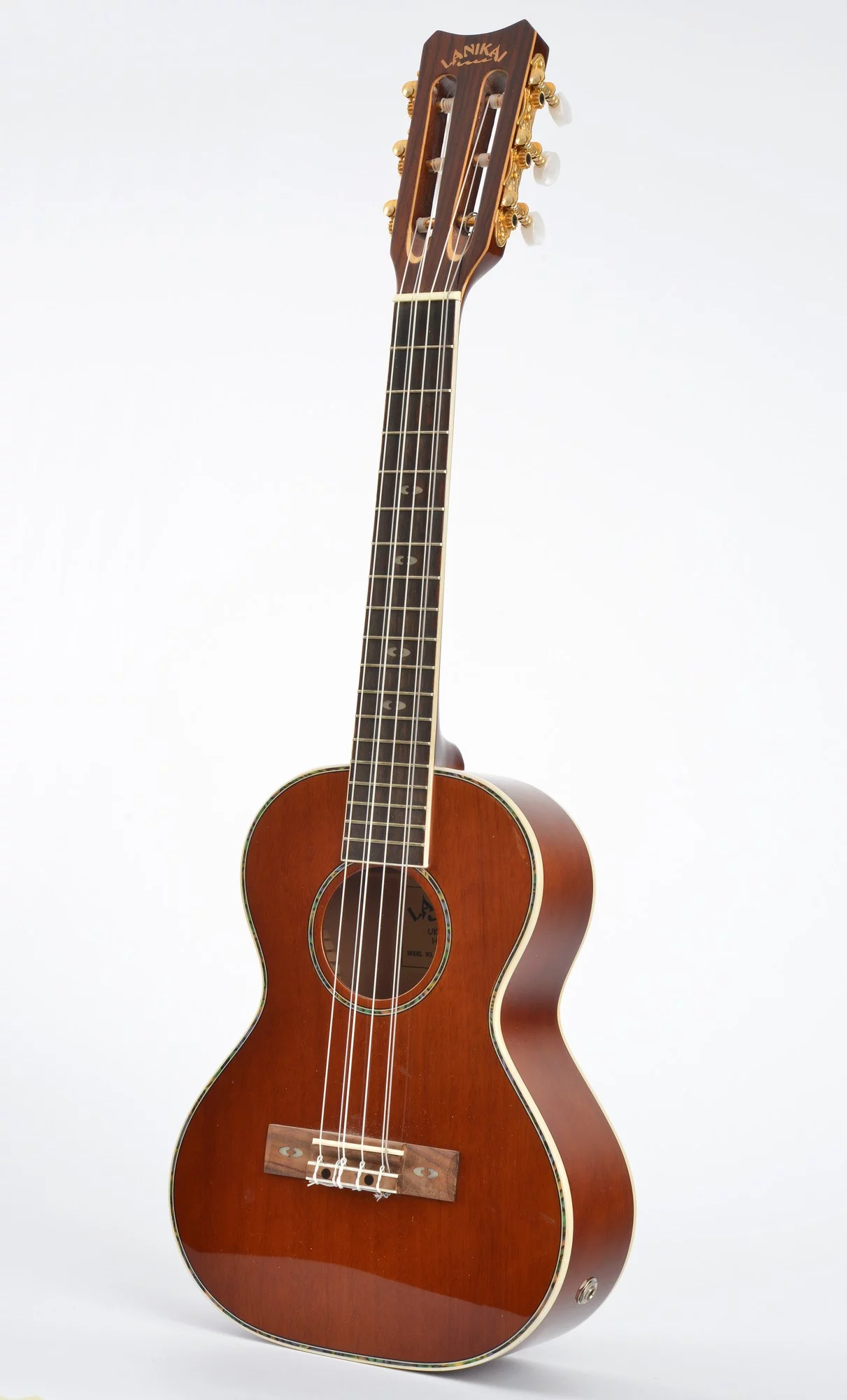 Used 6-string tenor ukulele from Lanikai with pickup. Minor signs of use such as scratches or rubbing.