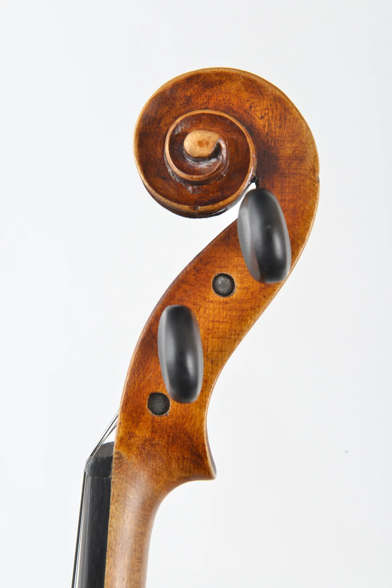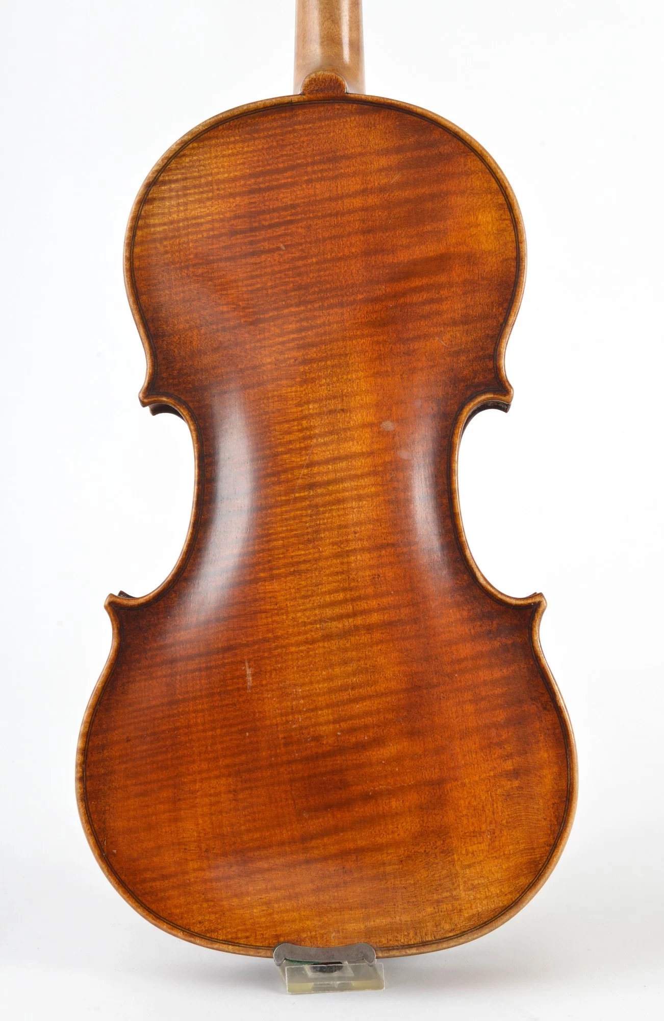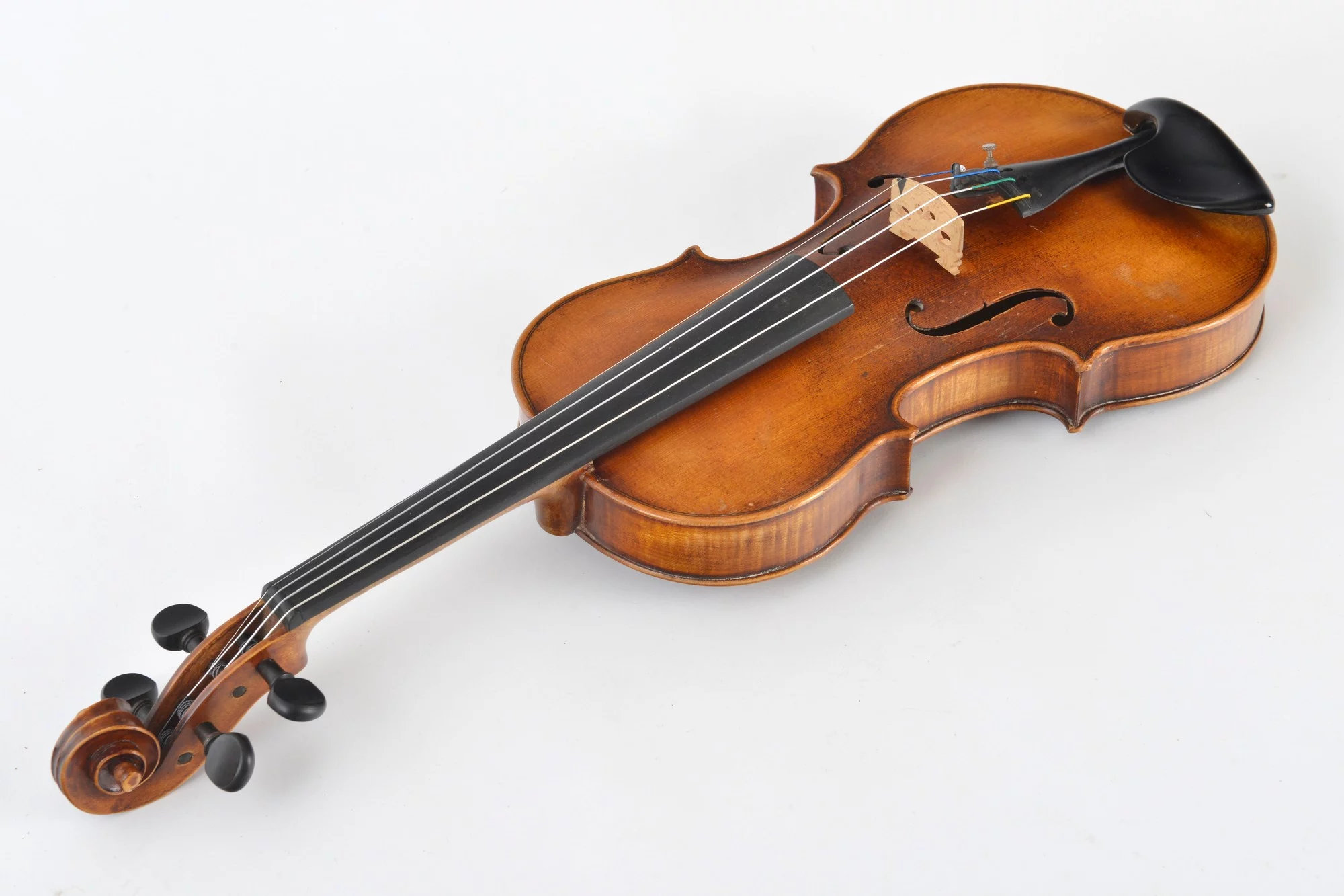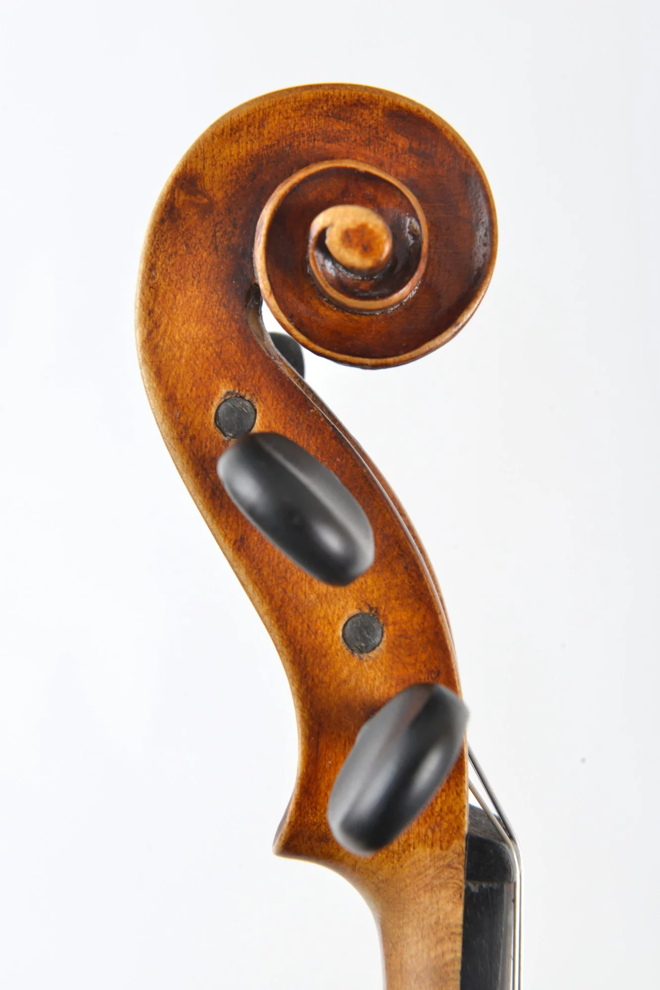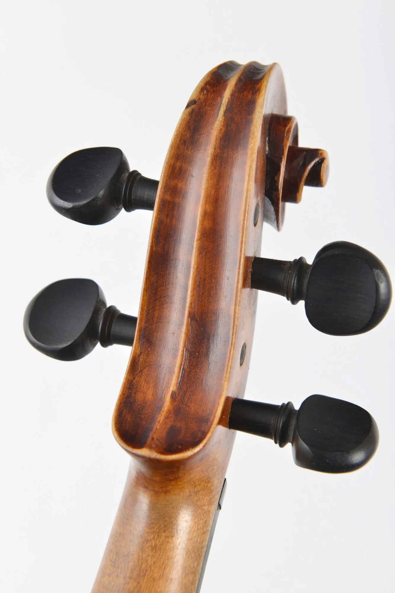Solid manufactured violin without label. Probably built after the turn of the century in Vogtland / Markneukirchen, Saxony. Nice sounding instrument with a dark timbre. One piece back. Ready to play with new Thomastik strings.