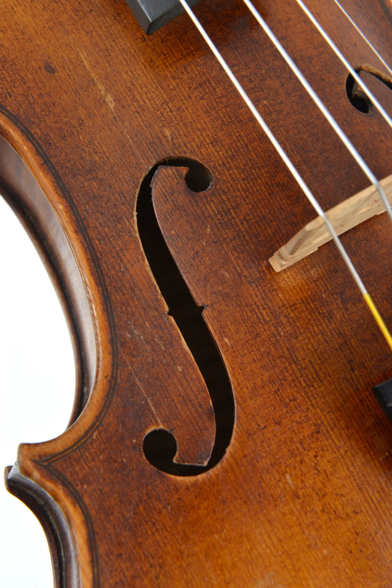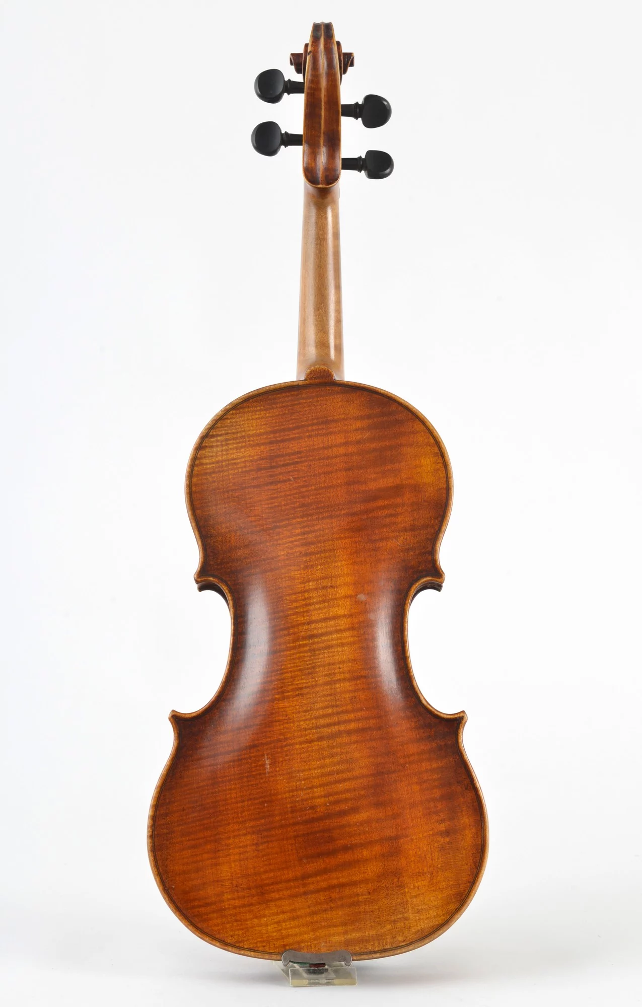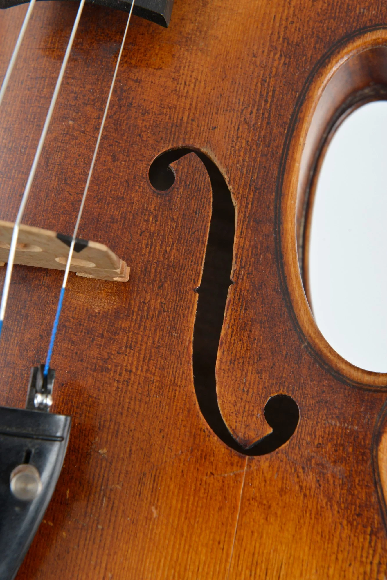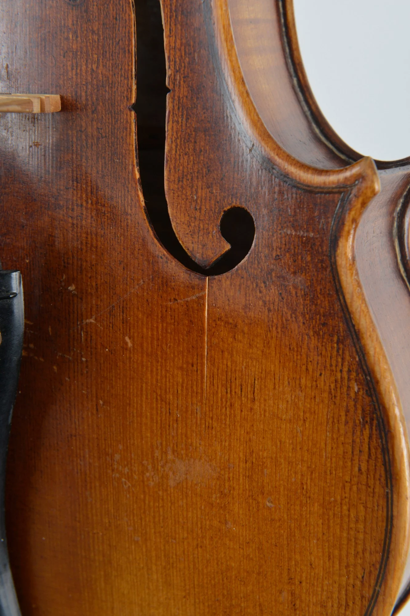 Solid manufactured violin without label. Probably built after the turn of the century in Vogtland / Markneukirchen, Saxony. Nice sounding instrument with a dark timbre. One piece back. Ready to play with new Thomastik strings.