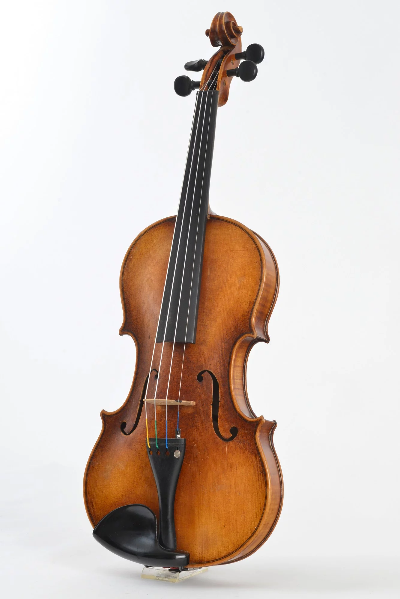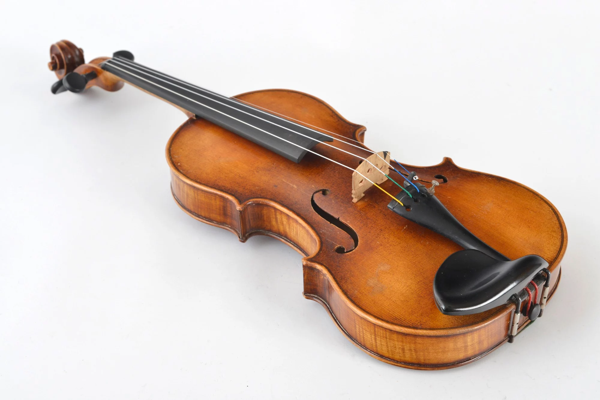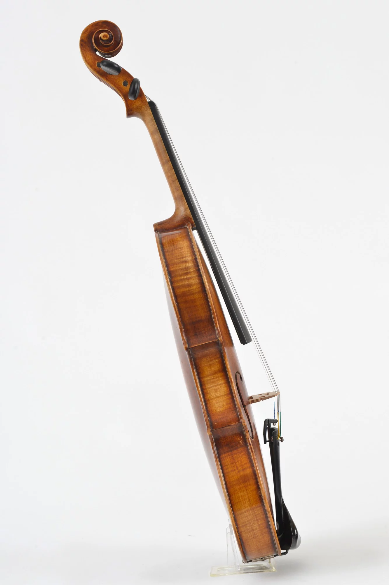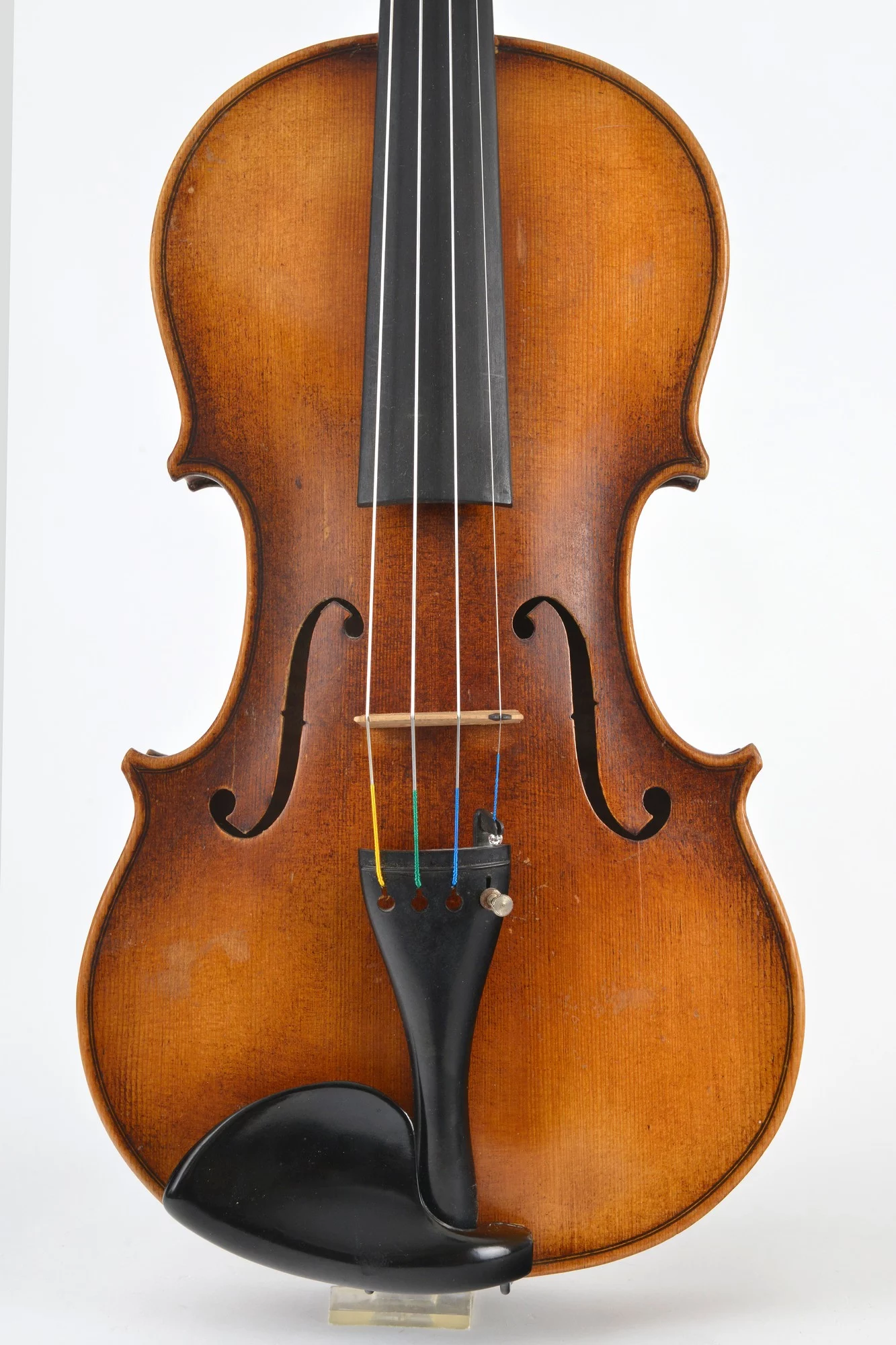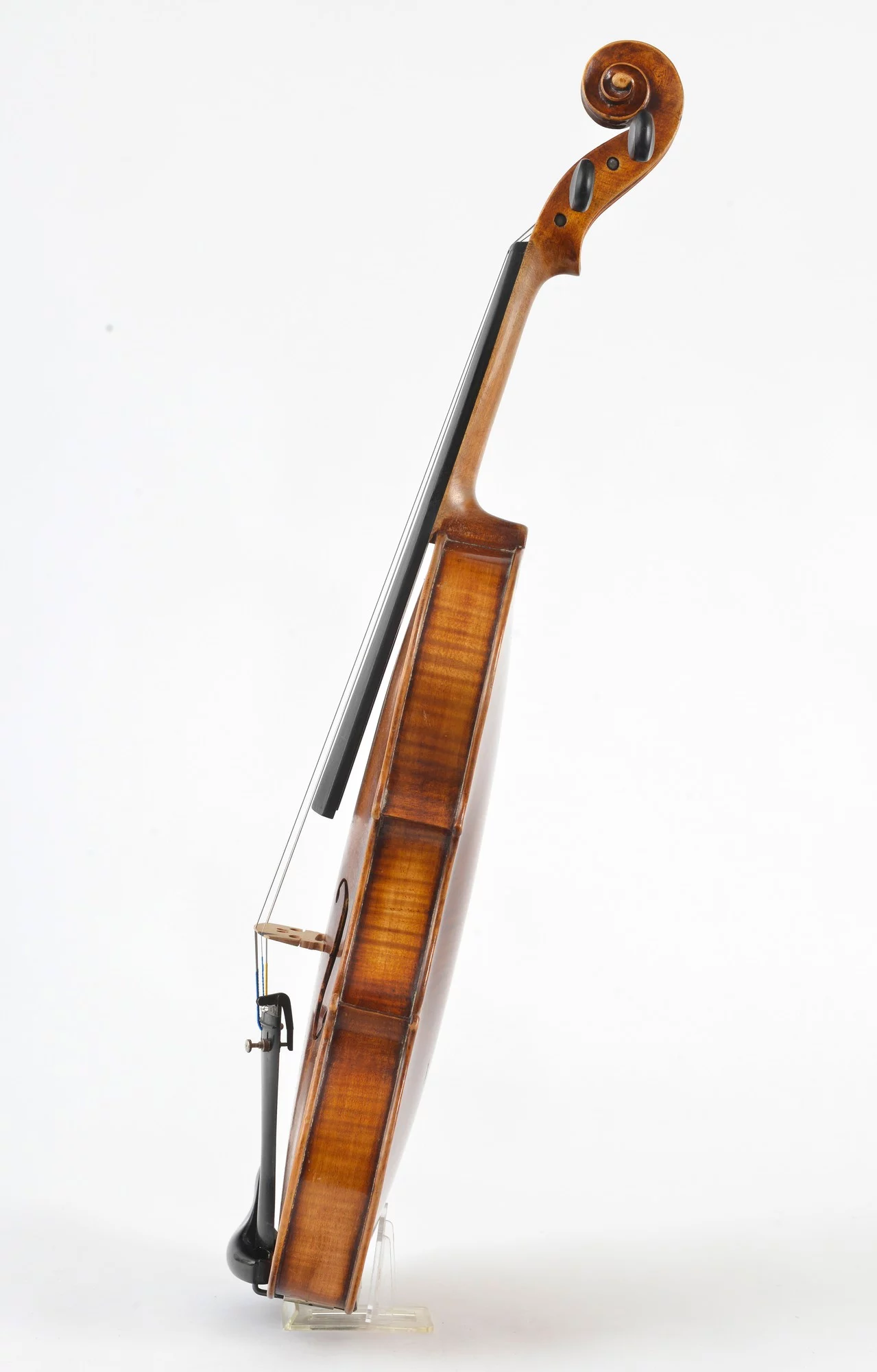 Solid manufactured violin without label. Probably built after the turn of the century in Vogtland / Markneukirchen, Saxony. Nice sounding instrument with a dark timbre. One piece back. Ready to play with new Thomastik strings.