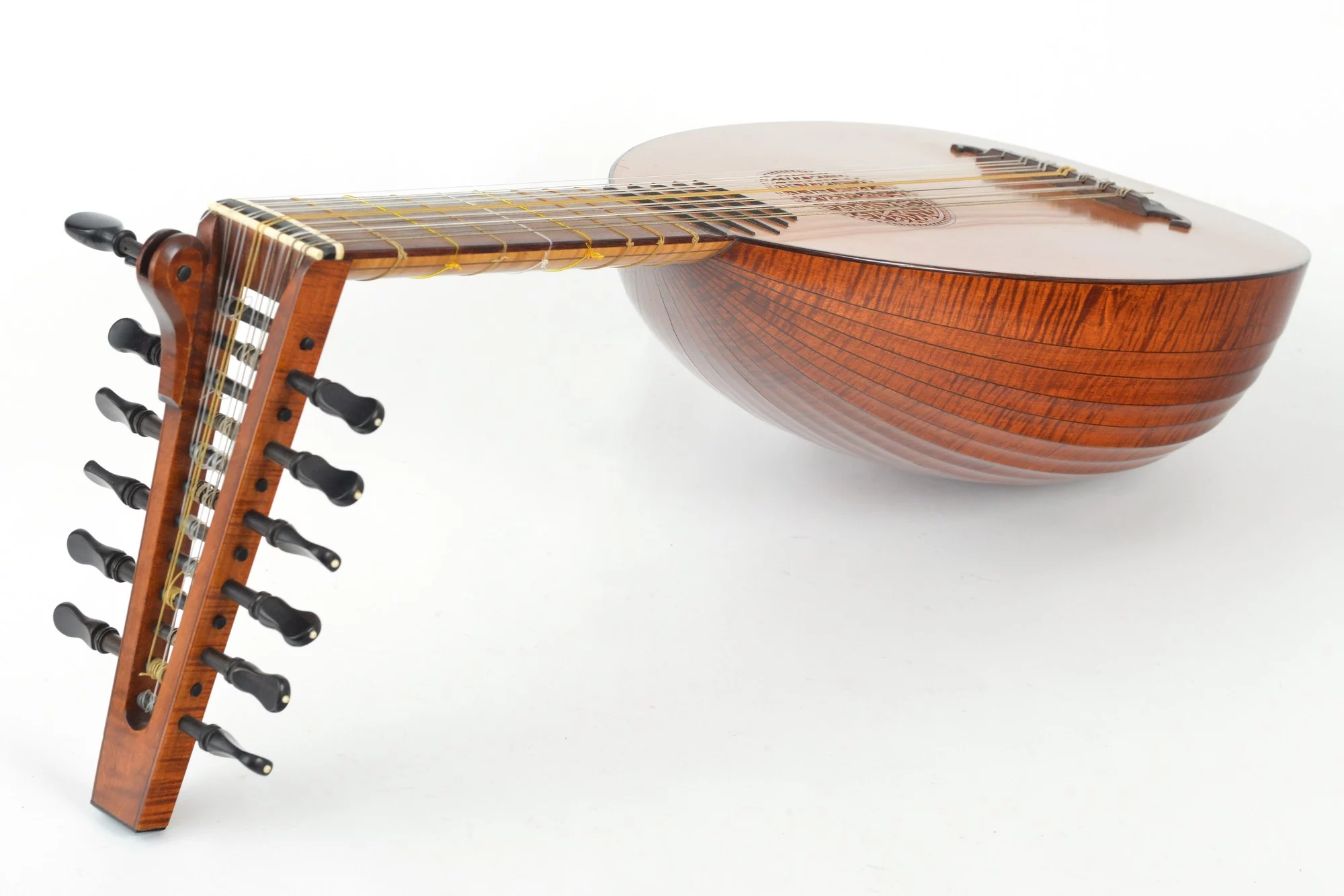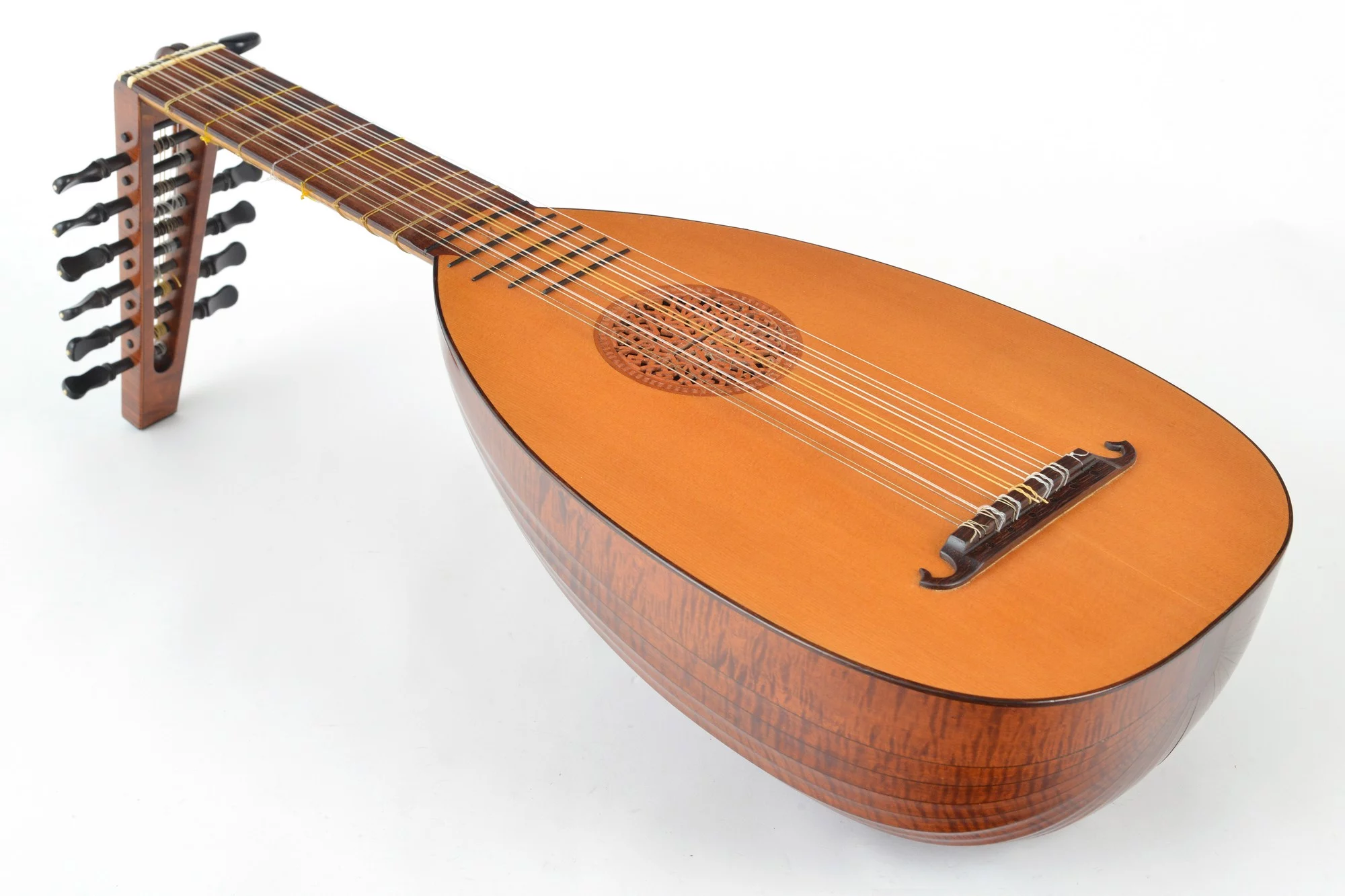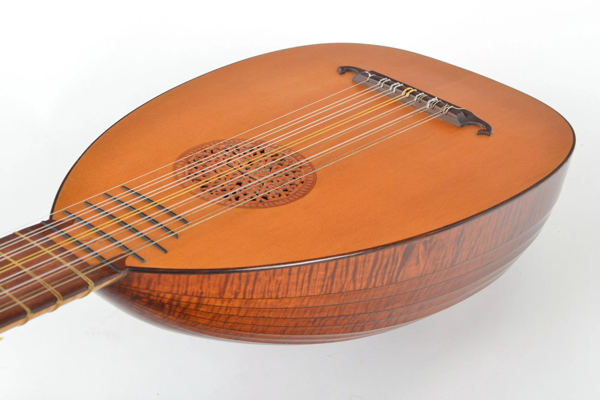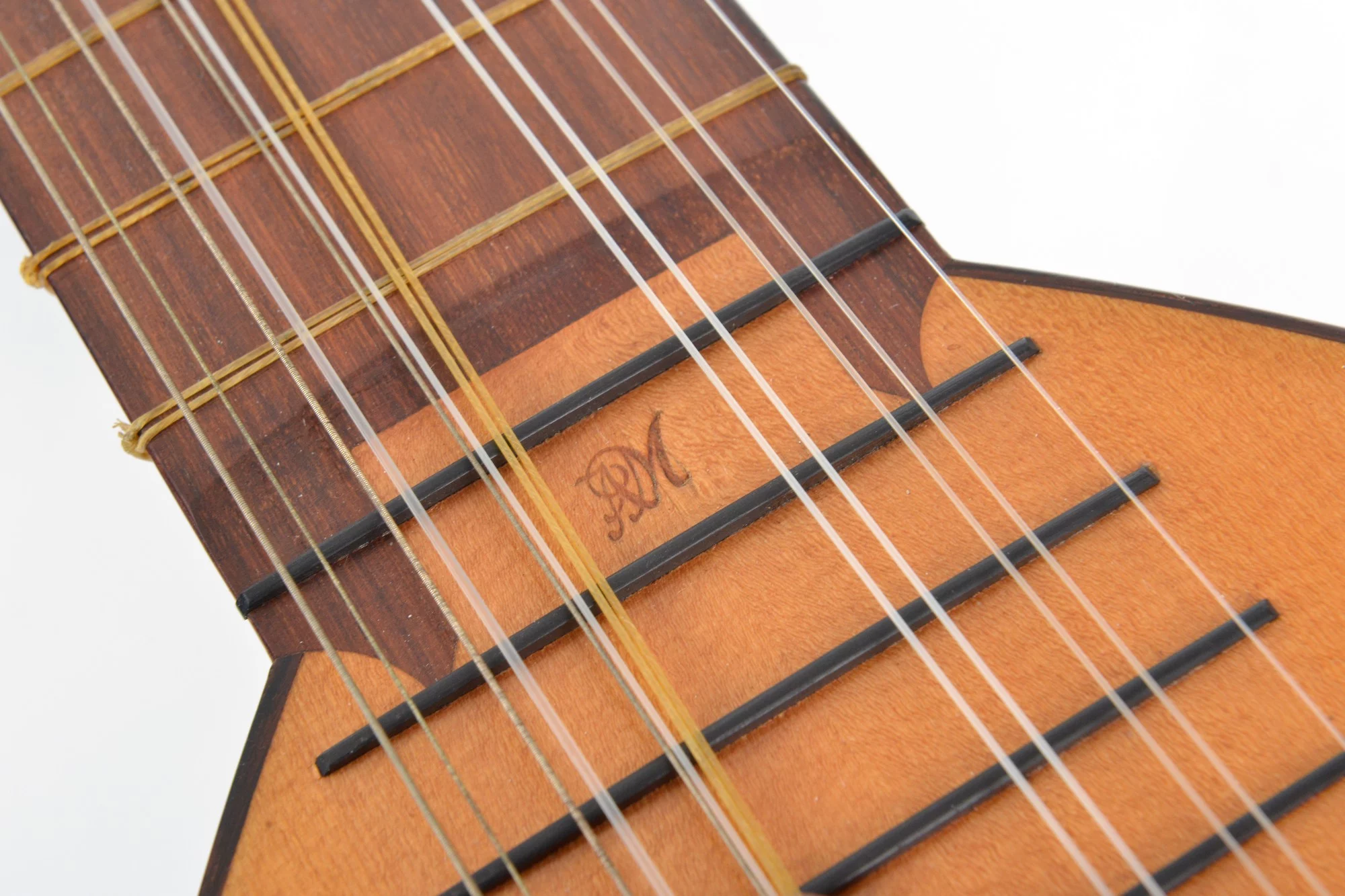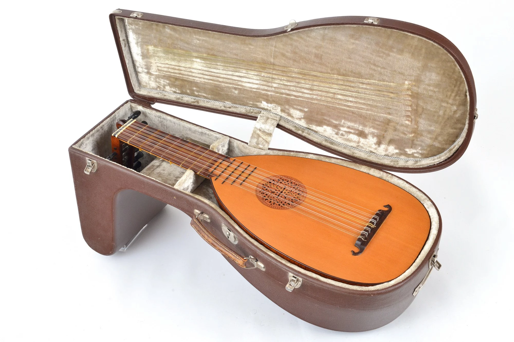 A beautifully crafted 7-course Renaissance lute bearing the maker’s mark “AM.” Alto lute in G, ready to play, in a custom-made case.